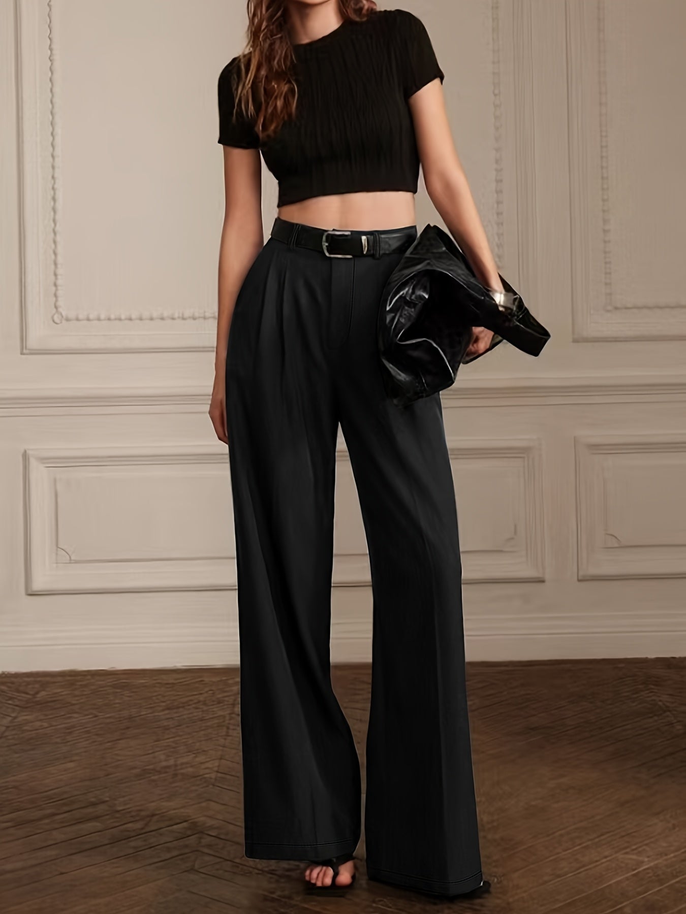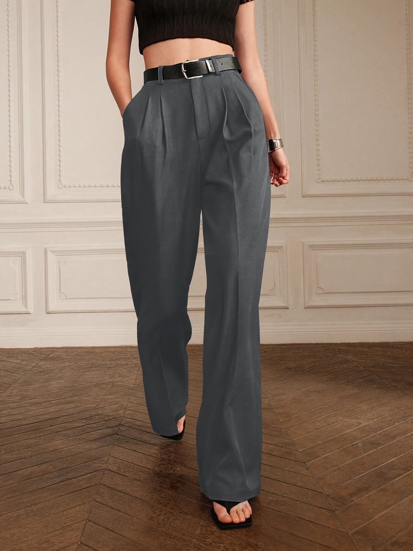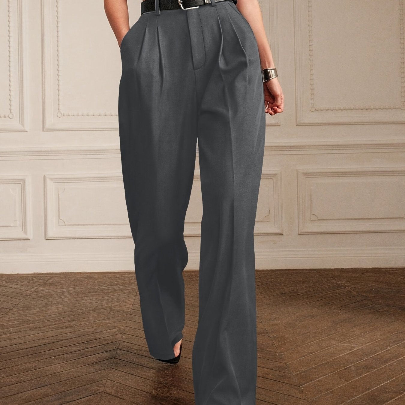 Միաձույլ ուղիղ շալվար, էլեգանտ բարձր գոտկատեղով թեք գրպանով տաբատ աշխատանքի և գրասենյակի համար, կանացի հագուստ