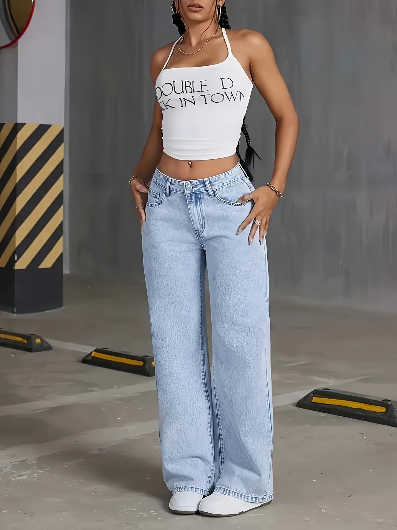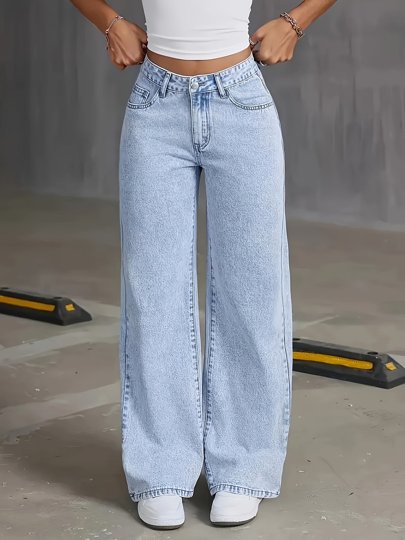 Միաձույլ ուղիղ ուղիղ ջինսե տաբատ՝ թիկունքի գրպանին թիթեղներով ասեղնագործությամբ