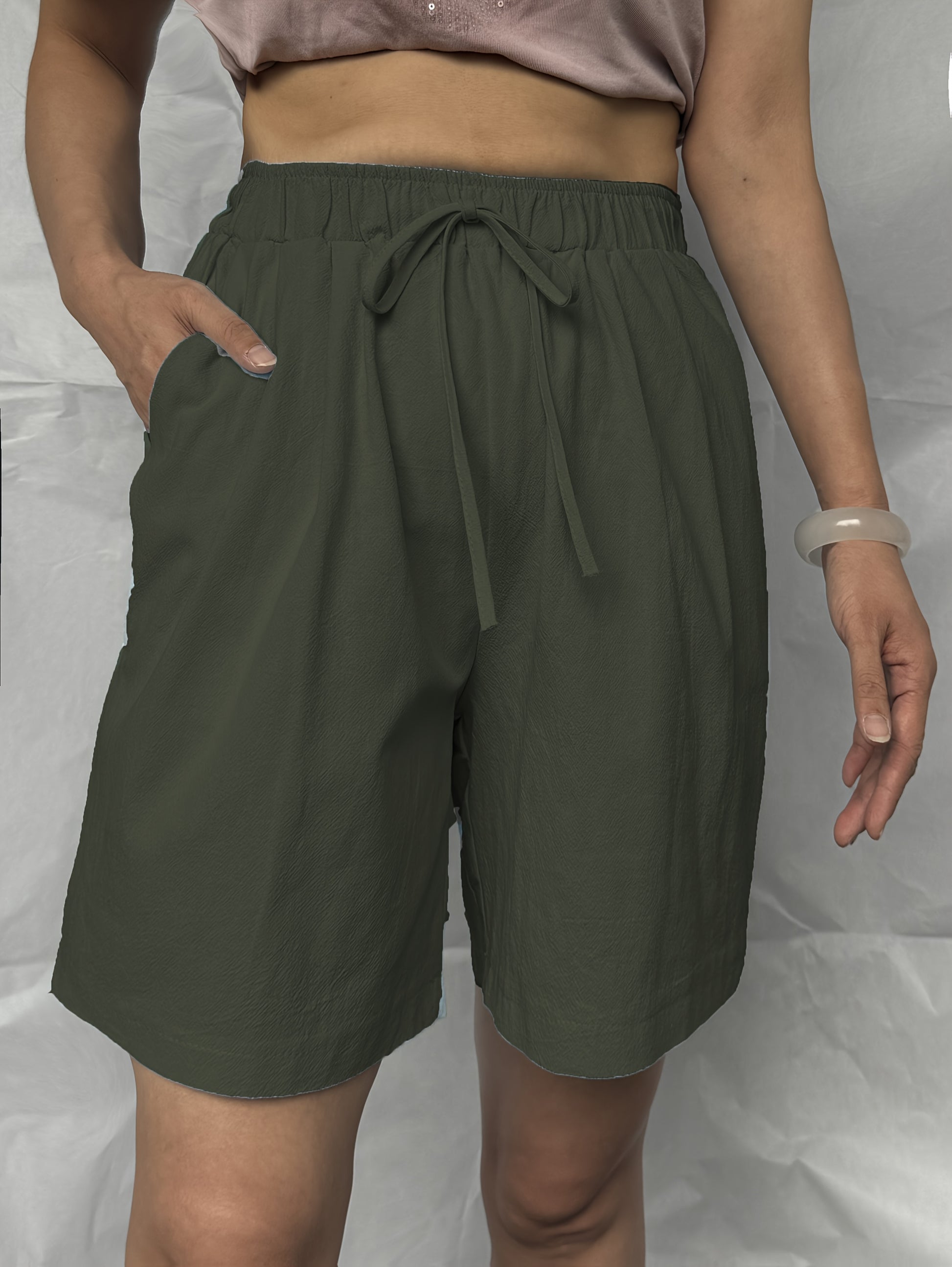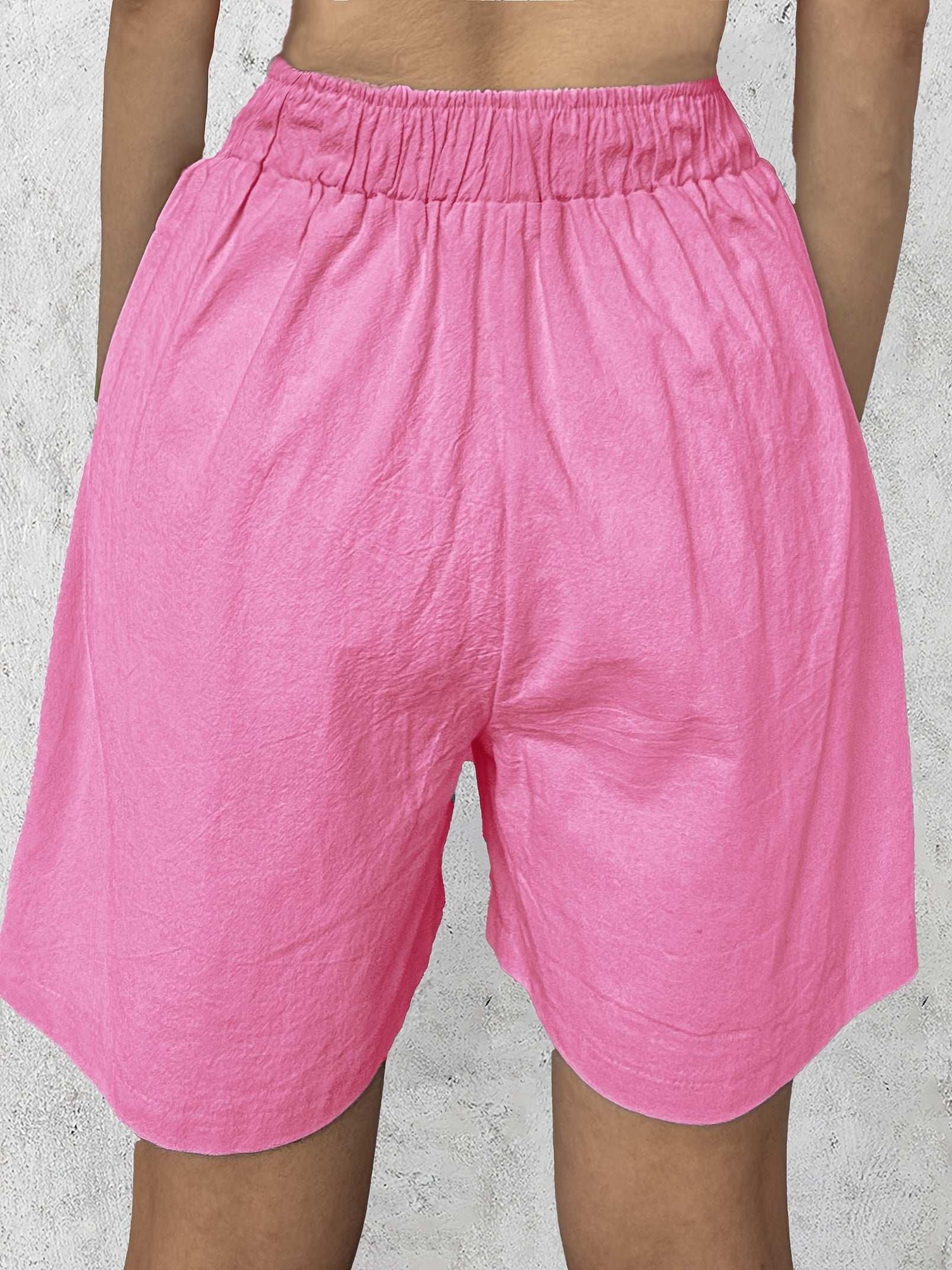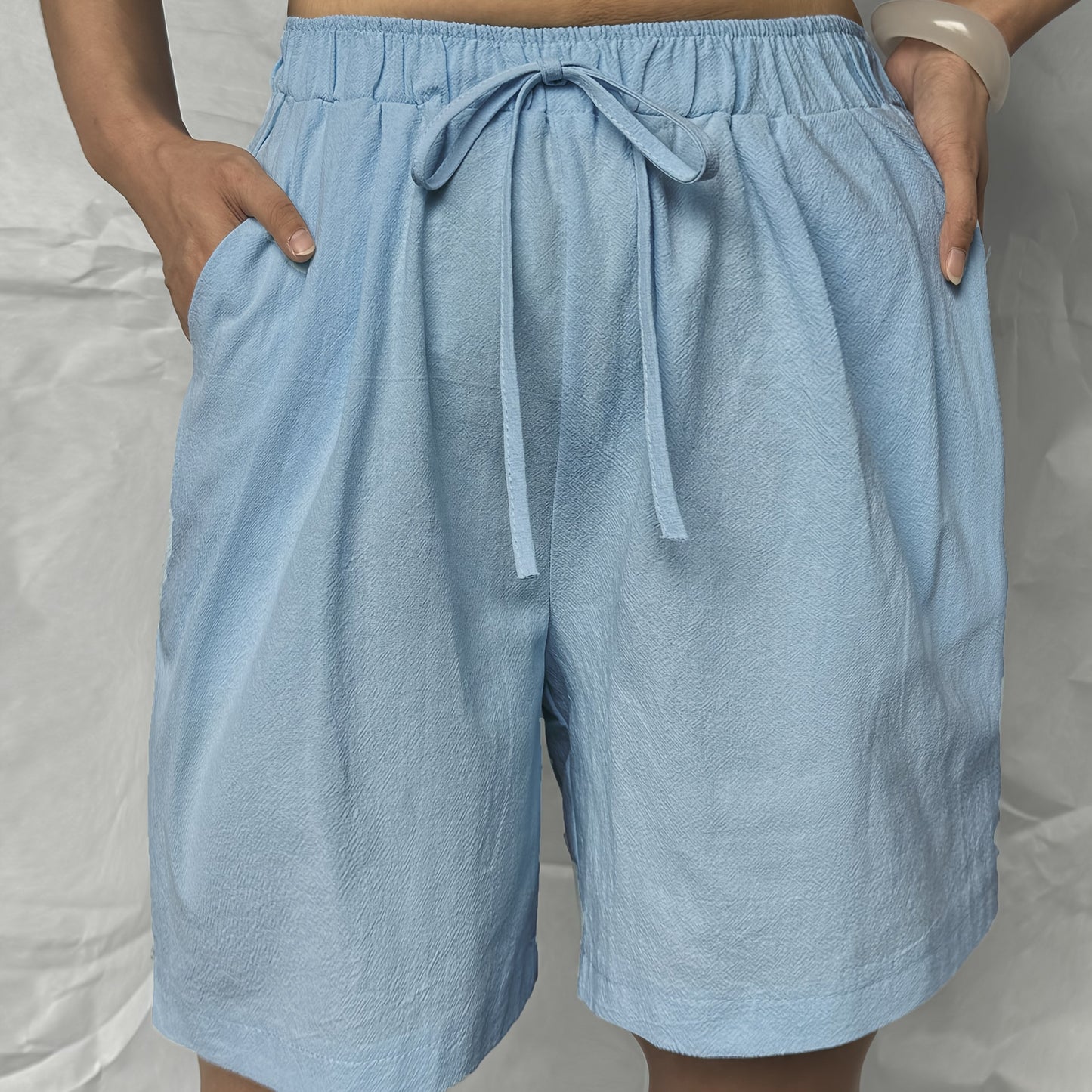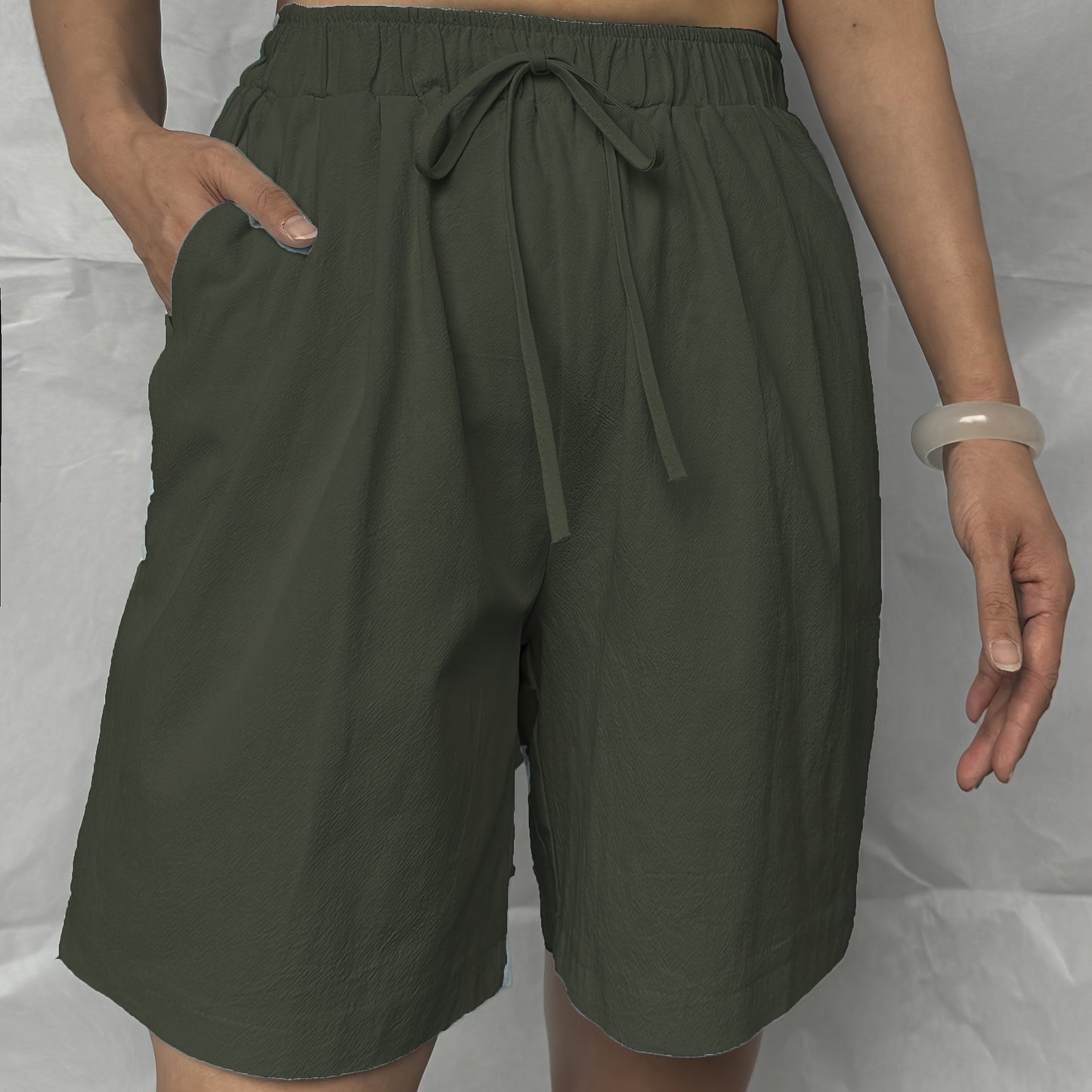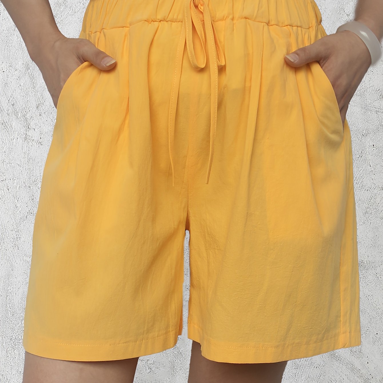 Միաձույլ գույնի կապած բարձր գոտկատեղի շորտեր, սովորական թեք գրպանի գործվածքից շորտեր գարնան և ամառի համար, կանացի հագուստ