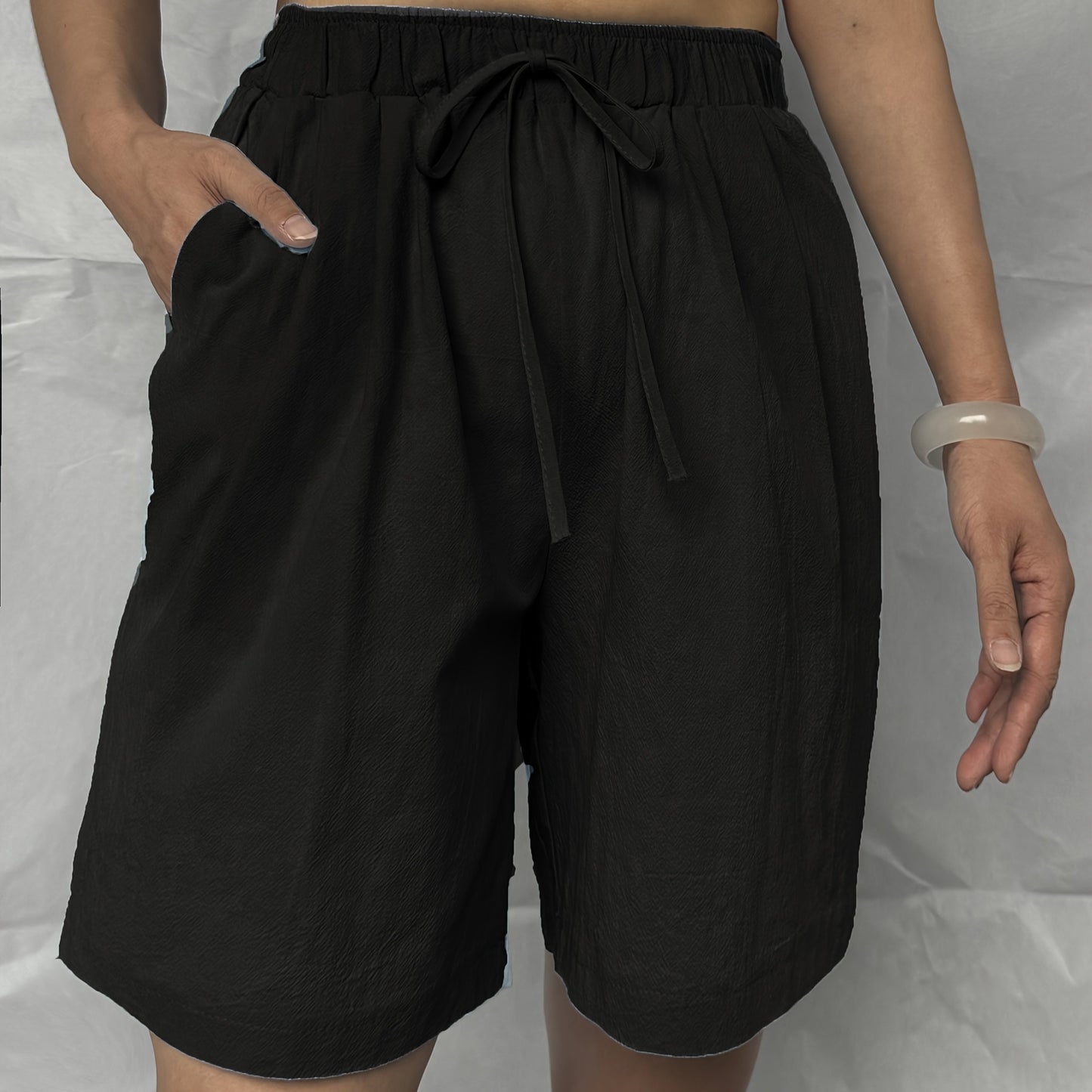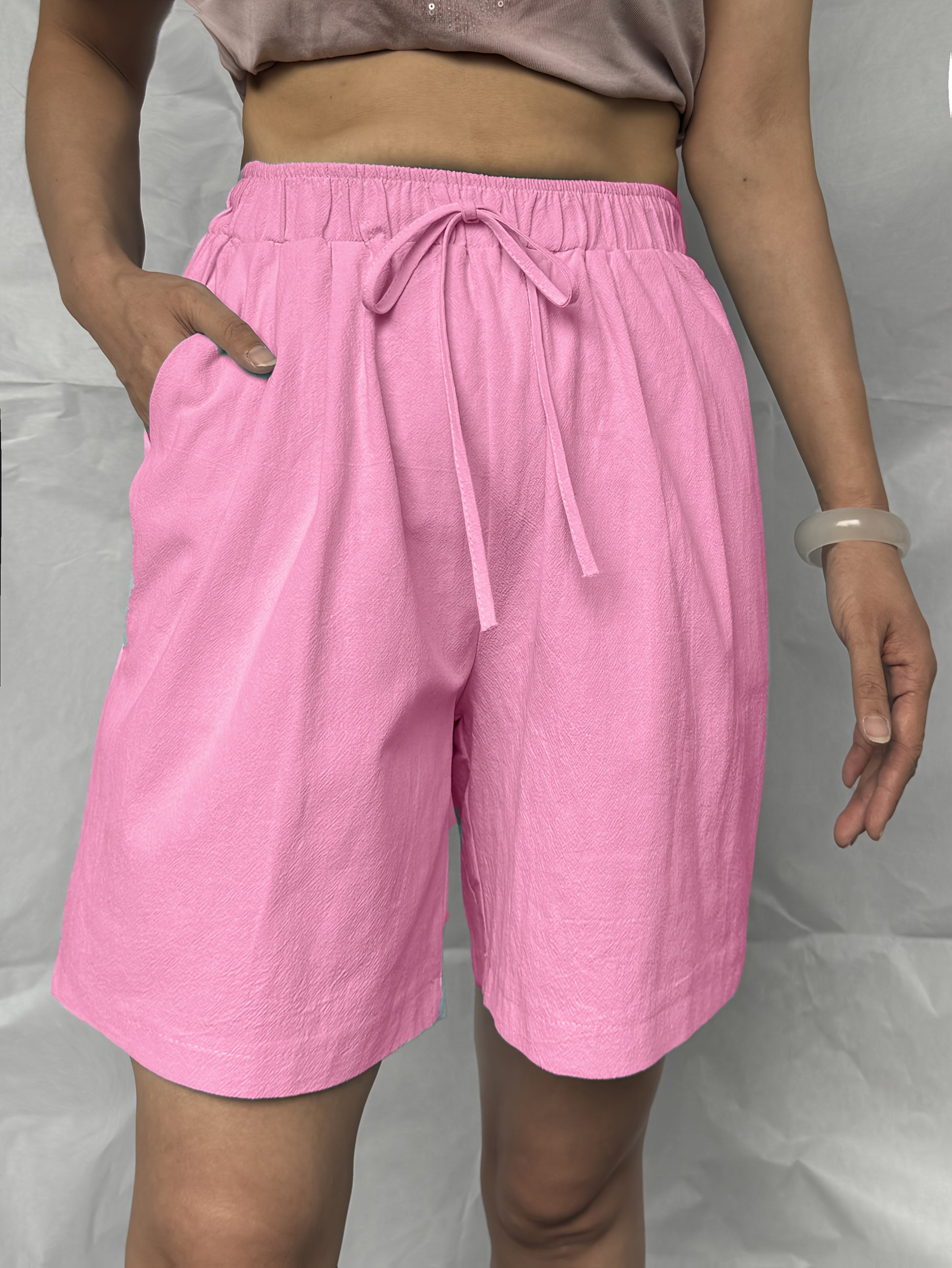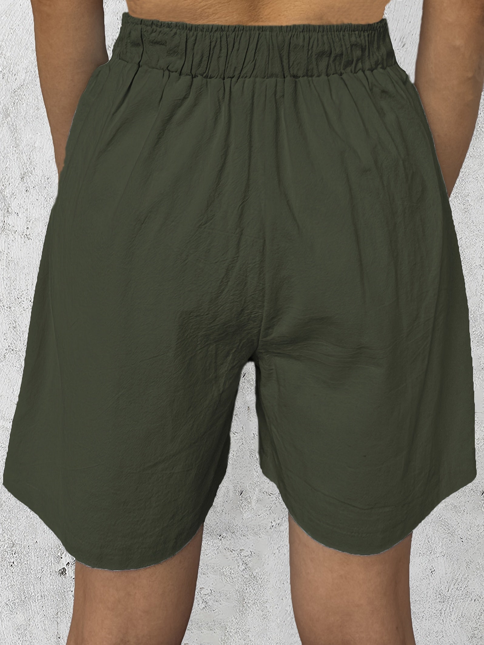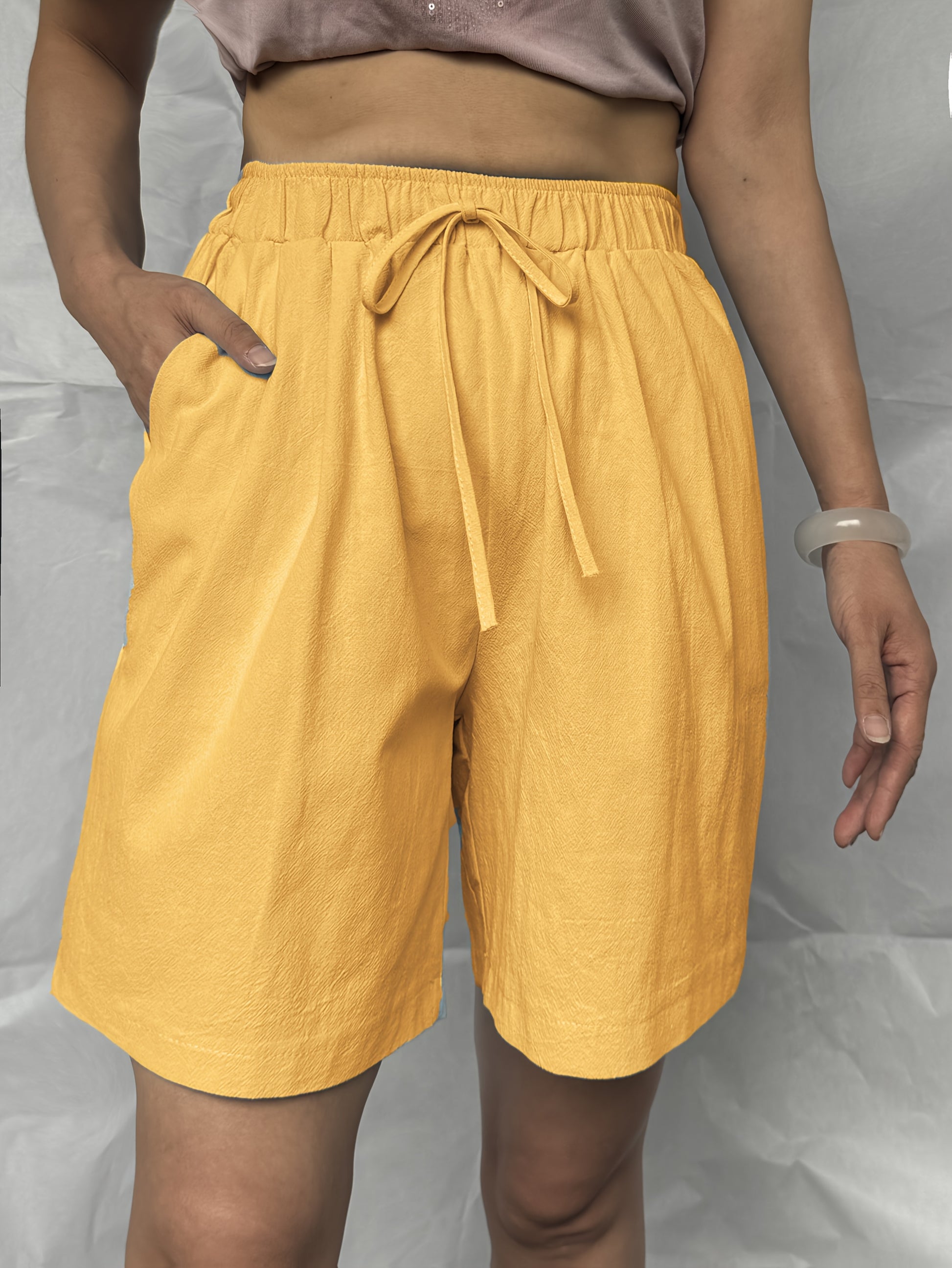 Միաձույլ գույնի կապած բարձր գոտկատեղի շորտեր, սովորական թեք գրպանի գործվածքից շորտեր գարնան և ամառի համար, կանացի հագուստ