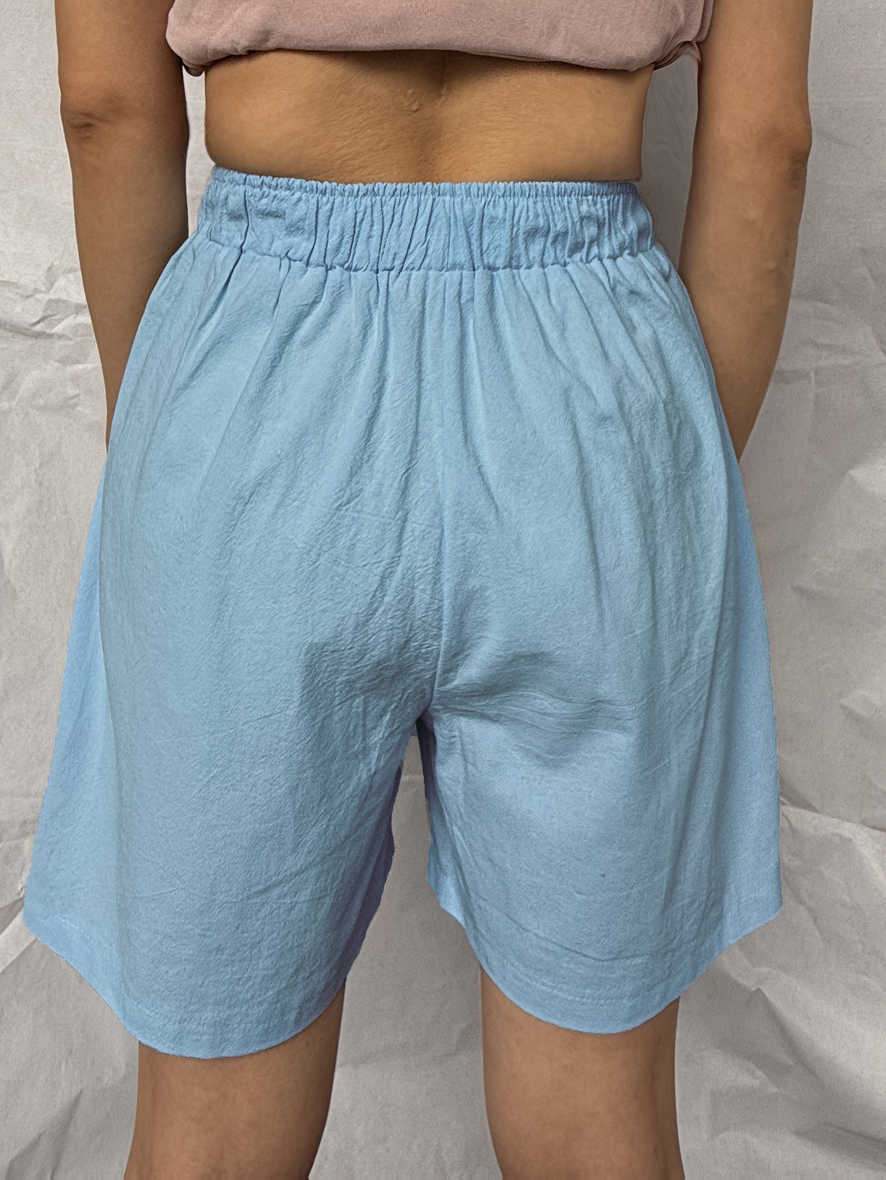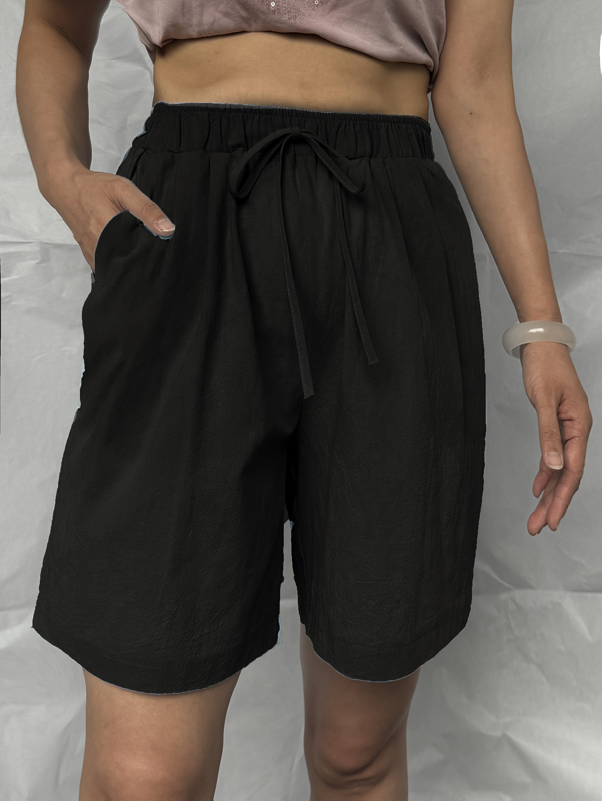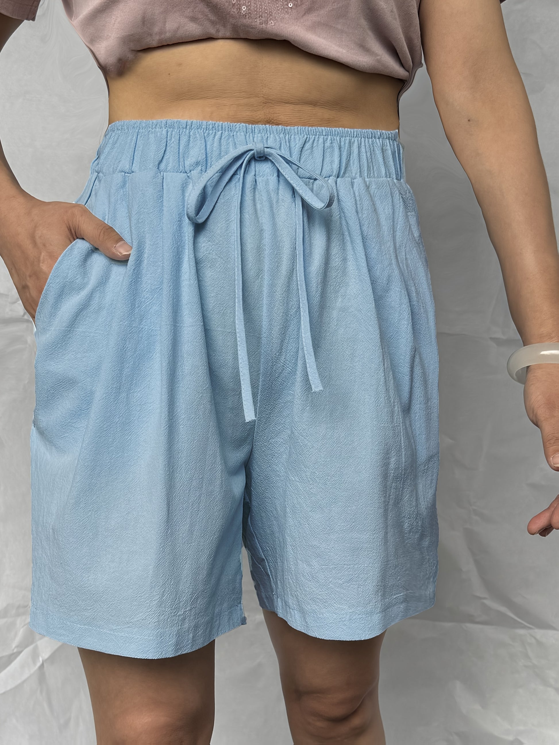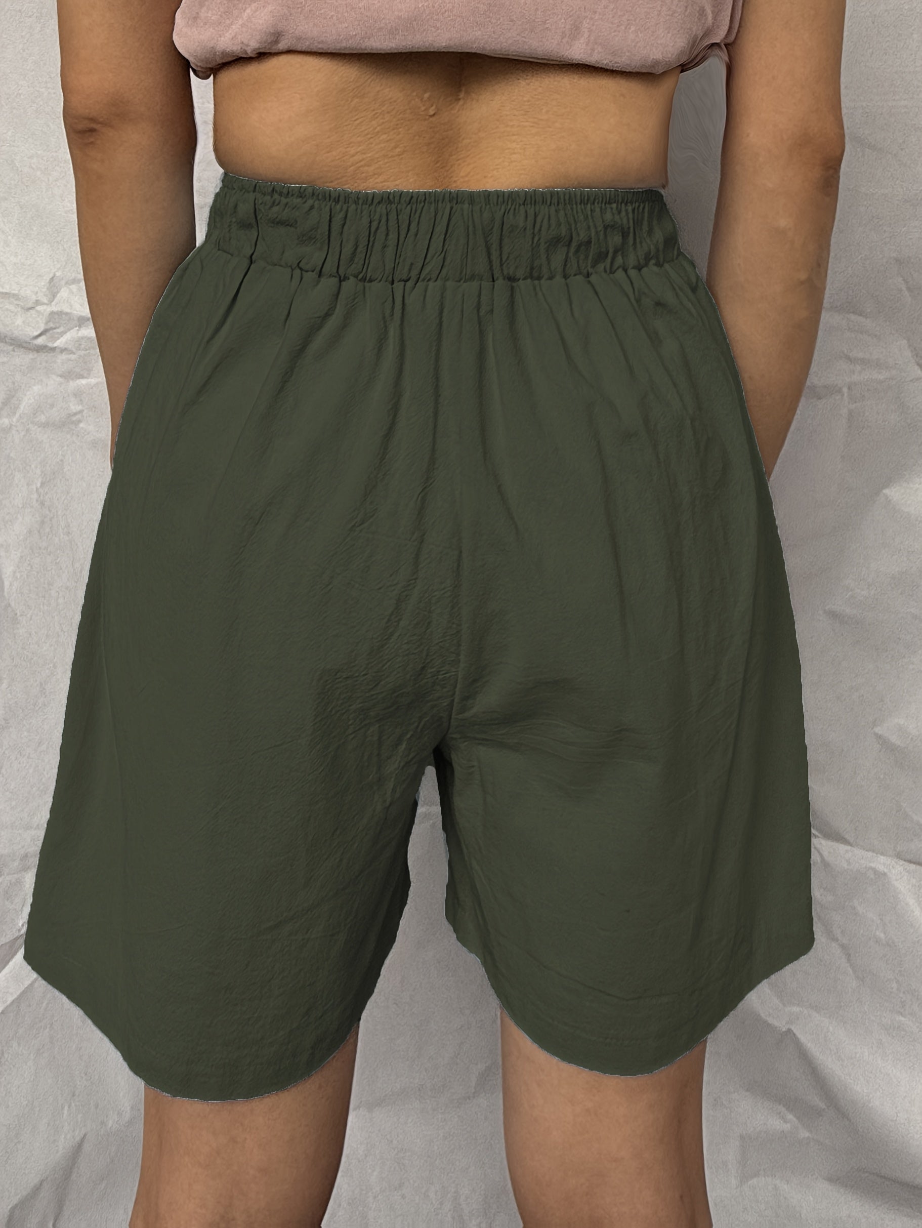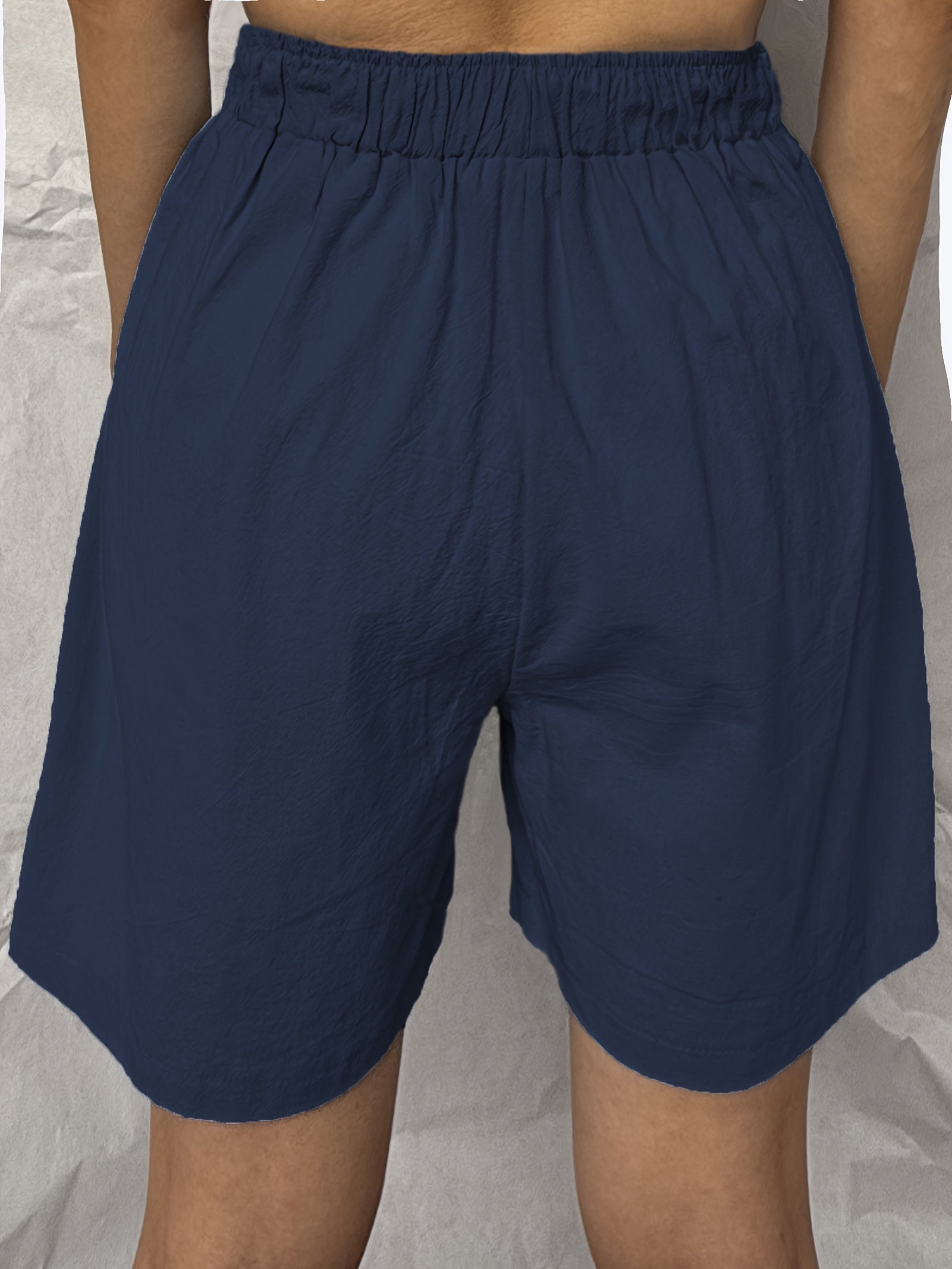 Միաձույլ գույնի կապած բարձր գոտկատեղի շորտեր, սովորական թեք գրպանի գործվածքից շորտեր գարնան և ամառի համար, կանացի հագուստ