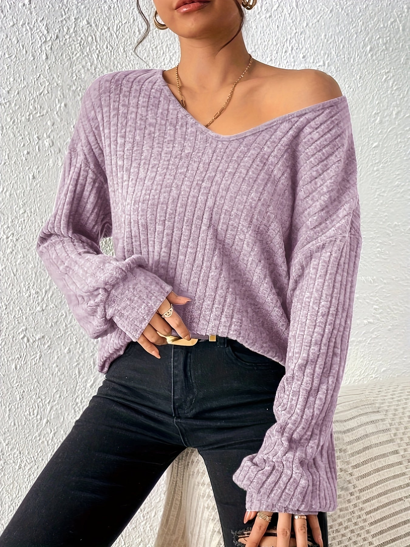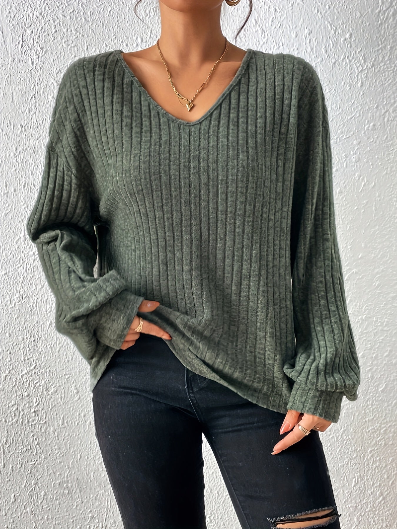 Միաձույլ գույնի V պարանոցով պարզ վերնաշապիկ, բազմակողմանի լապտերներով վերնաշապիկ գարնան և աշնան համար, կանացի հագուստ