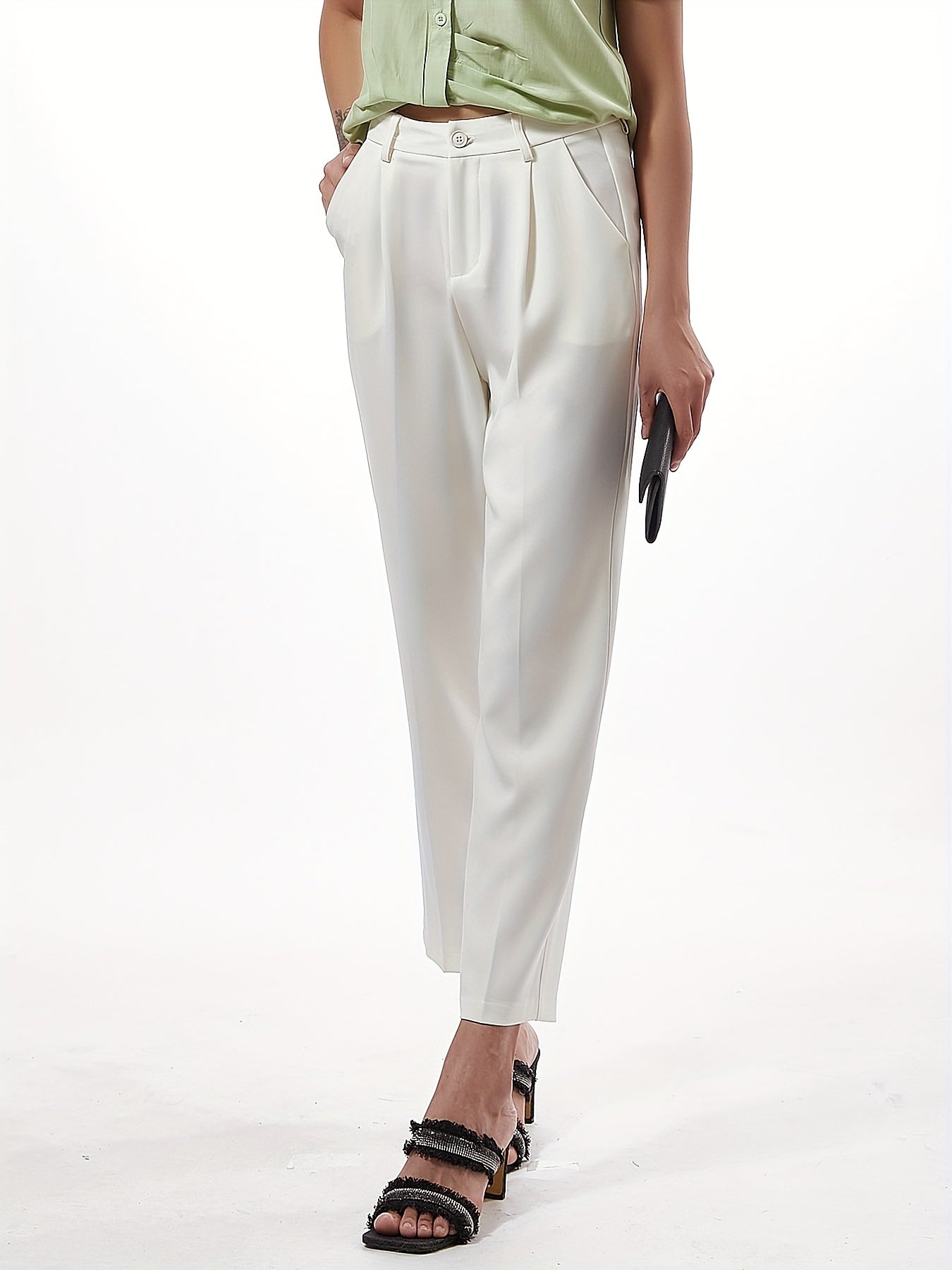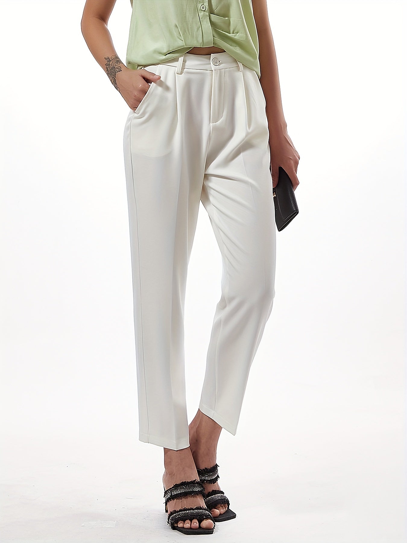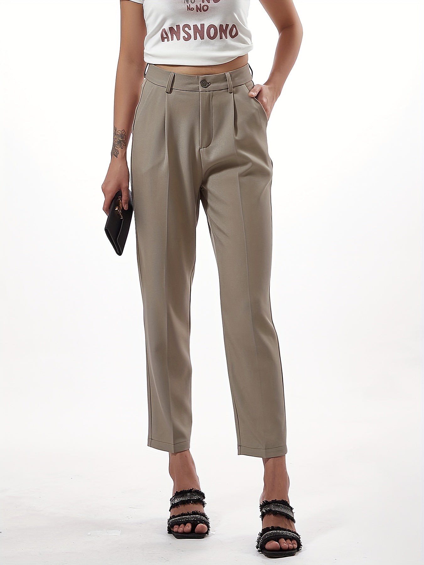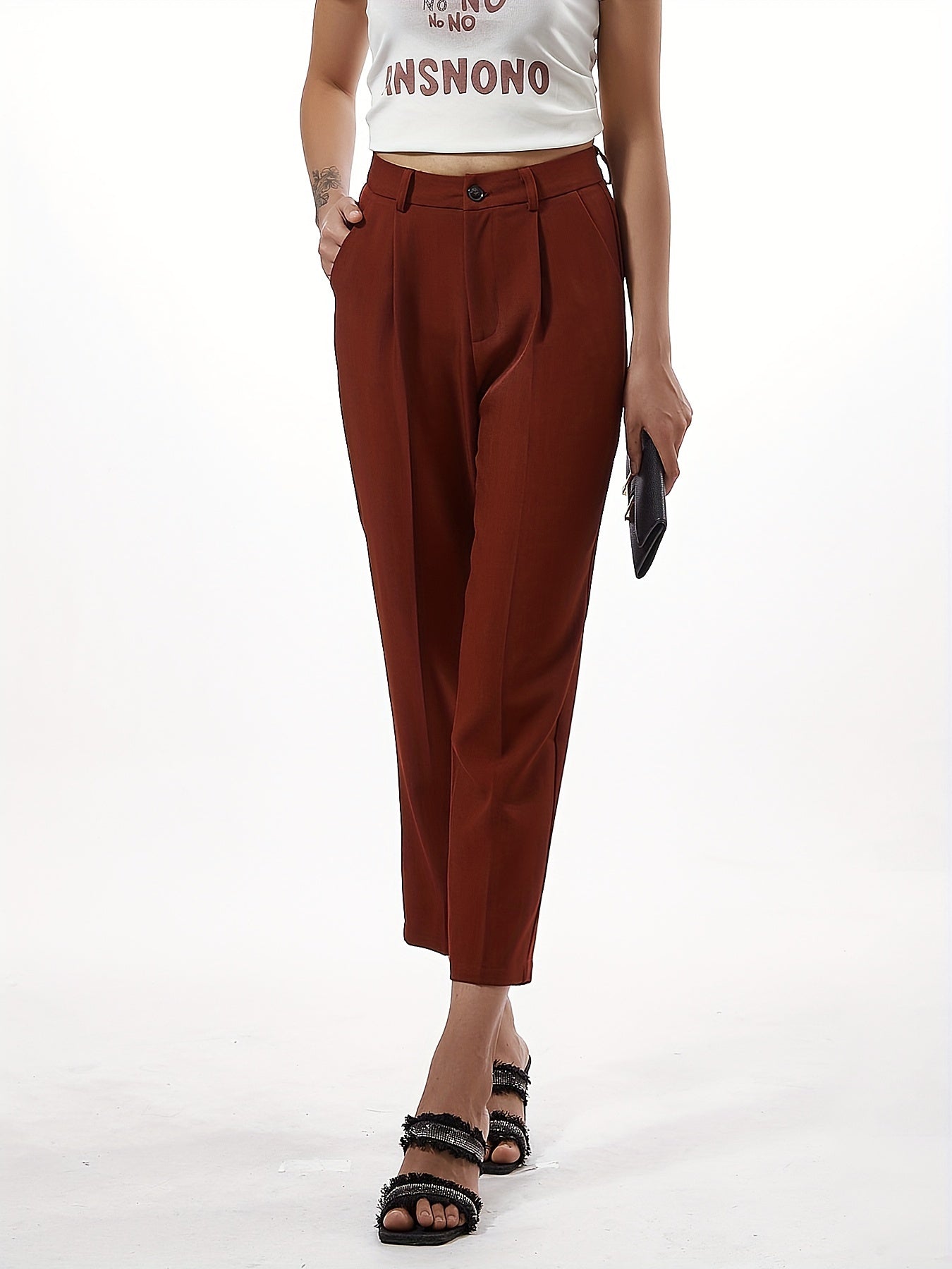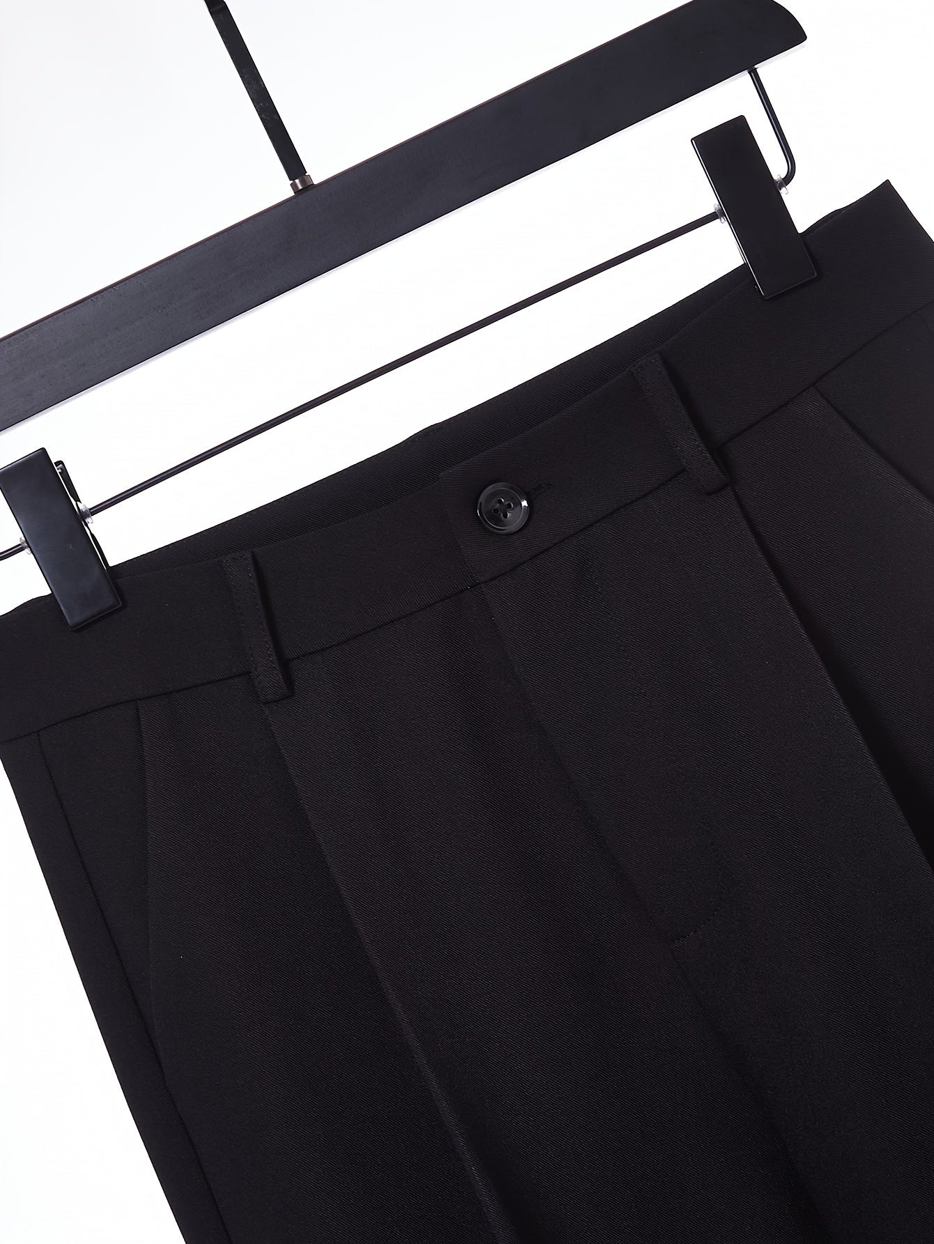 Կոշտ ծալքավոր ուղիղ շալվար, պատահական կտրված կոստյում գրպանով տաբատ, կանացի հագուստ