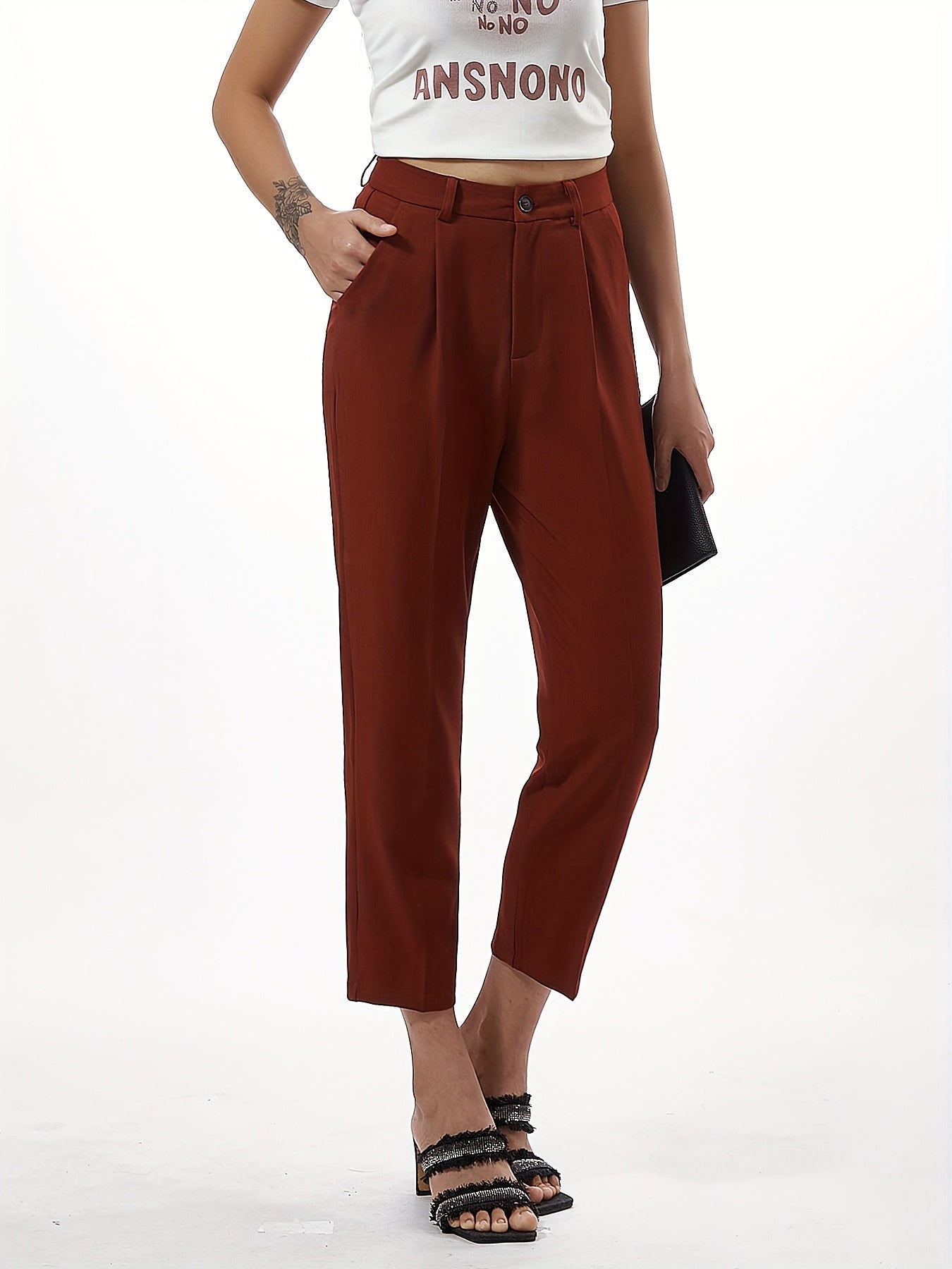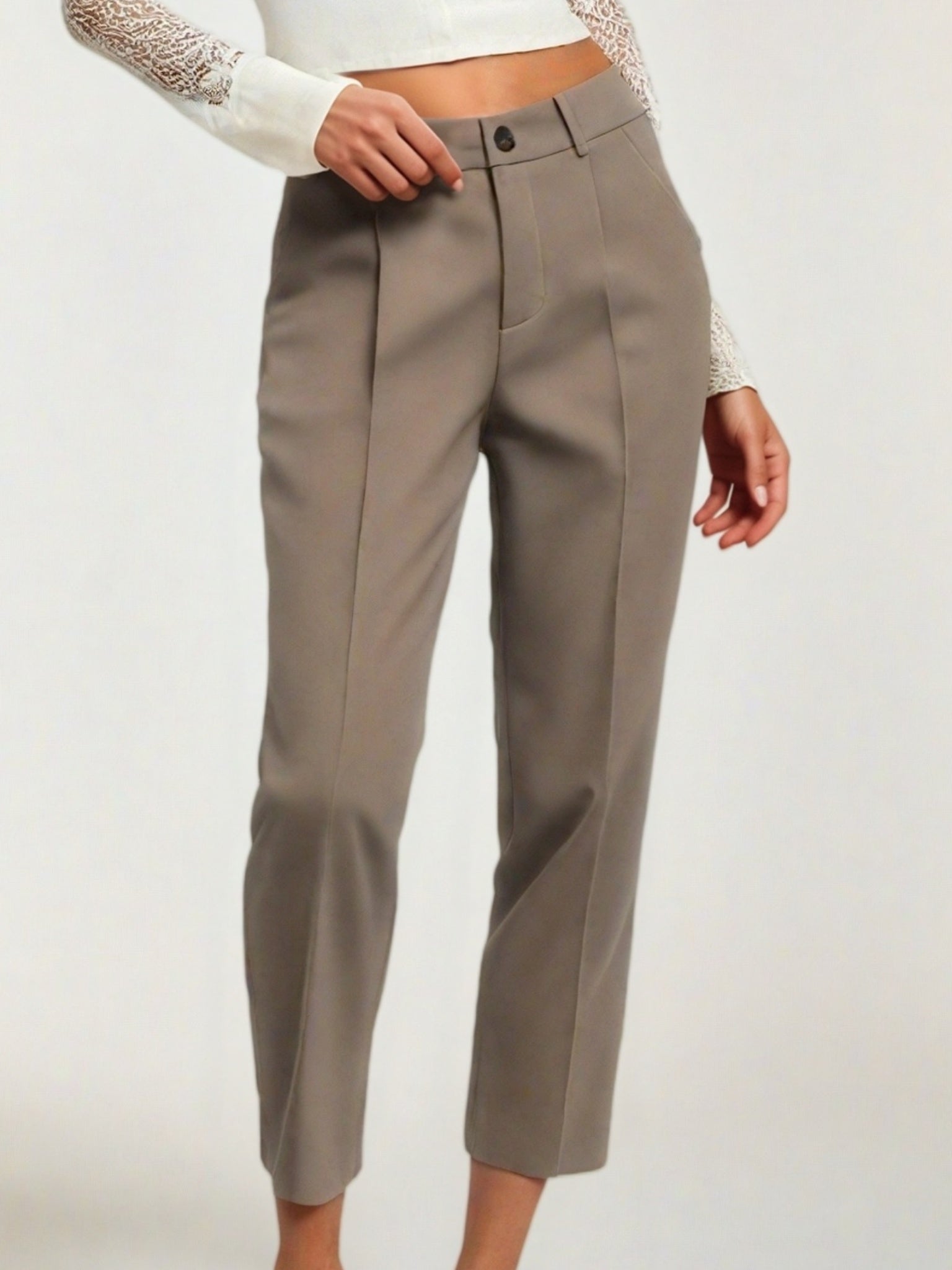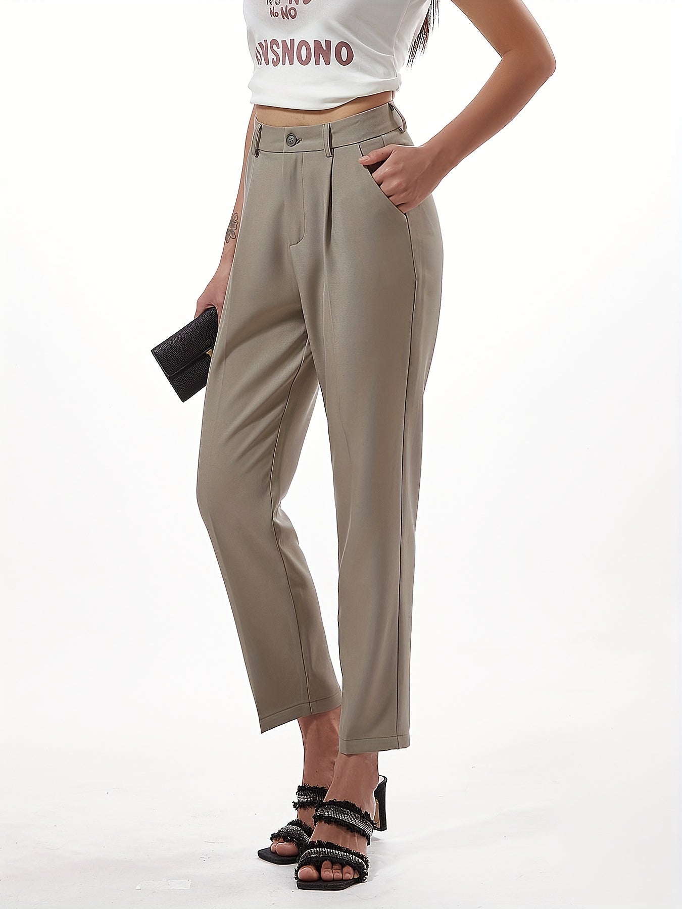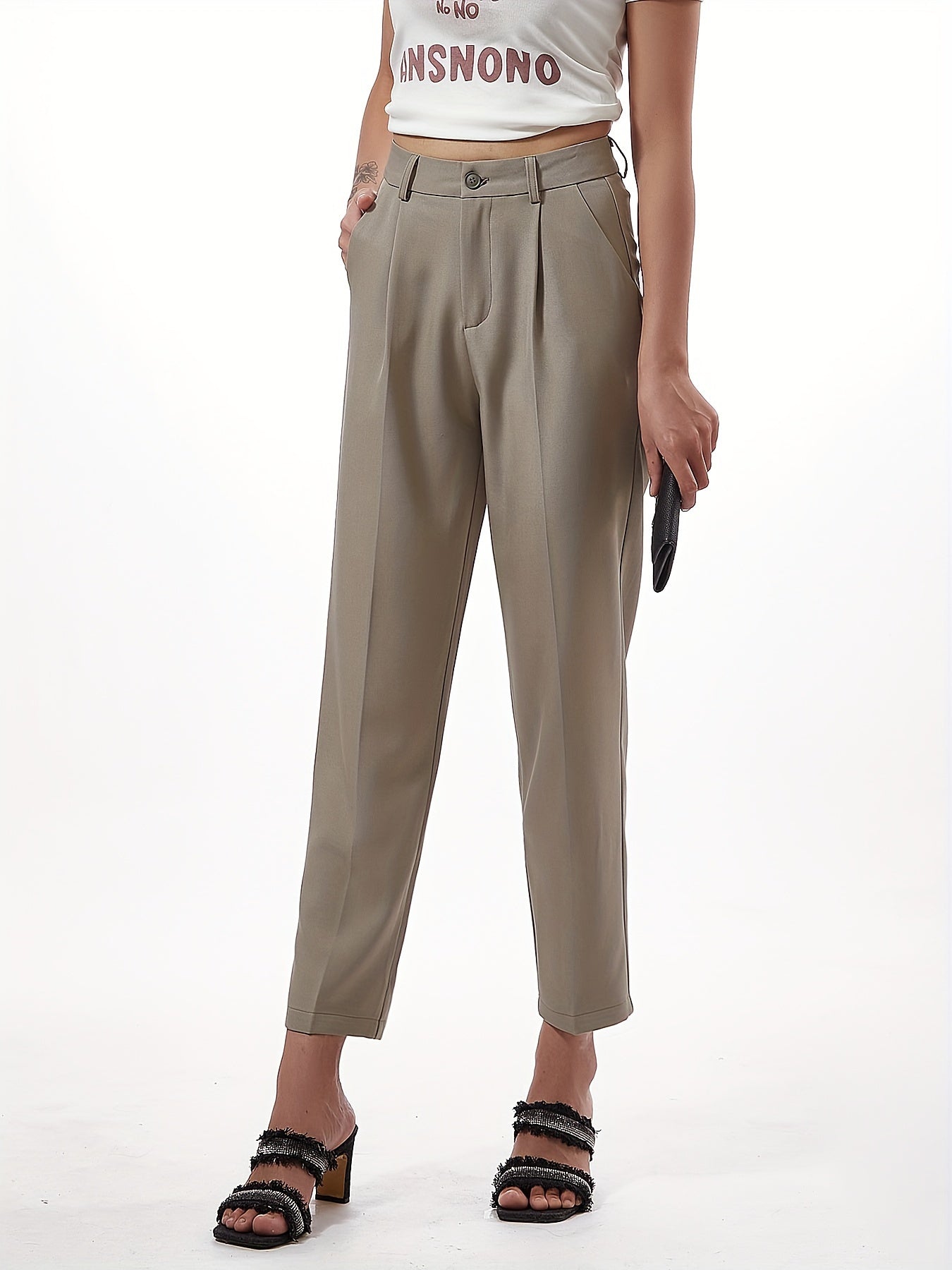 Կոշտ ծալքավոր ուղիղ շալվար, պատահական կտրված կոստյում գրպանով տաբատ, կանացի հագուստ