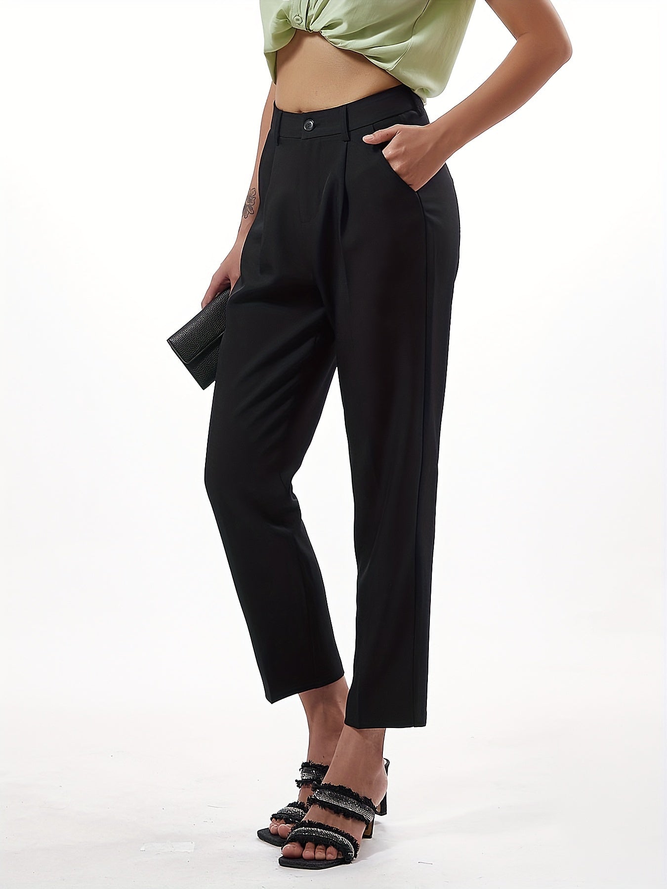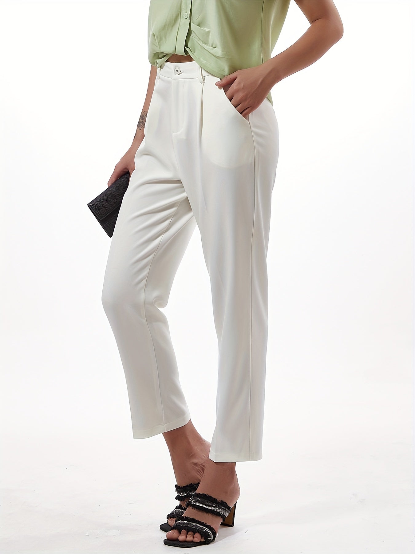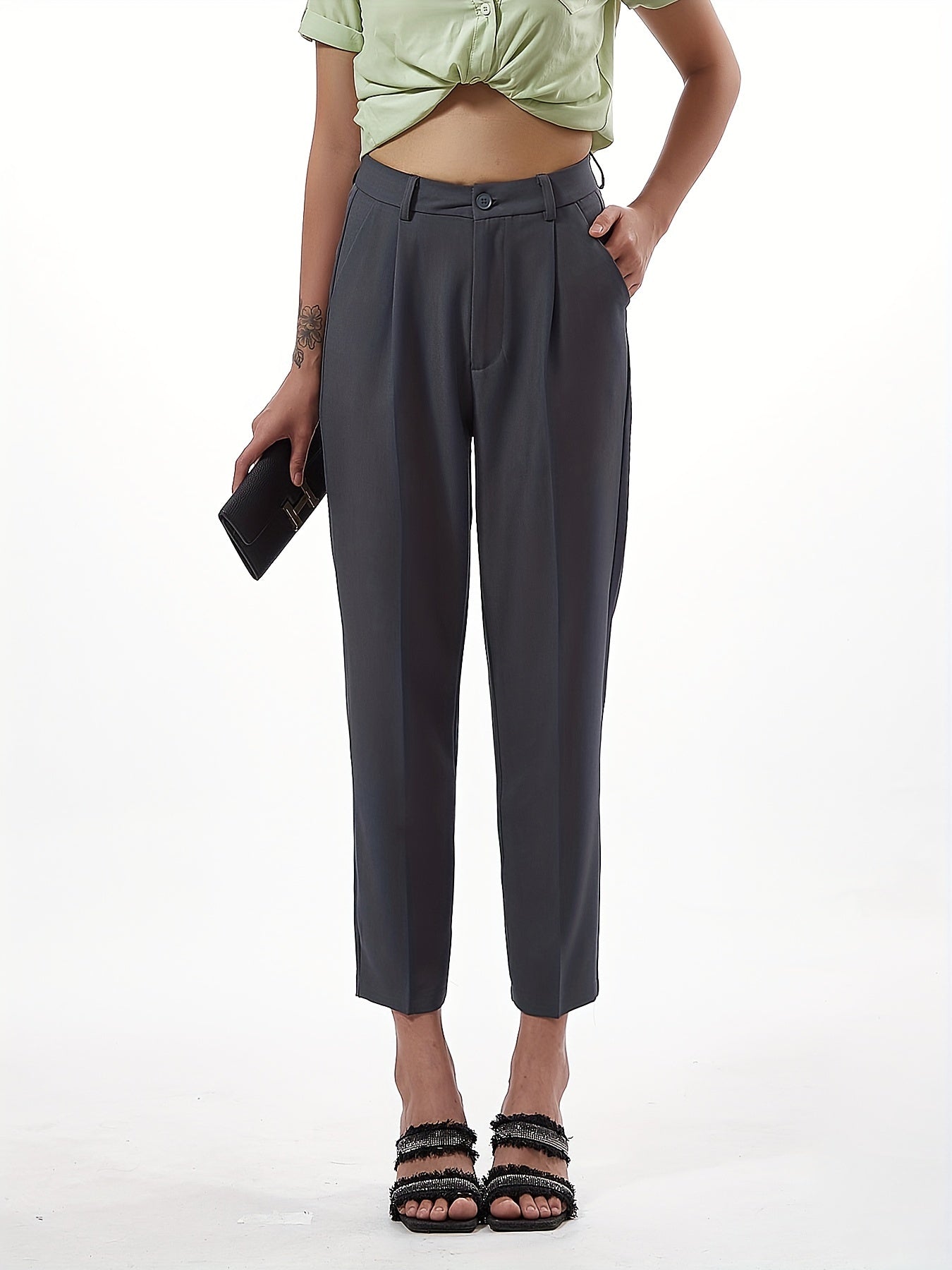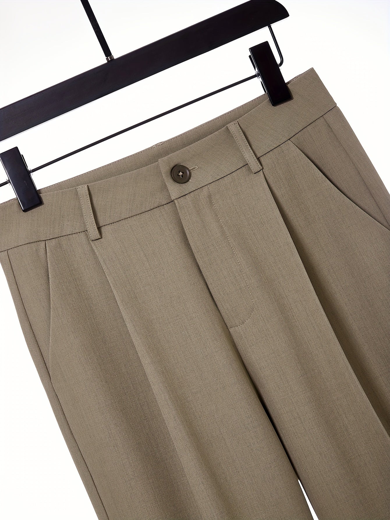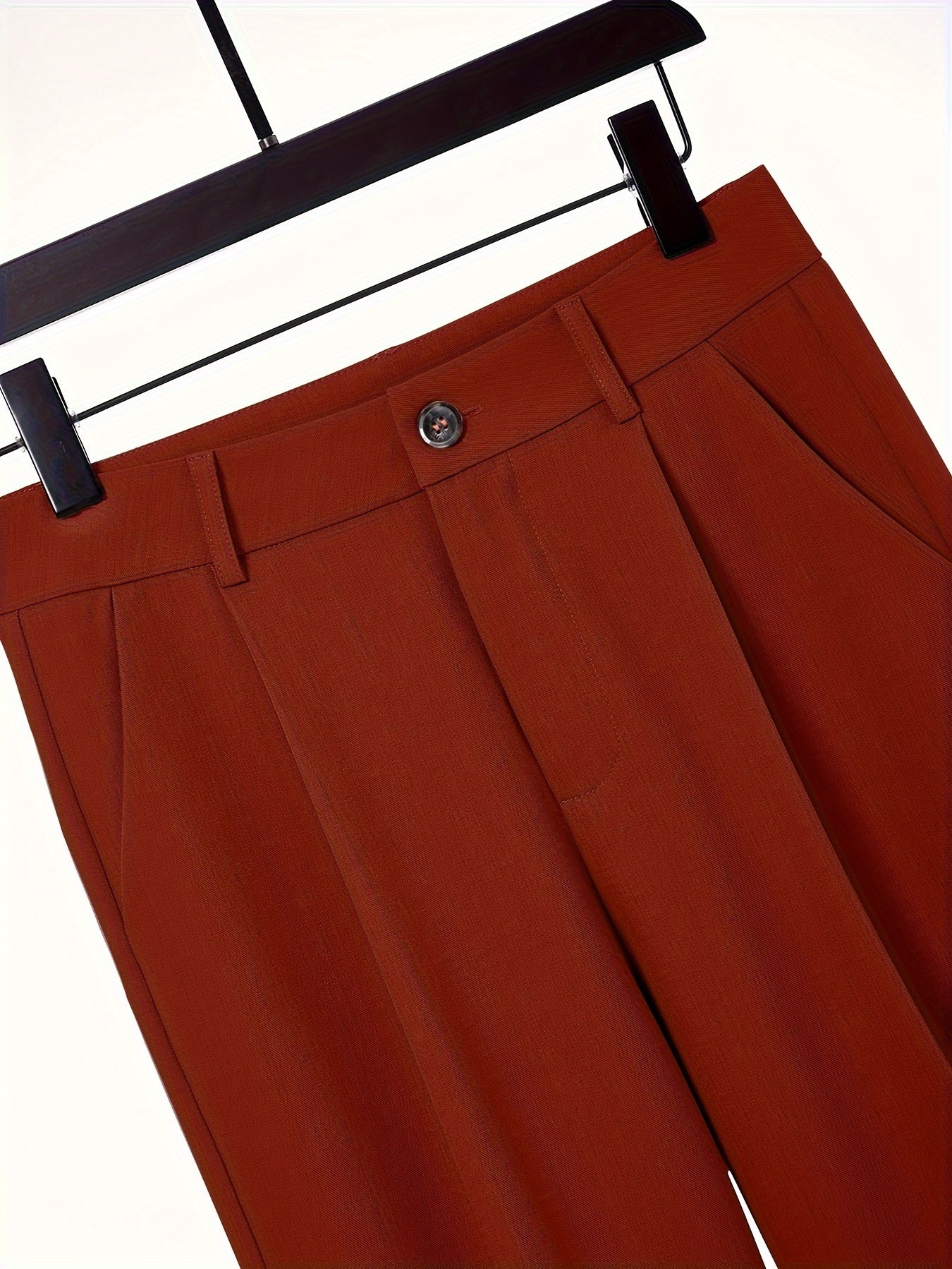 Կոշտ ծալքավոր ուղիղ շալվար, պատահական կտրված կոստյում գրպանով տաբատ, կանացի հագուստ