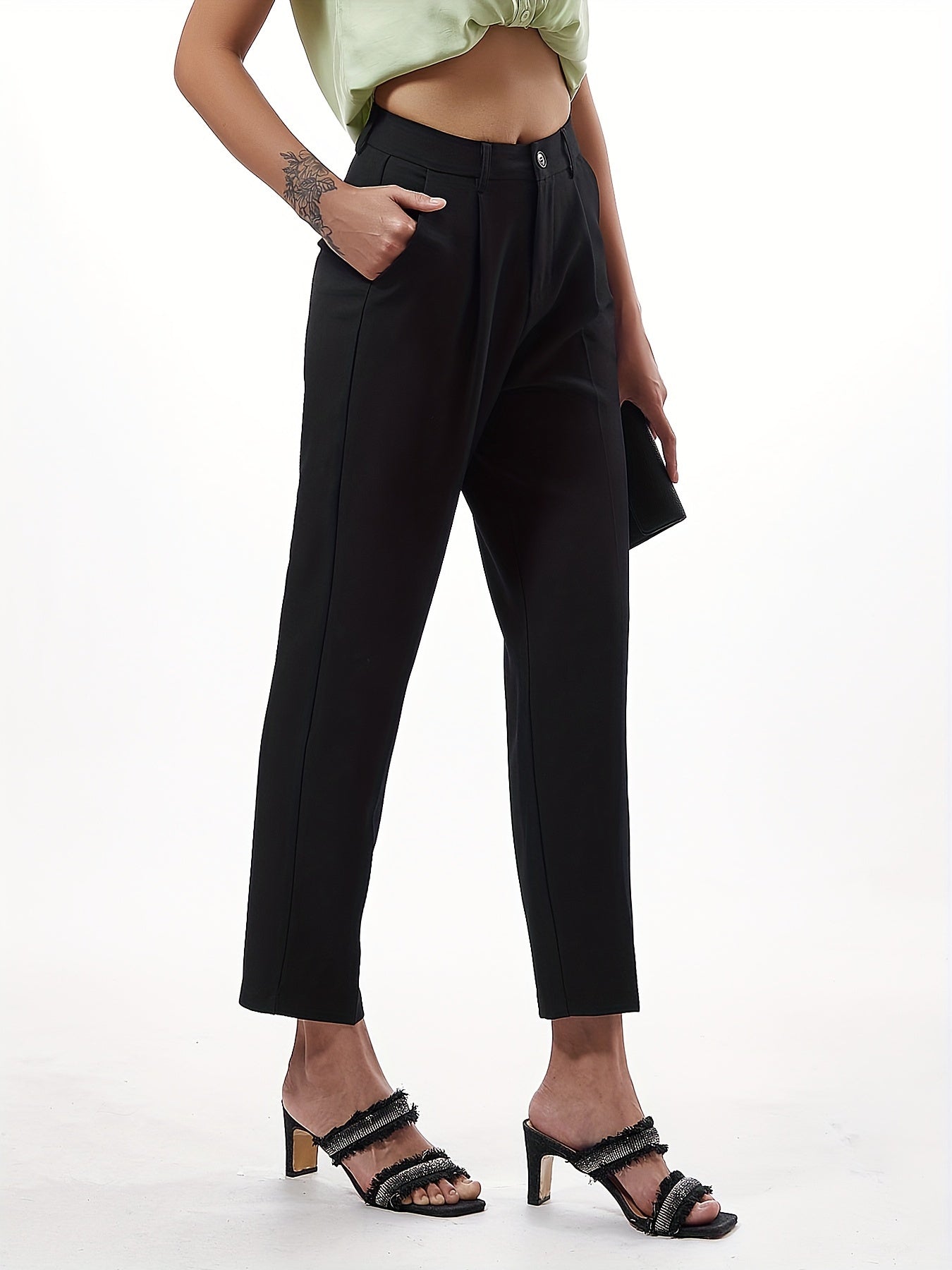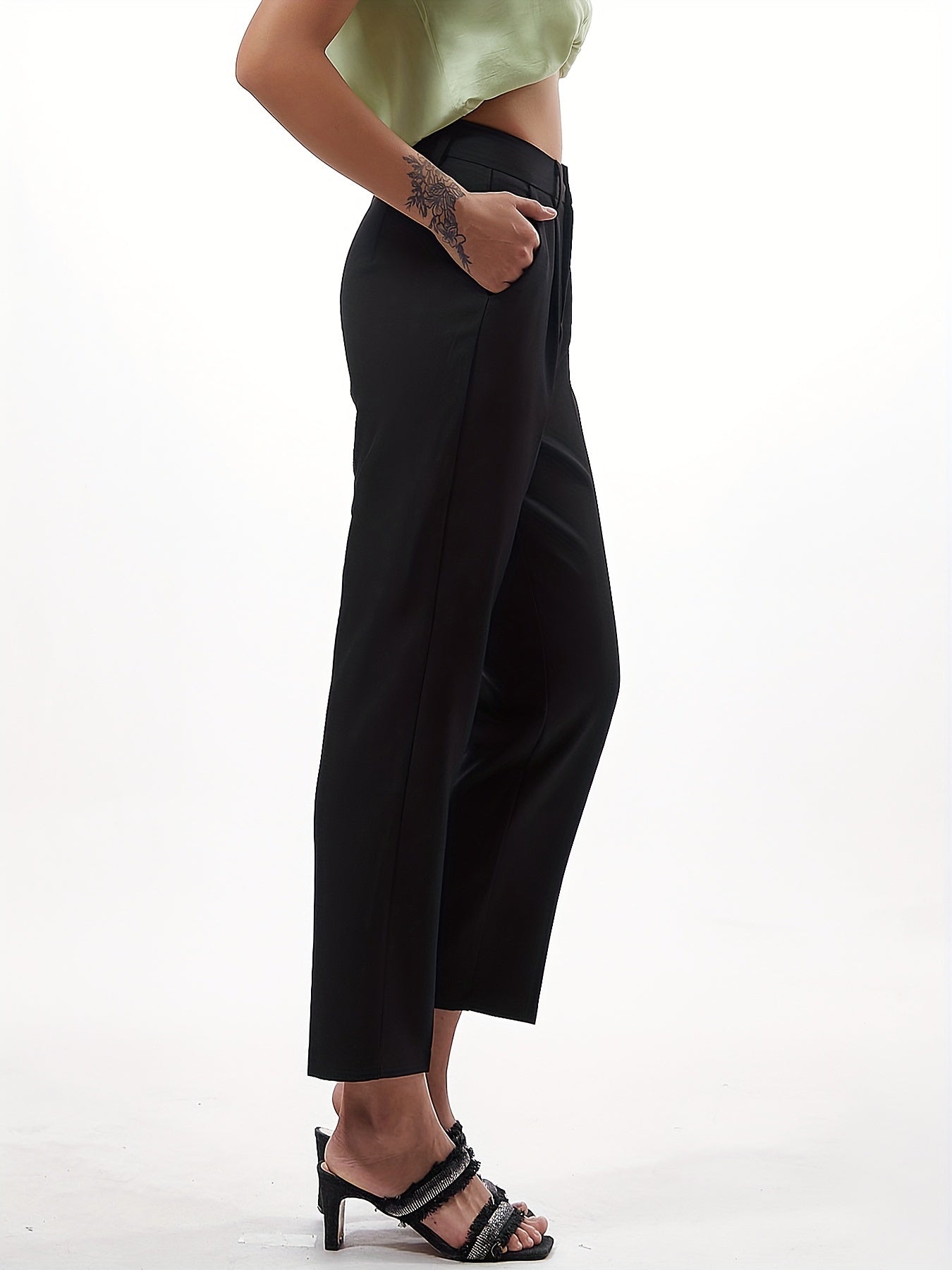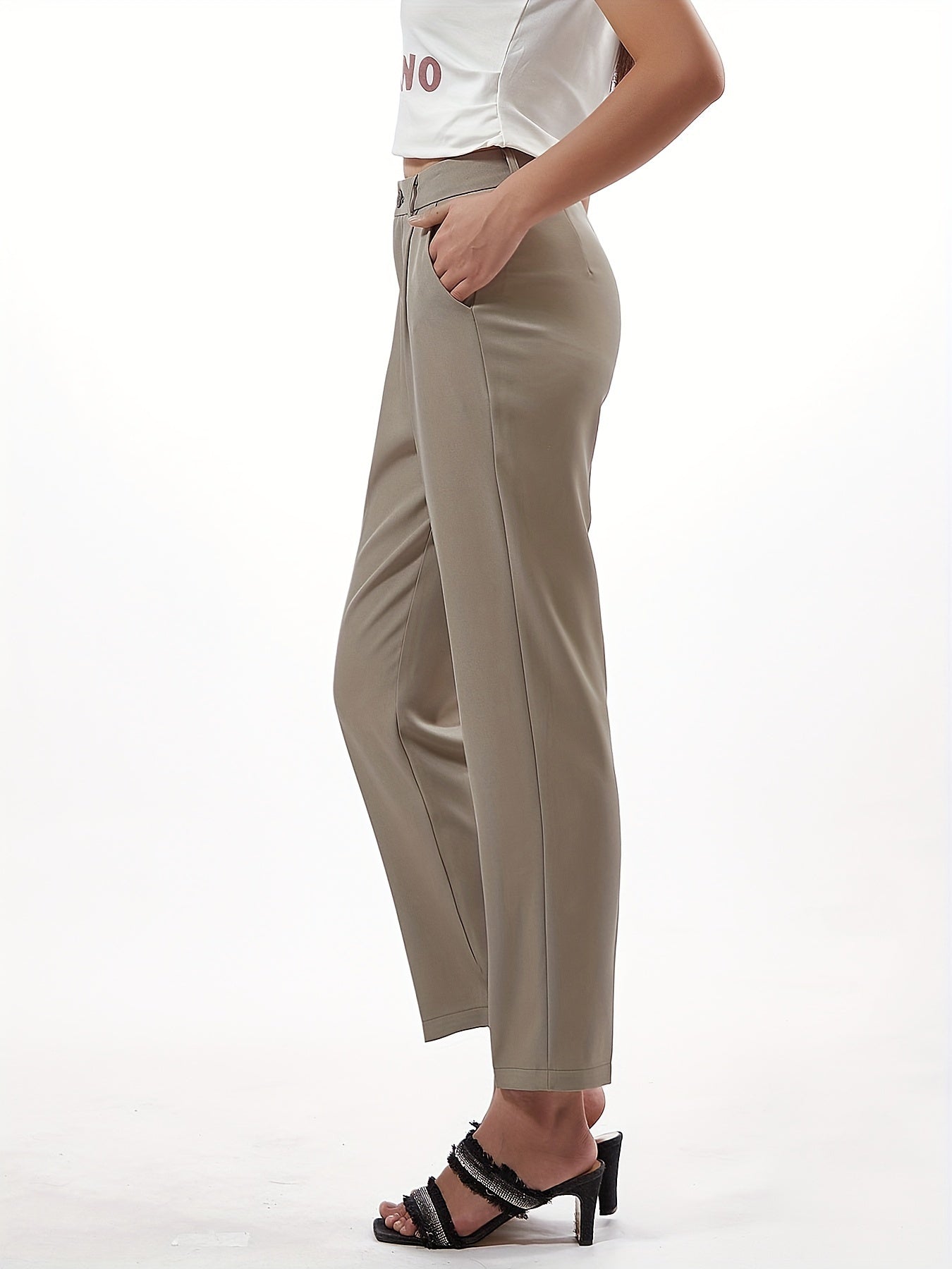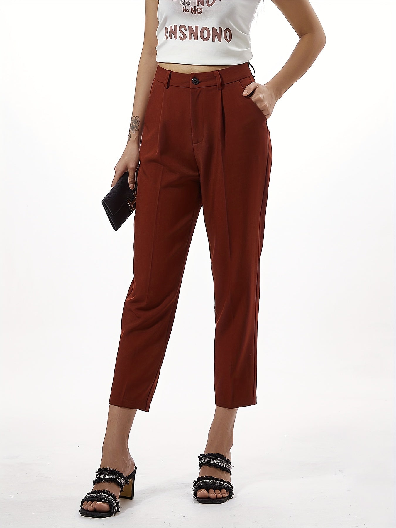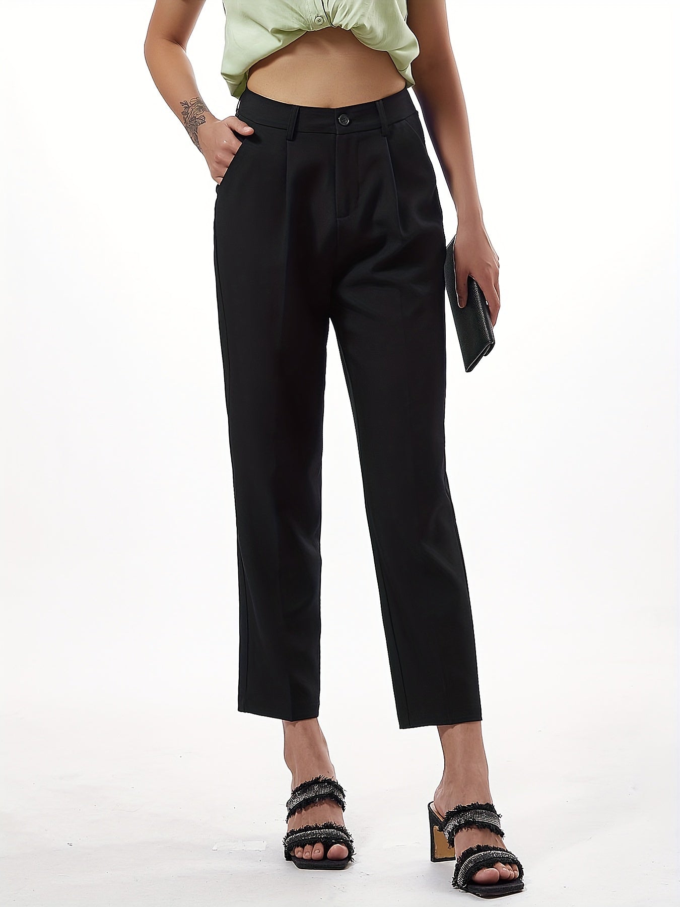 Կոշտ ծալքավոր ուղիղ շալվար, պատահական կտրված կոստյում գրպանով տաբատ, կանացի հագուստ