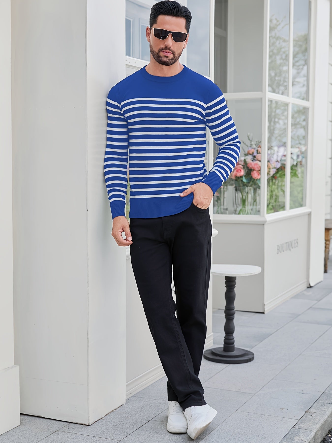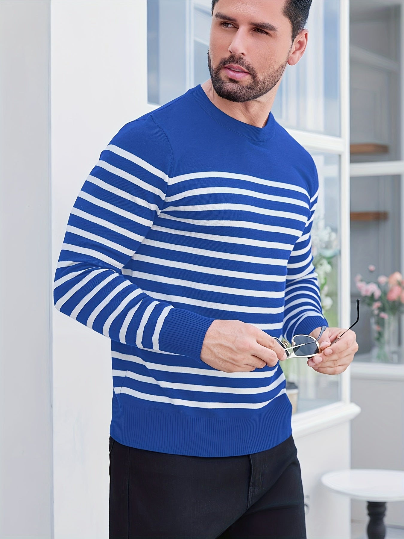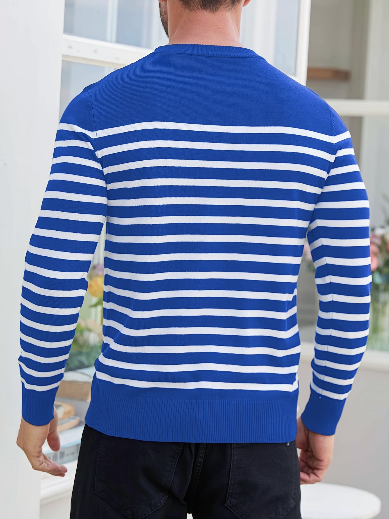 Գարնանային և աշնանային ամենօրյա երկգույն գծավոր տղամարդու սվիտեր-պուլովեր՝ գունավոր բլոկներով, կլոր վզնոցով, տղամարդու տրիկոտաժե վերնաշապիկ