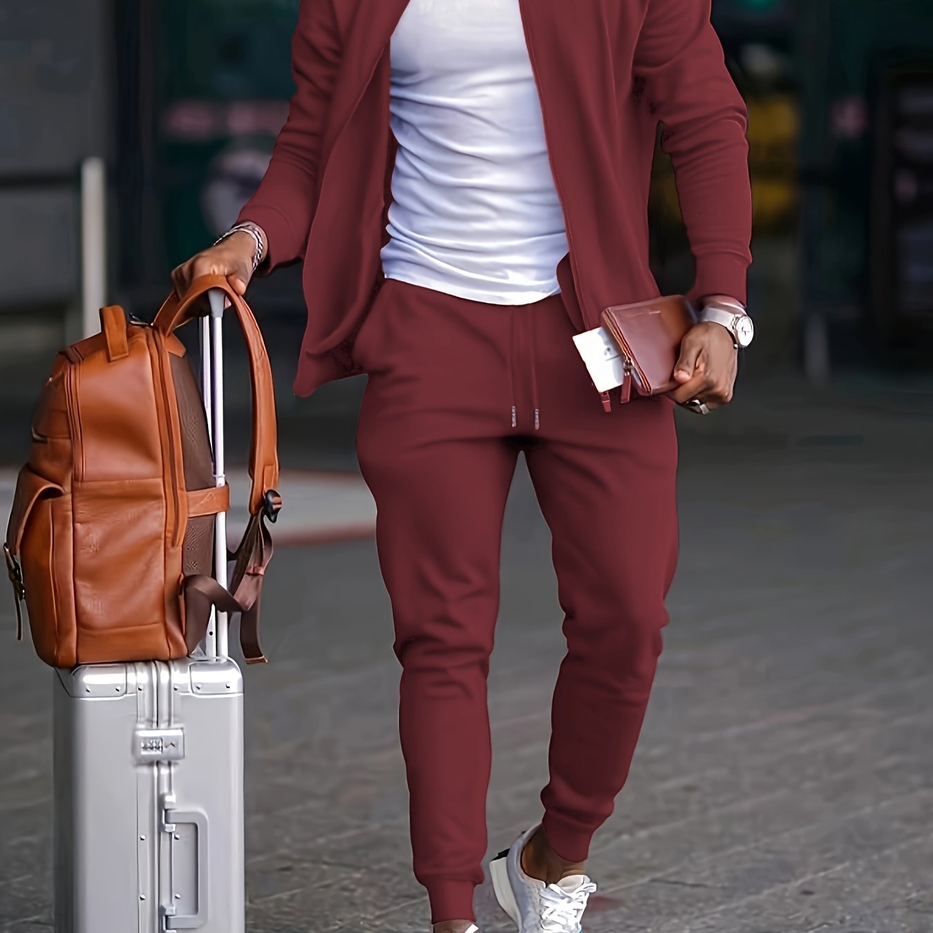 Spring and Autumn Men's Casual Sport Solid Color Suit
