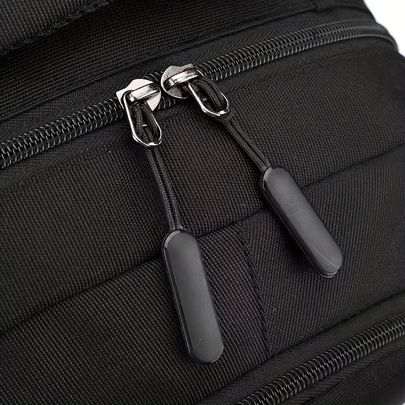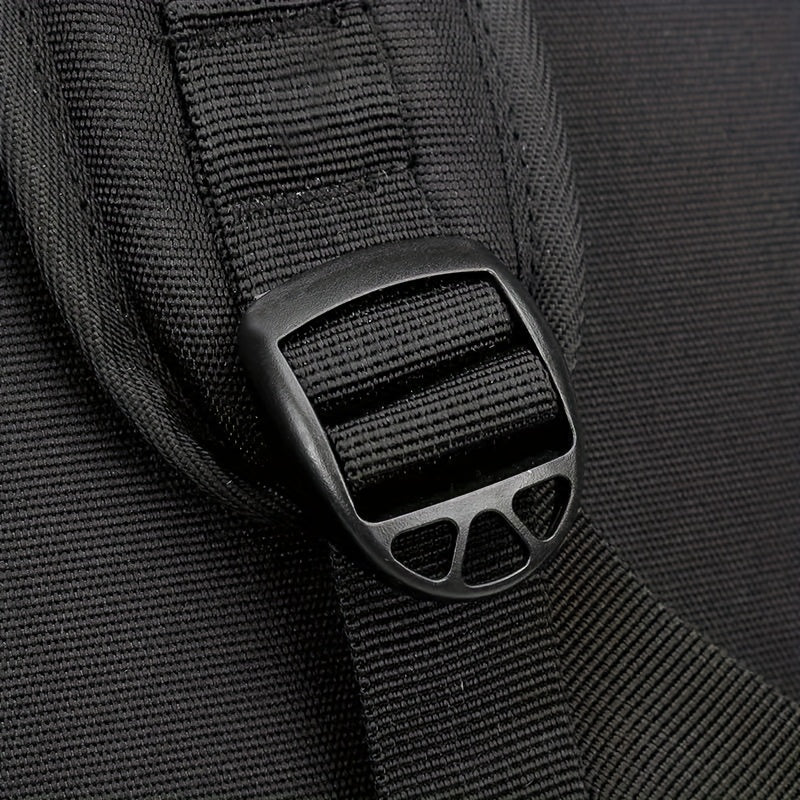 Նորաձև սև նեյլոնե մեջքի պայուսակ - թեթև, բարձրորակ, մեծ տարողունակությամբ՝ նոութբուքի համար նախատեսված բաժինով, կարգավորվող գոտիներով և ցանցե գրպաններով՝ դպրոցի, ճանապարհորդության և աշխատանքի համար
