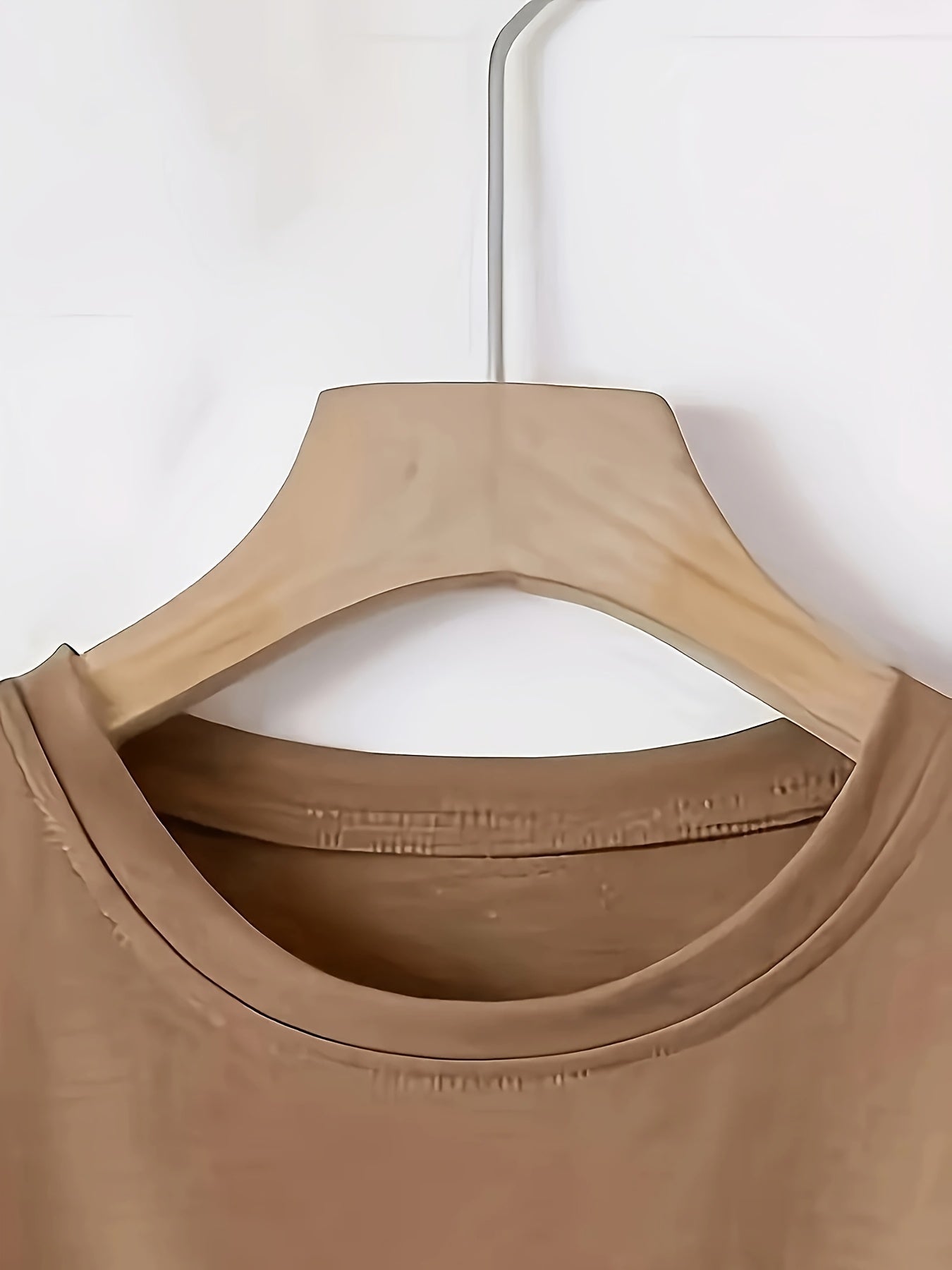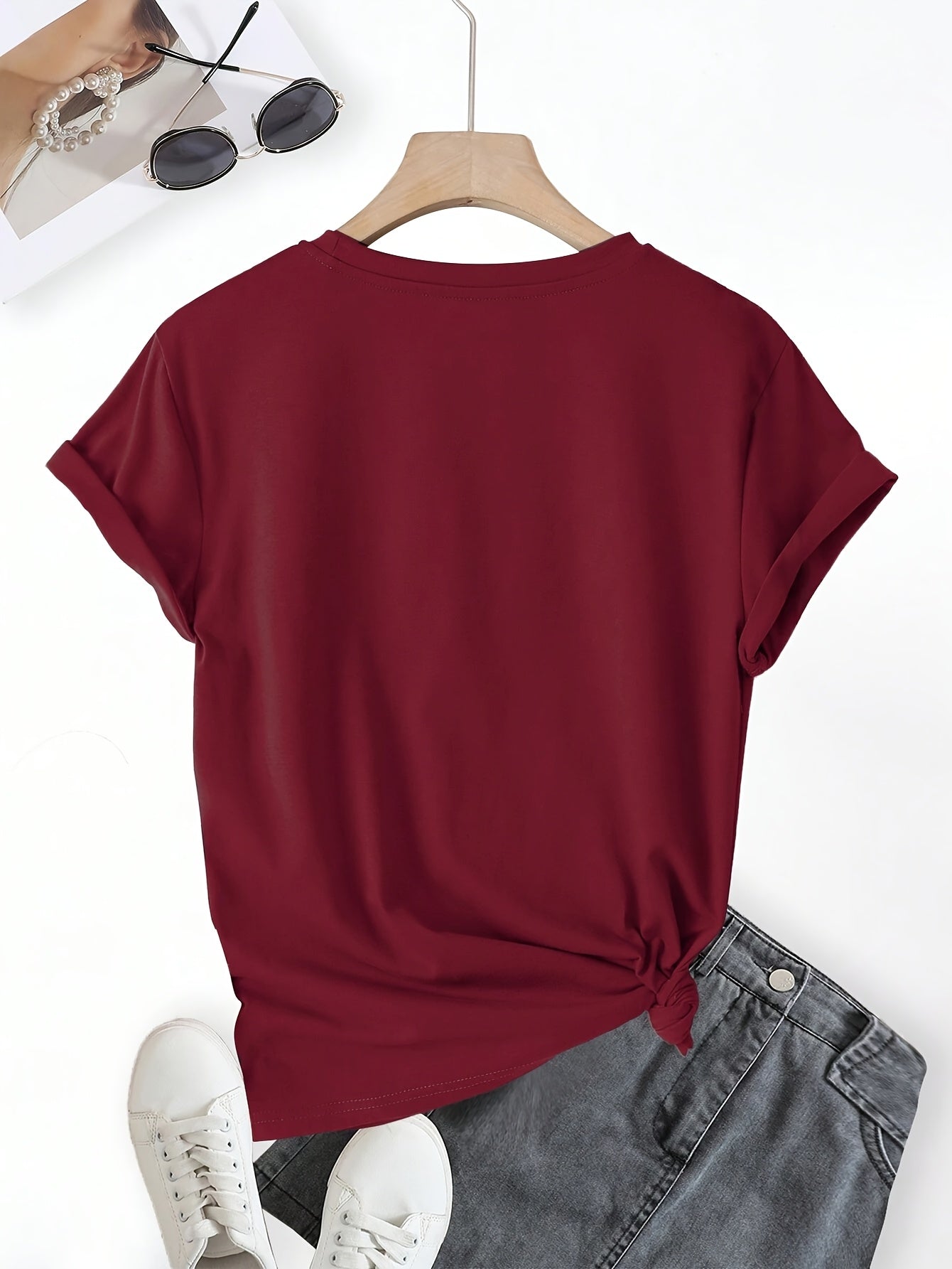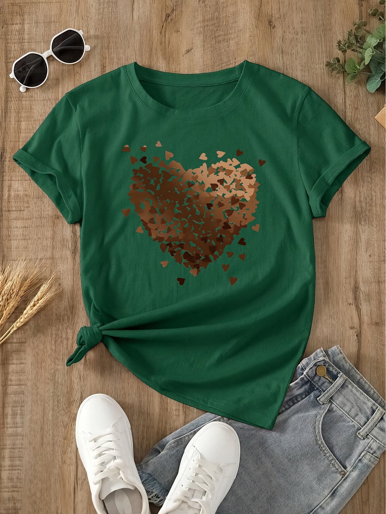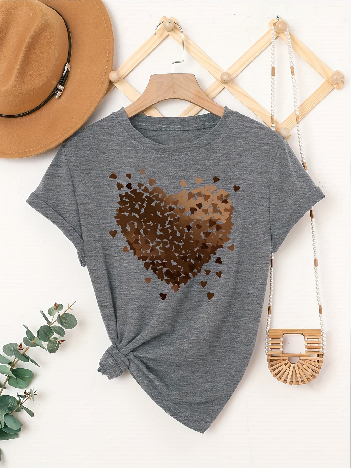 Նորաոճ շագանակագույն գրադիենտ սրտային պրինտ շապիկ - 100% պոլիեսթեր, կլոր պարանոց, կարճ թեւ, սպորտային թիկնոց կանանց համար - լվացվող մեքենայում, կատարյալ գարուն/ամառ նորաձևության համար