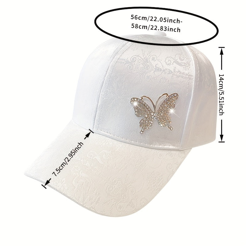 Կանացի ոճային բեյսբոլի գլխարկ՝ թիթեռի տեսքով, ադամանդե քարերով - թեթև, կարգավորվող և բազմակողմանի արևապաշտպան գլխարկ՝ ժանյակավոր նախշերով, իդեալական է գարնան, ամռան և աշնան համար, առօրյա գլխարկ | Թիթեռի զարդարանք | թեթև գլխարկ