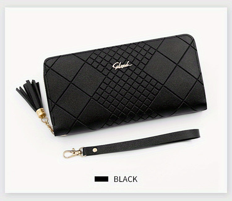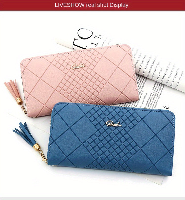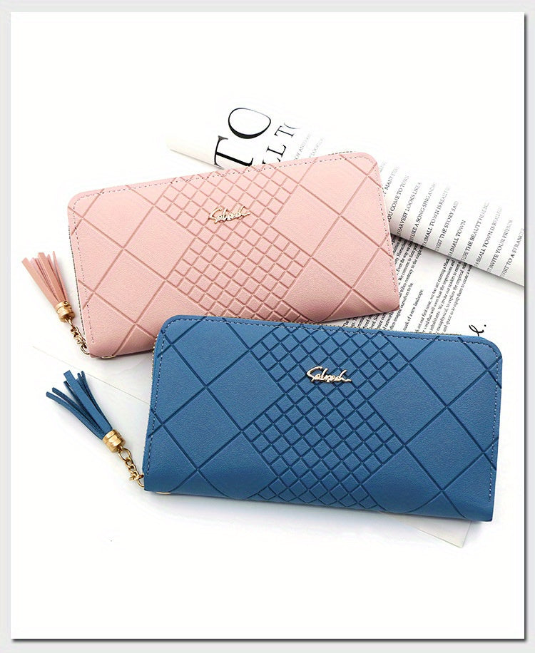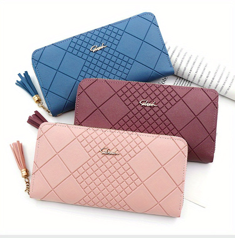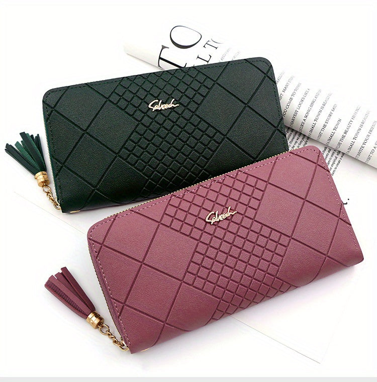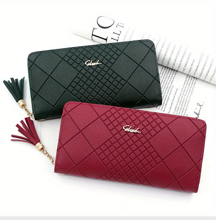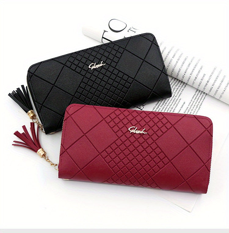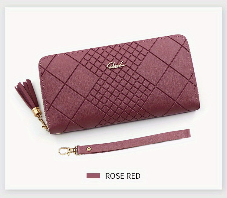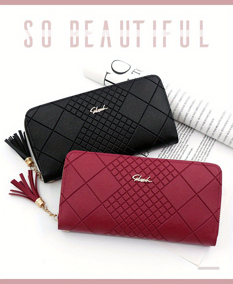 [Նորաոճ շղարշ] Կանացի էլեգանտ երկար դրամապանակ՝ կայծակաճարմանդով փակվող – Նորաձև կարմիր ծածկված քարտի պահարան, դետալներ և բազմակի խցիկներ ամենօրյա օգտագործման համար, անվտանգ կայծակաճարմանդ դրամապանակ | Թասել առոգանություն | Դրամապանակ