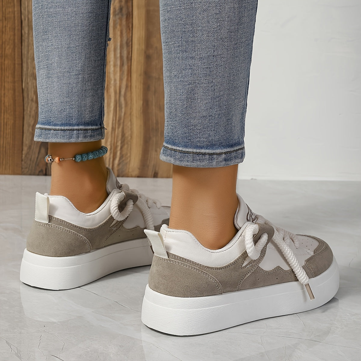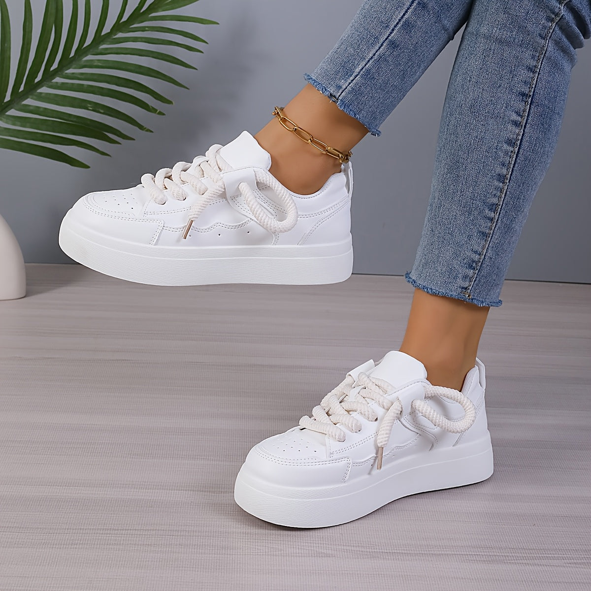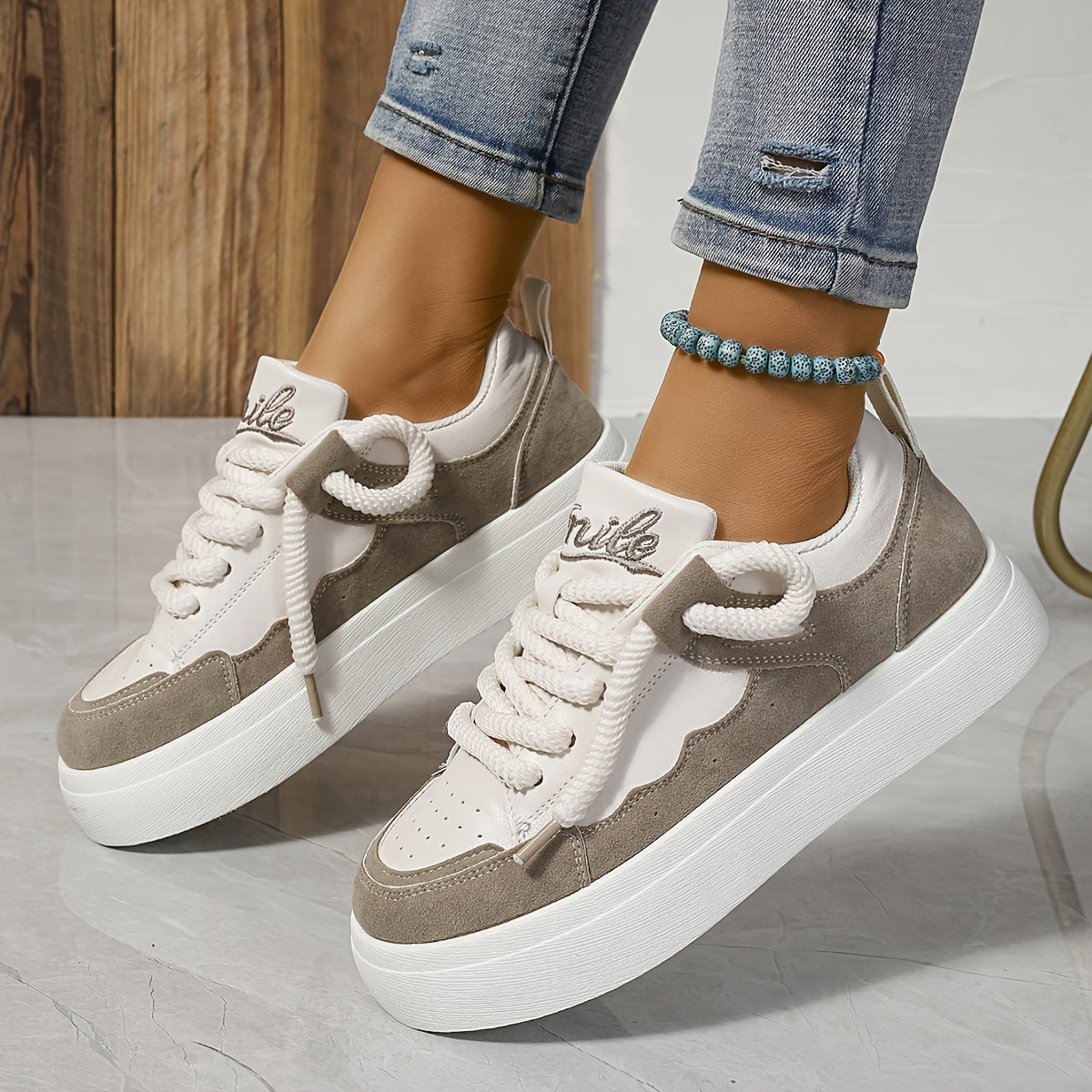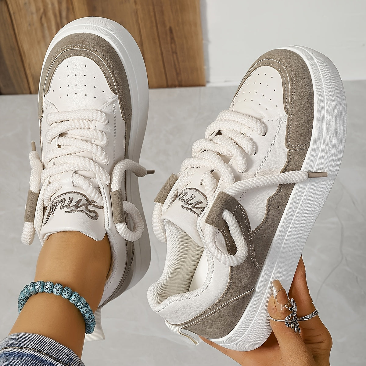 Նորաոճ կանացի պատահական սպորտային կոշիկներ՝ կապույտ և սպիտակ երկգույն, ժանյակավոր, ցածր վերևի սքեյթ կոշիկներ՝ հաստ սպիտակ տակացուներով, հարմարավետ արհեստական ծածկոց, հագուստ բոլոր սեզոններին: