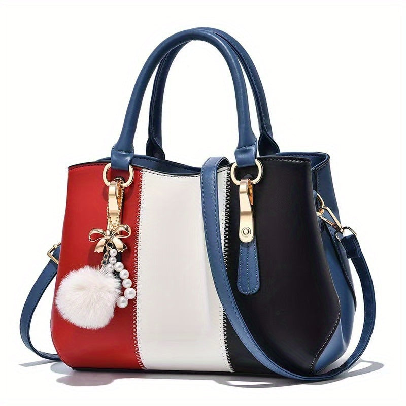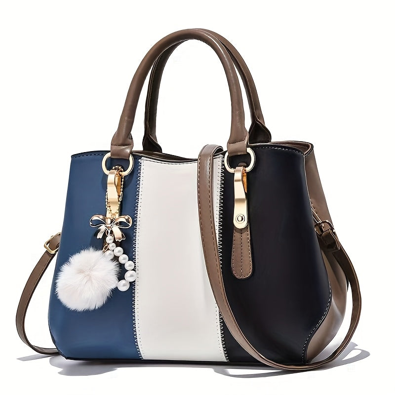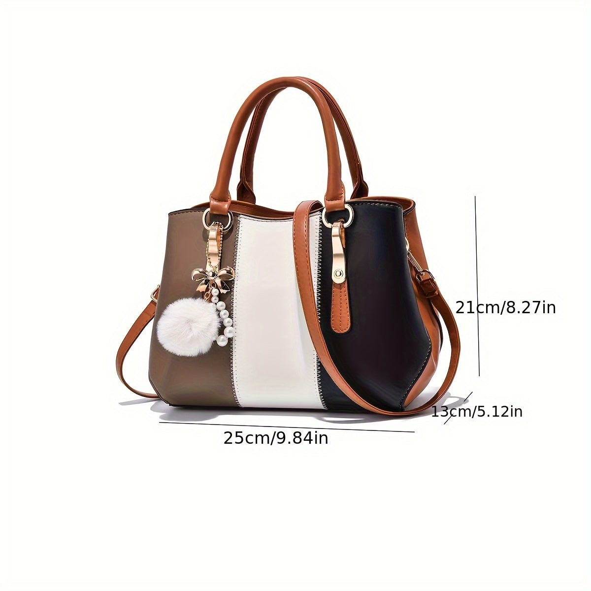 Stylish Women'S Shoulder Bag with Detachable Strap - Large Capacity, Geometric Pattern, White, Blue, and Brown, Perfect for Work, Parties, and Everyday Use, Party Accessory | Geometric Pattern Bag | Durable Zipper Closure, Pu