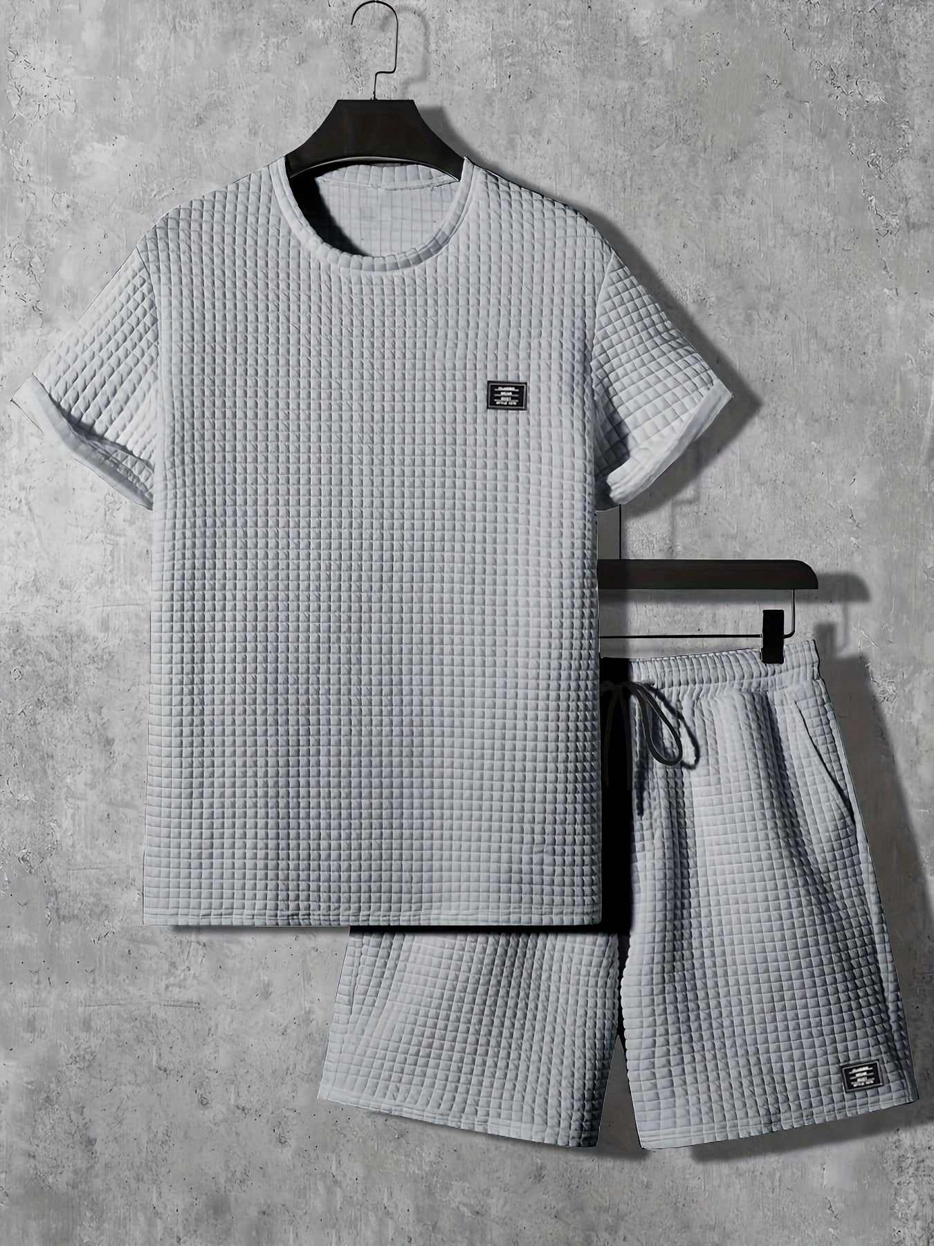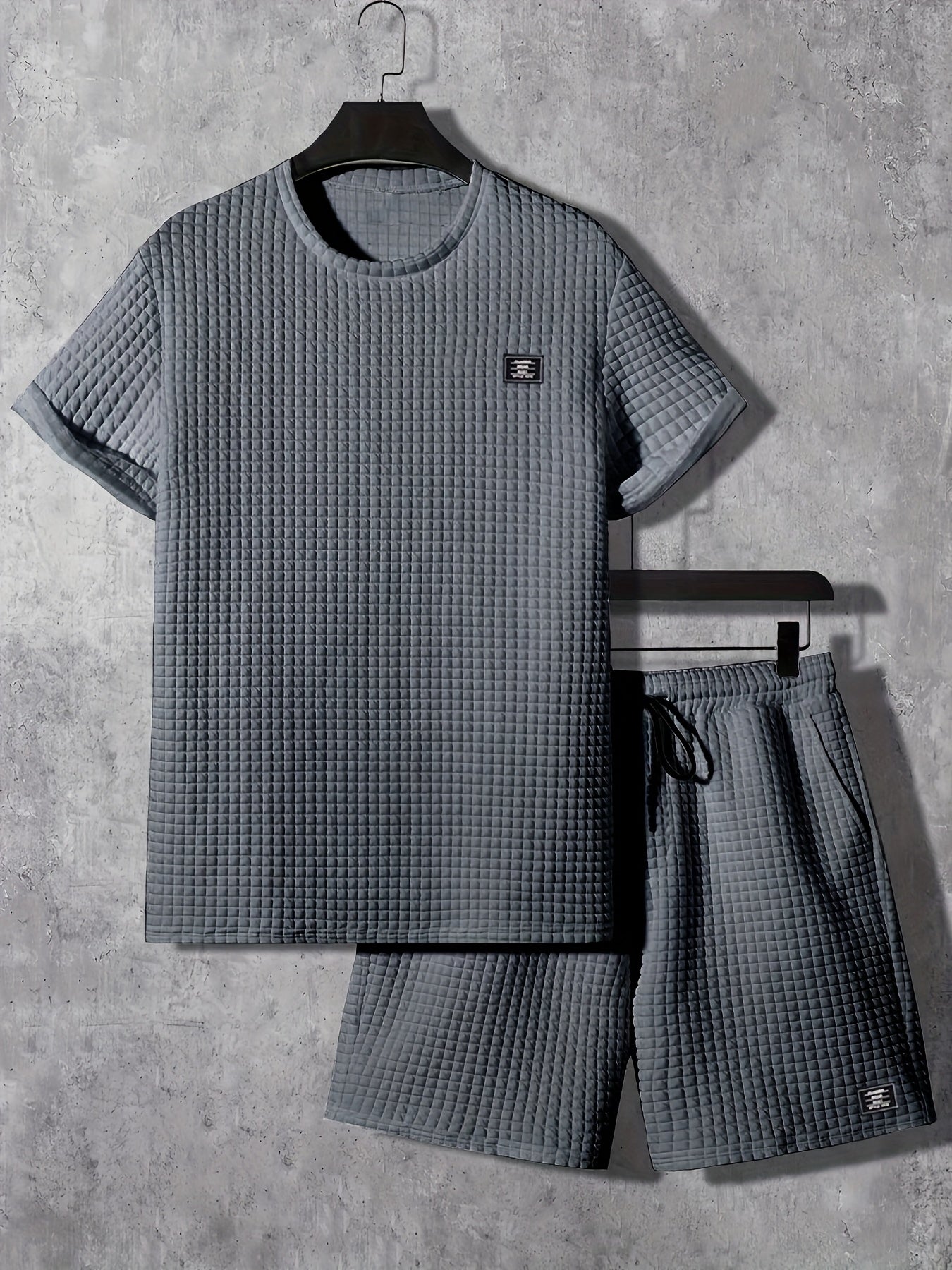 Ամառային տղամարդկանց համար նախատեսված սպորտային հավաքածու՝ 2 հատ, նորաձև, կլոր վզնոցով կարճ թևքով մարզաշապիկ + շորտեր