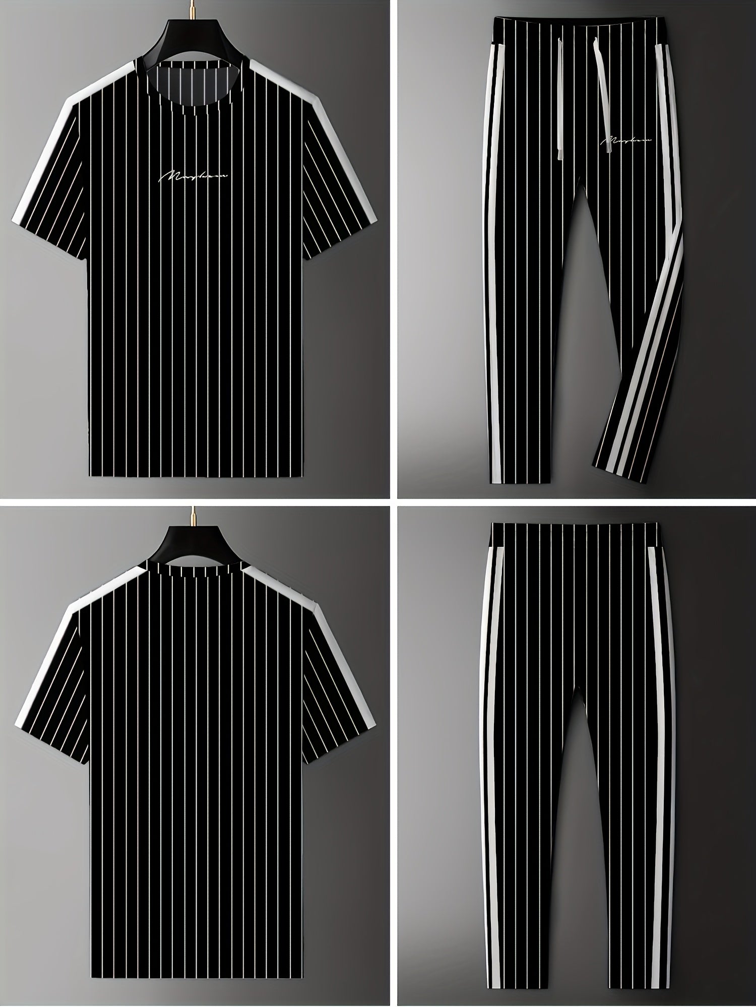 Ամառային տղամարդու գծավոր ուղղահայաց շերտավոր 3D տպագրությամբ սպորտային կարճ թևքերով կոստյում, ֆիթնես սպորտային շորտեր, տղամարդու հավաքածու, բացօթյա սպորտային հագուստի համար, գրպանային վերնաշապիկով, երկու մասից բաղկացած հավաքածու
