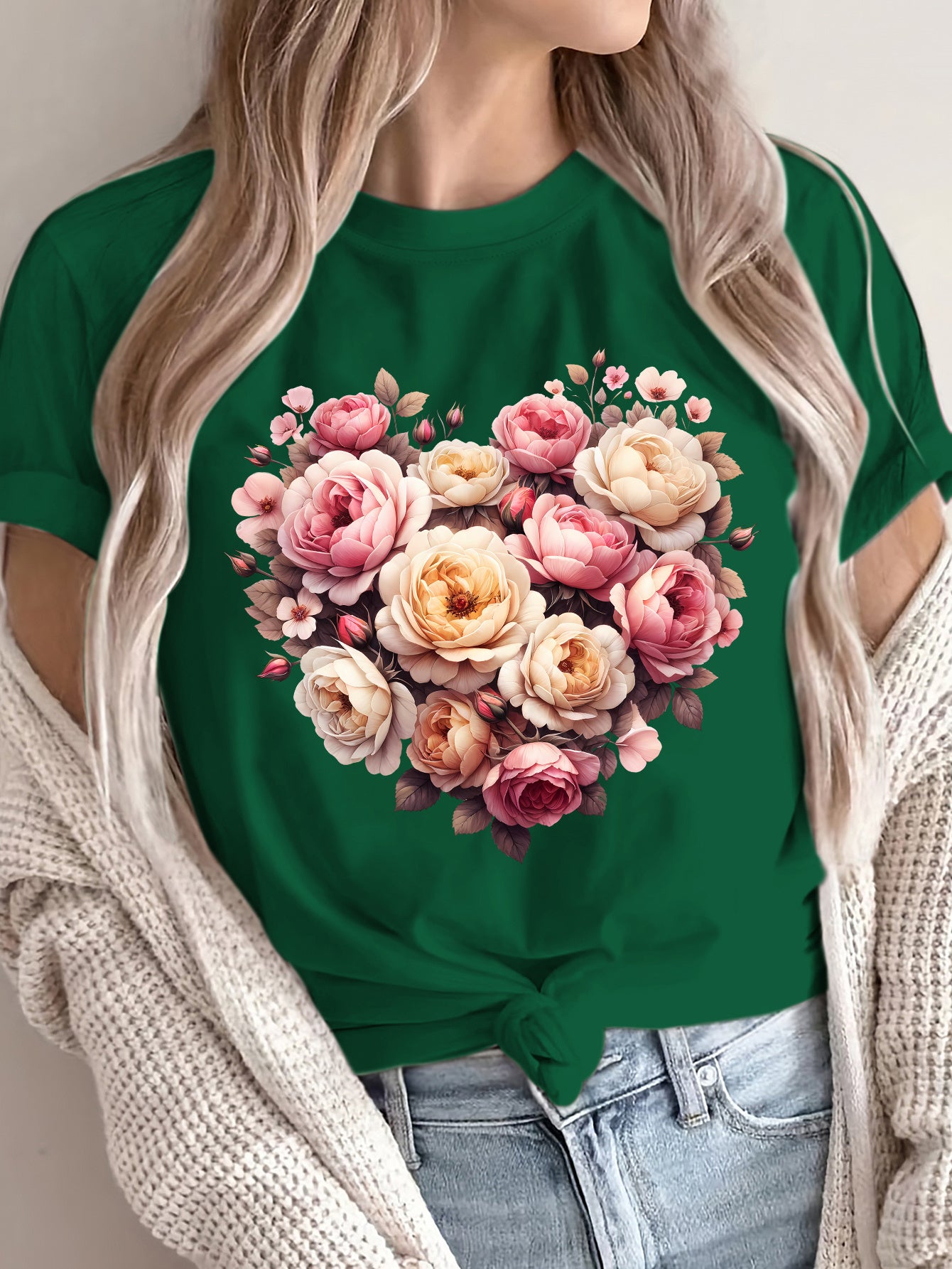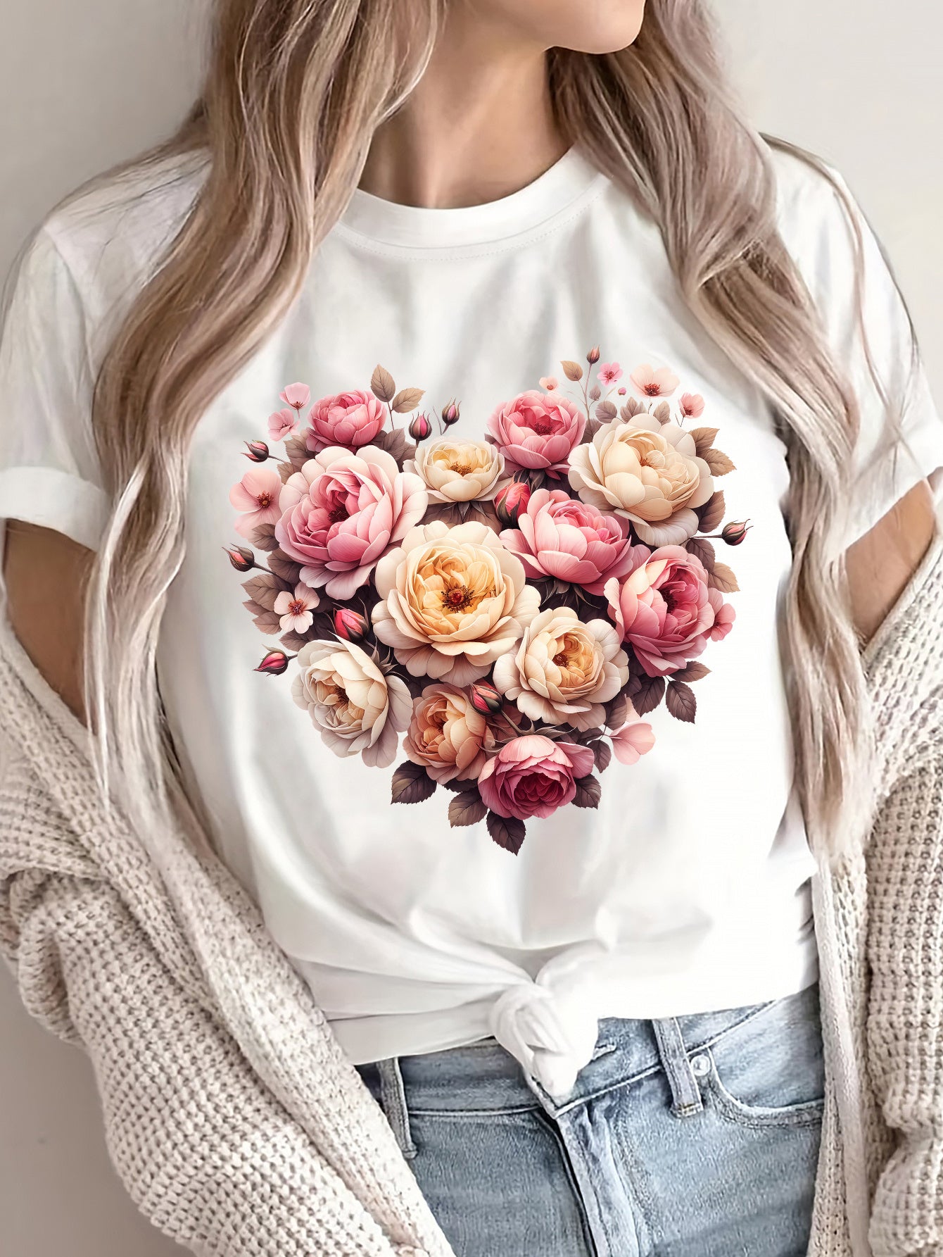 Ամառային կանացի կարճ թևքով, առջևի տպագիր շապիկ, հարմարավետ և շնչող գործվածք, առօրյա և սպորտային ոճ, հարմար է գարնանը և ամռանը