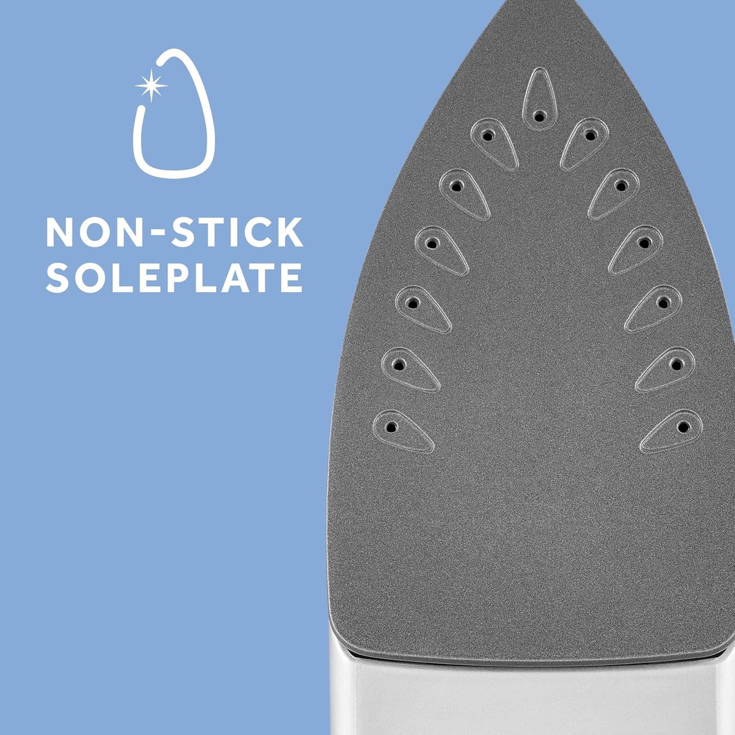 Sunbeam Compact 1200W Steam Iron հագուստի համար արդյունավետ է և հեշտ օգտագործման համար: Ներառում է հզոր SHOT OF STEAM® ֆունկցիան, որն ապահովում է գոլորշու լրացուցիչ պոռթկում, որը կօգնի հարթել համառ կնճիռները ինչպես հարթ մակերեսների վրա, այնպես էլ ուղղահայաց՝ հագուստները, պաստառագործությունը կամ վարագույրը կախելու համար: Ճշգրիտ ծայրը թույլ է տալիս ներս մտնել կոճակների, լապտերների և օձիքների միջև, իսկ 8 ֆուտ 360° պտտվող լարը ապահովում է շարժման ազատություն արդուկման ժամանակ: Երկարակյաց չկպչող ներբանի մակերեսը հեշտությամբ սահում է գործվածքների վրայով՝ արագ և արդյունավետ կերպով հարթելու կնճիռները և ձեր լավագույն տեսքը ապահովելու համար: