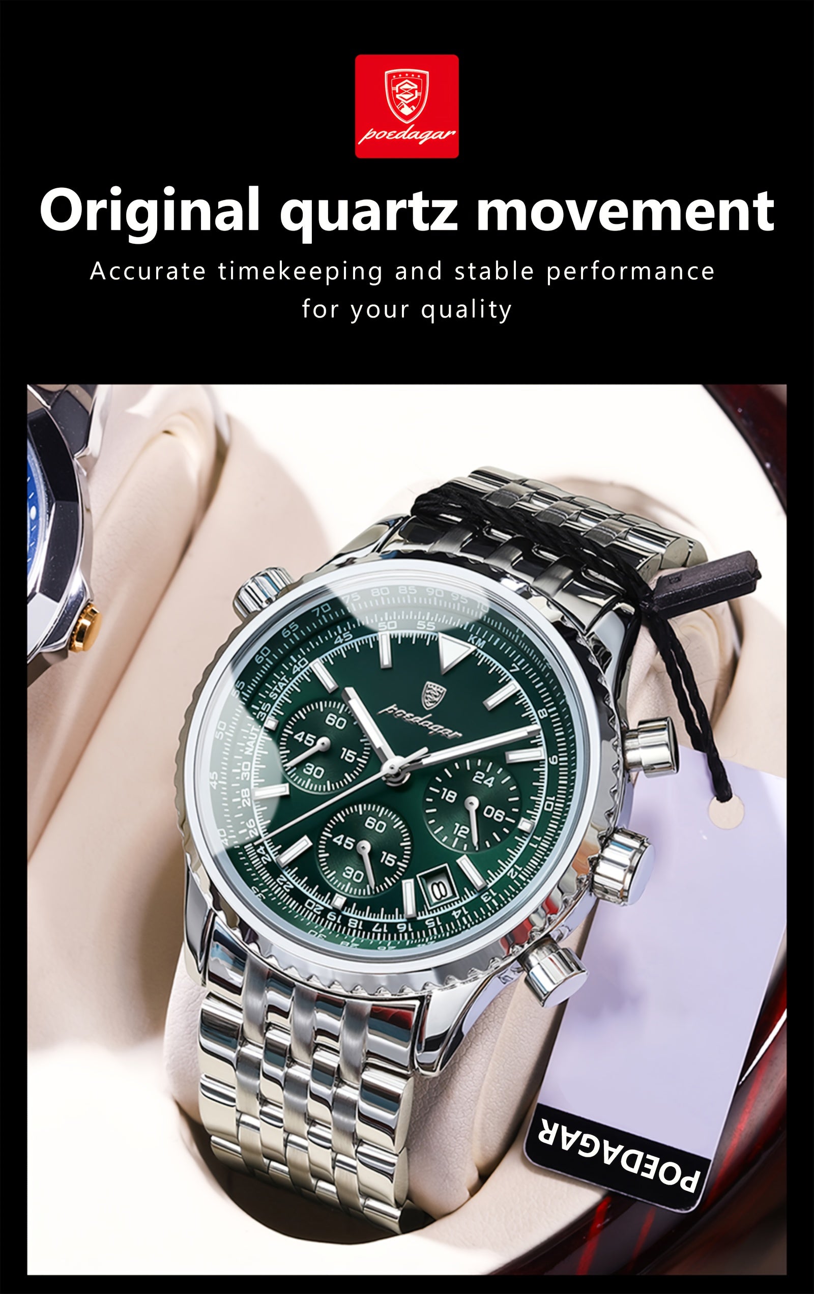 Baida-ի նոր 2024 թվականի ջրակայուն, լուսավոր օրացույցով, չժանգոտվող պողպատից քրոնոգրաֆ քվարցային ժամացույցը տղամարդկանց համար նախատեսված բարձրակարգ, հզոր և նորաձև քվարցային ձեռքի ժամացույց է։