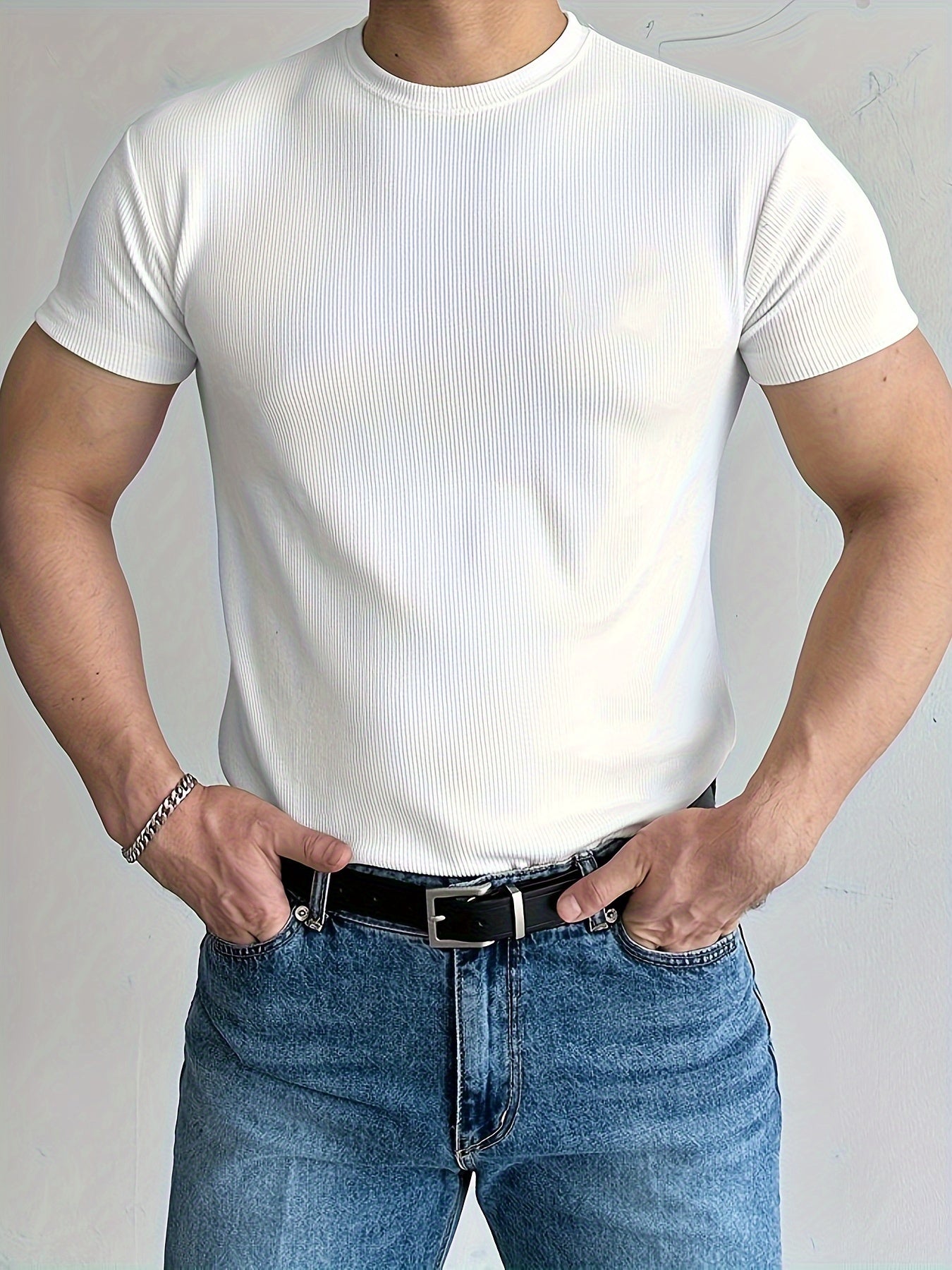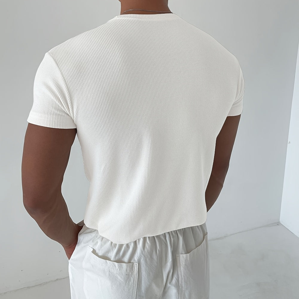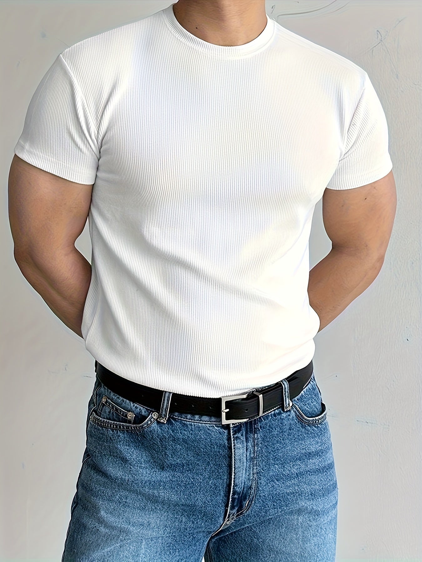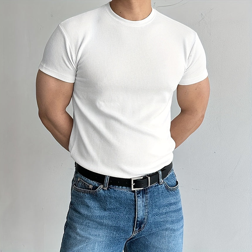 Թելերով մկաններ ցուցադրող ամառային ֆիթնես հագուստ Էլաստիկ շնչող սպորտային շապիկ Սպորտային վազքի մարզում Ֆիթնես կարճ թեւ