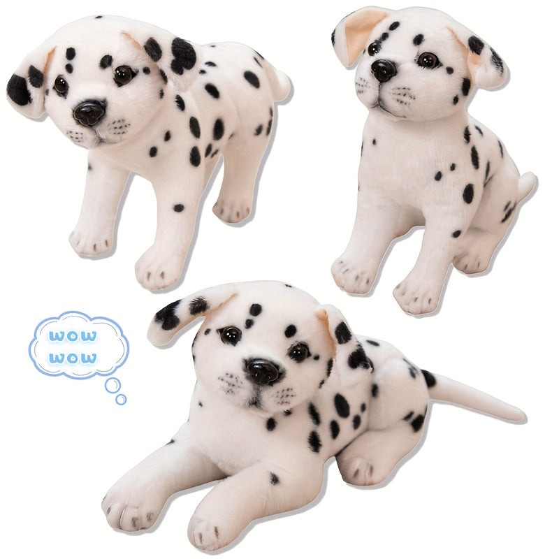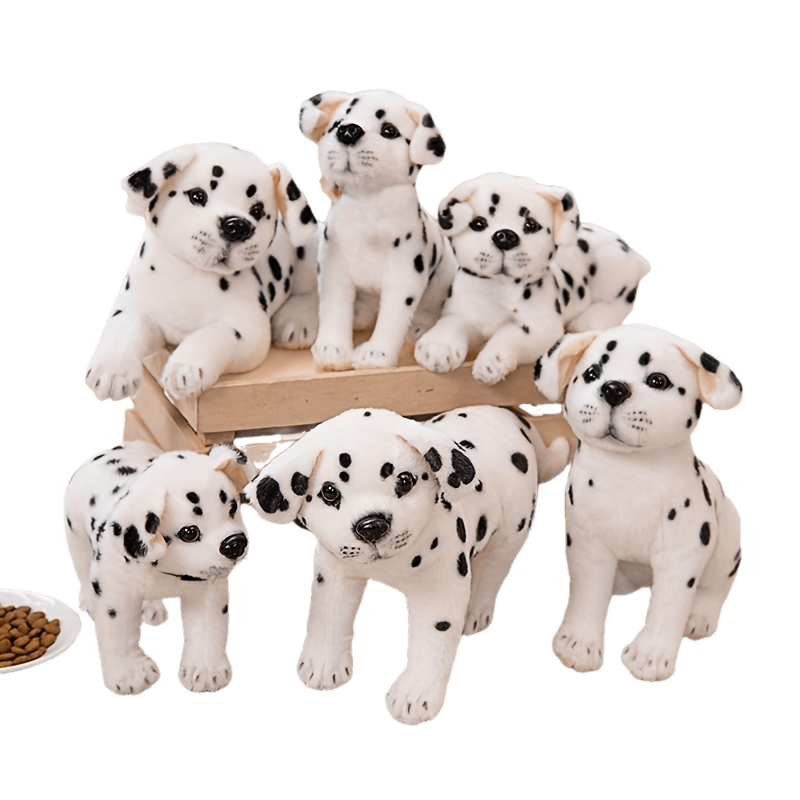 Երեք սիրուն խայտաբղետ շնիկների տեսքով փափուկ խաղալիքներ, ստեղծագործաբար ձևավորված որպես փափուկ խաղալիքներ, կատարյալ են տան և սենյակի ձևավորման համար, իդեալական են որպես նվեր ընտանեկան տոների կամ ընկերների ծննդյան օրերի համար։