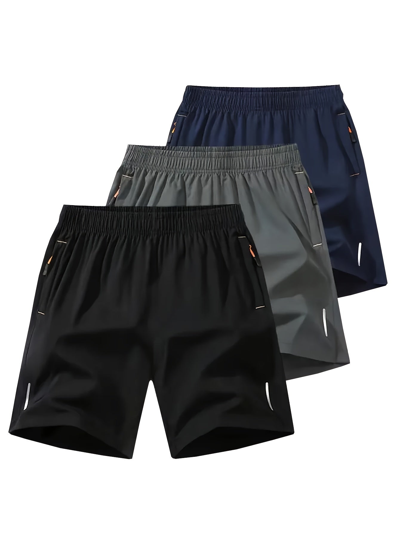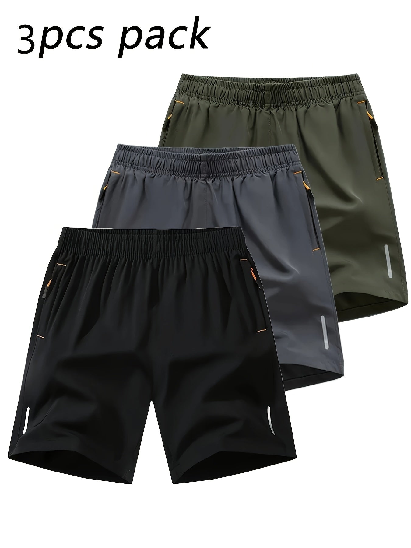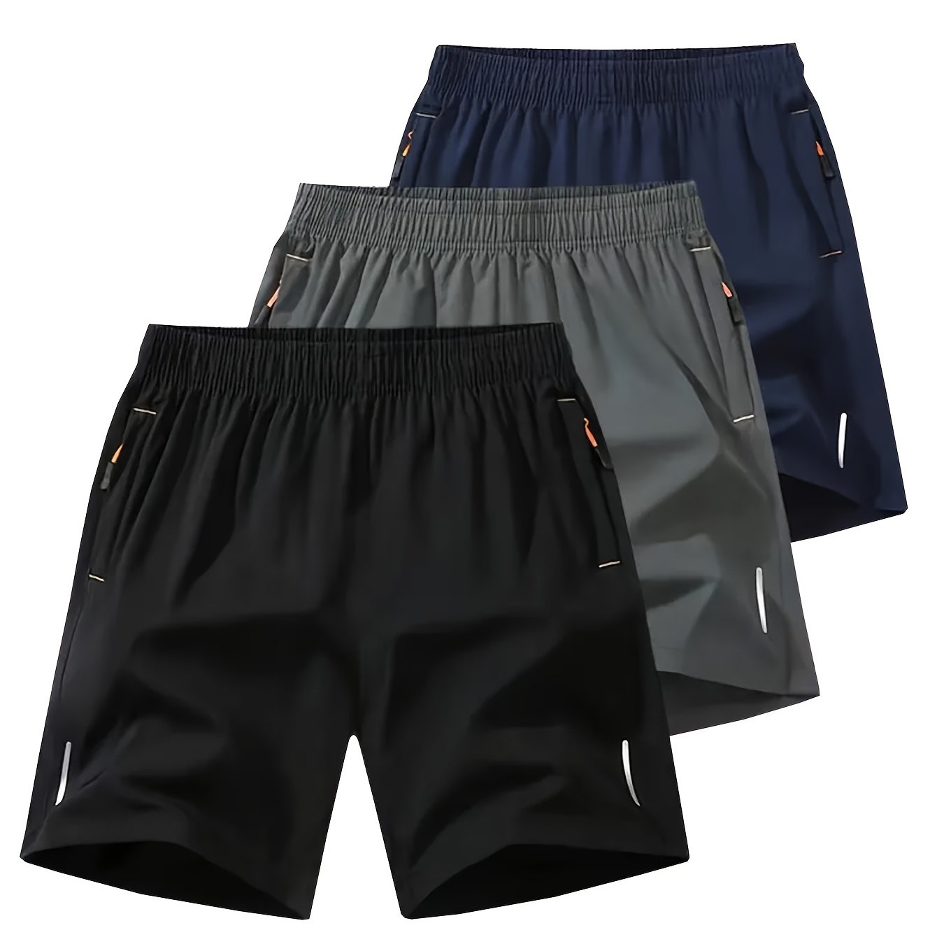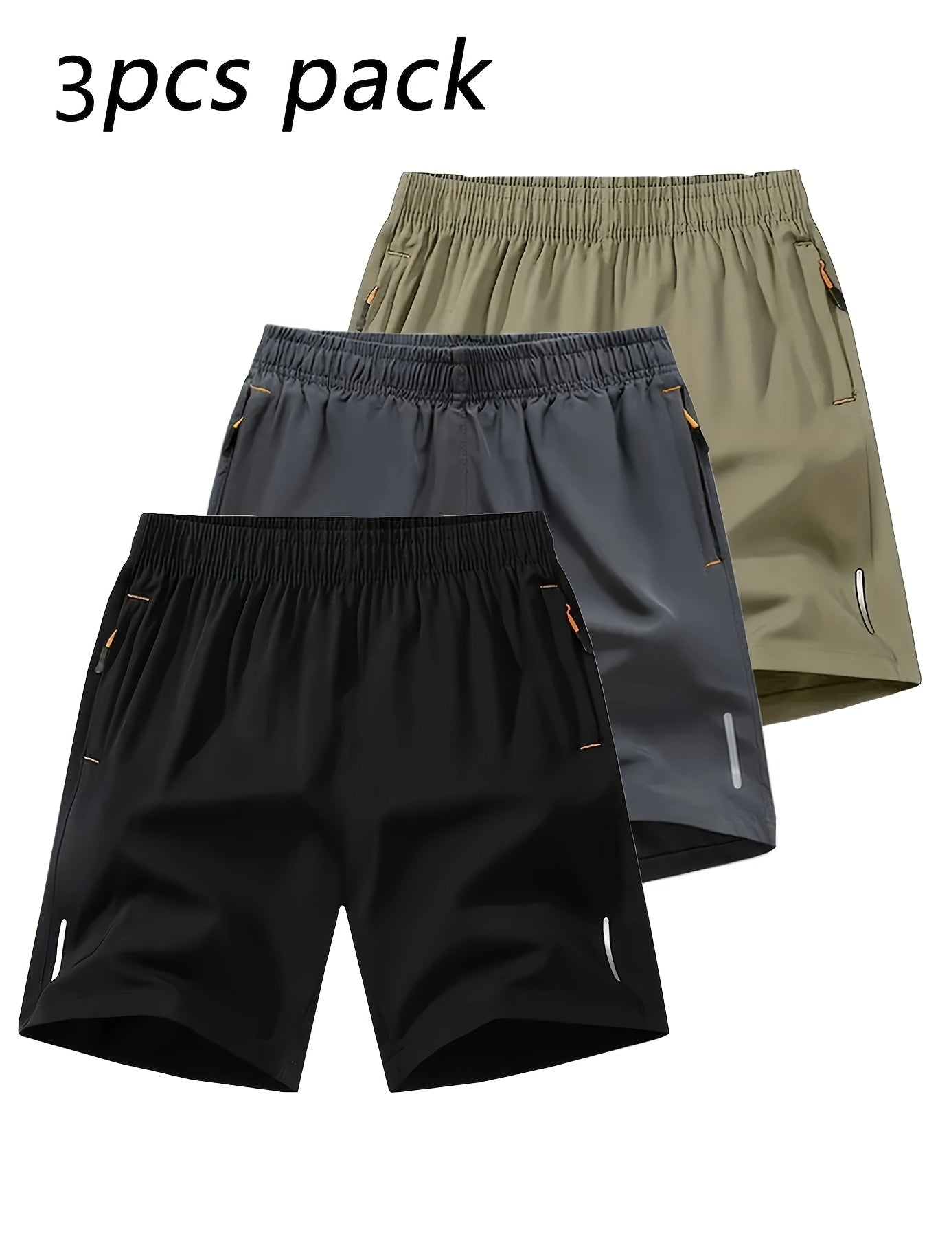 Տղամարդու առօրյա և նորաձև արագ չորացող շորտեր՝ երեք փաթեթով, կայծակաճարմանդ գրպաններով և պարանով, հարմար է բացօթյա սպորտի համար