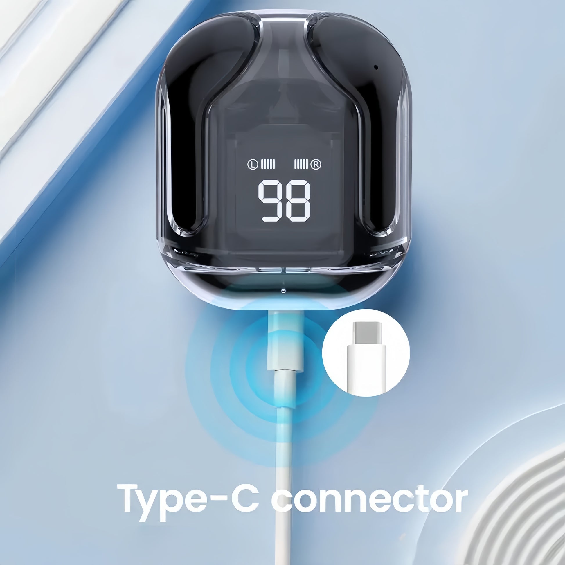 Թափանցիկ TWS անլար ականջակալներ՝ թվային էկրանով, անլար 5.3, Type-C լիցքավորում, աղմուկի չեղարկում, էրգոնոմիկ դիզայն, սև/սպիտակ, կատարյալ նվեր ժամանակակից աուդիոֆիլների համար