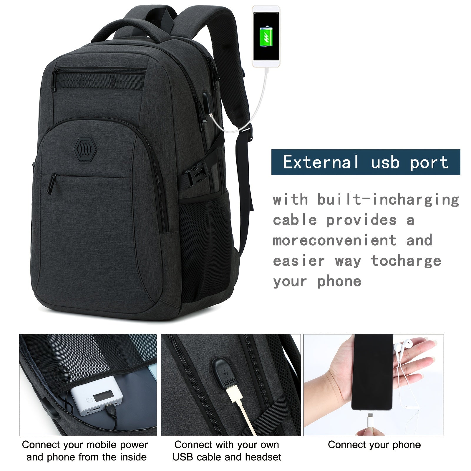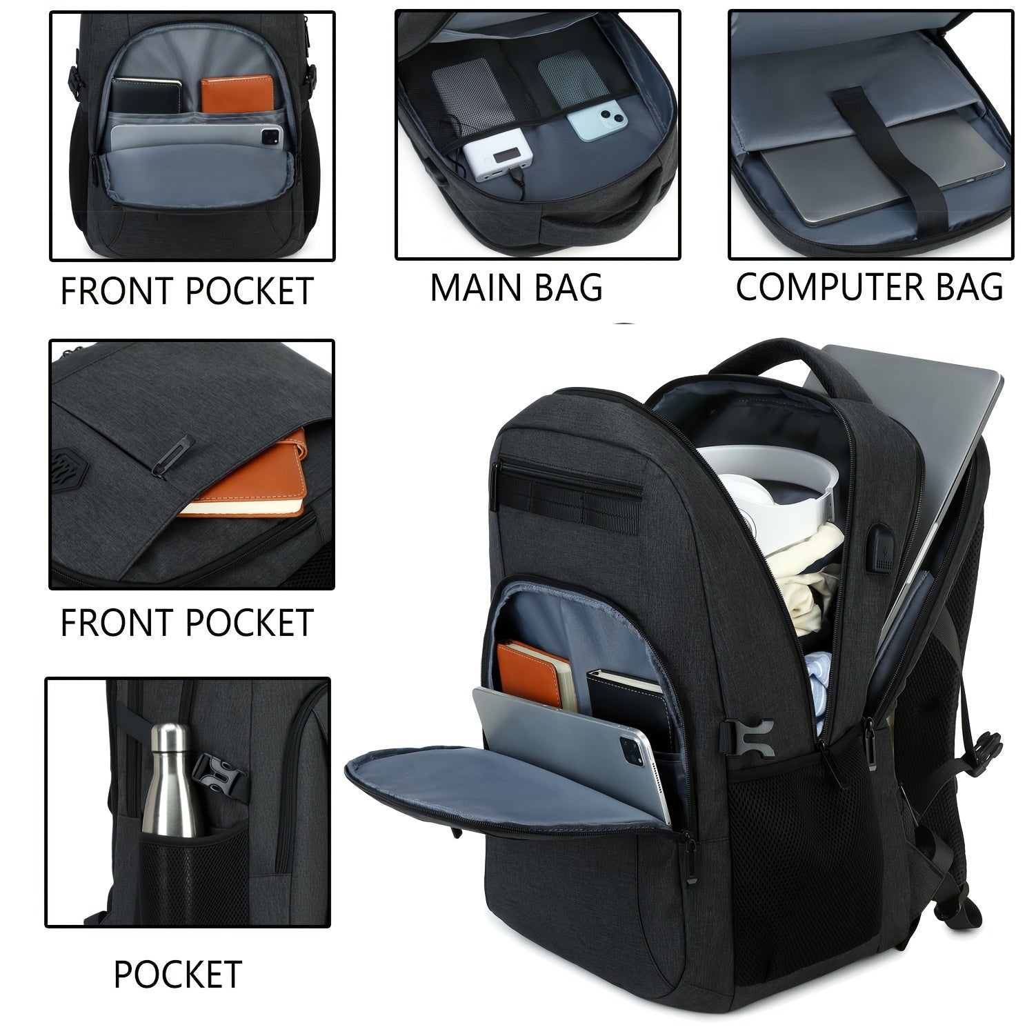 Ճանապարհորդական նոութբուքի մեջքի պայուսակ, բիզնեսի համար բարակ, դիմացկուն նոութբուքի մեջքի պայուսակ USB լիցքավորման միացքով և սայլակի պատյանով, տղամարդկանց և կանանց քոլեջի ավագ դպրոցի նոութբուքի պայուսակ 15.6 դյույմանոց նոութբուքի համար