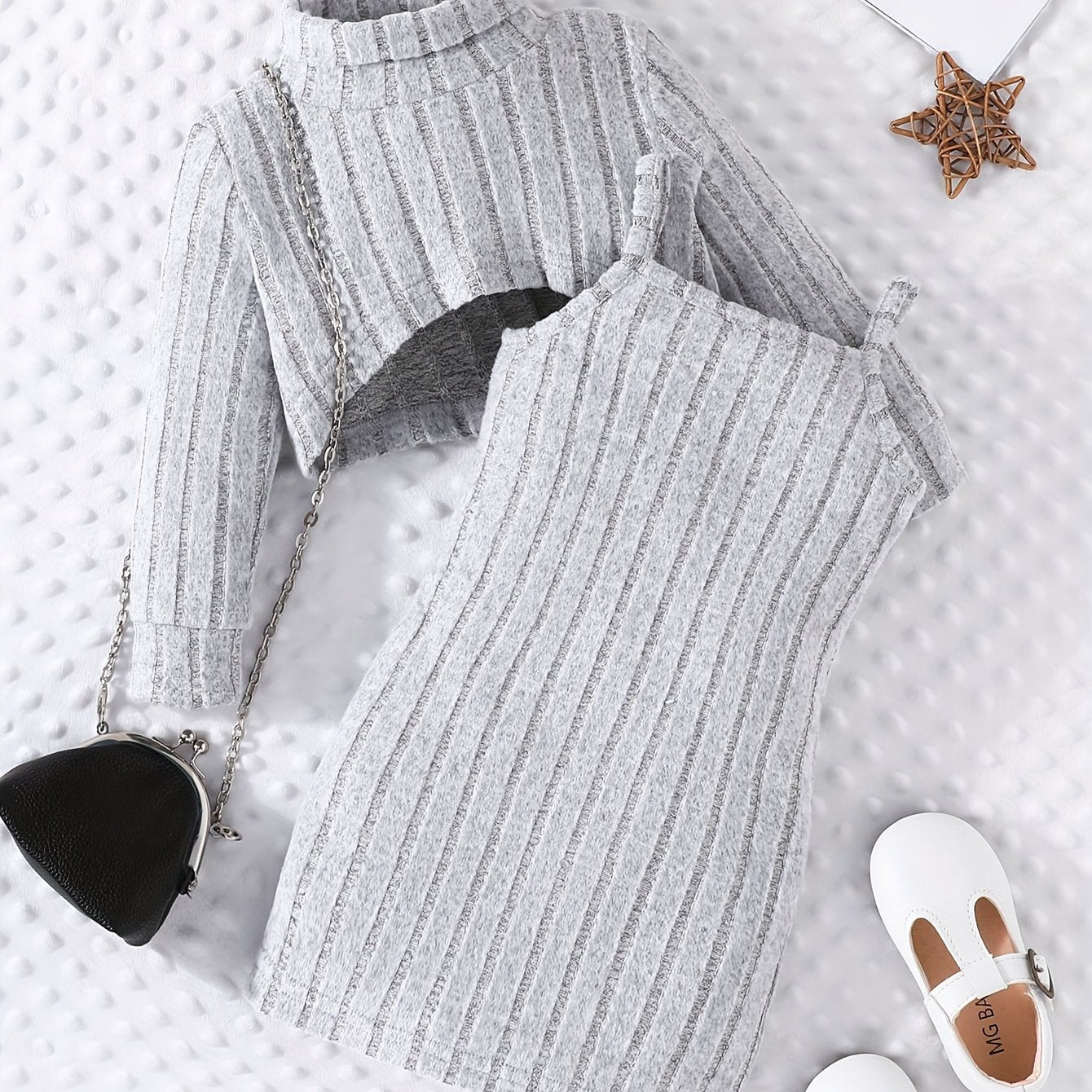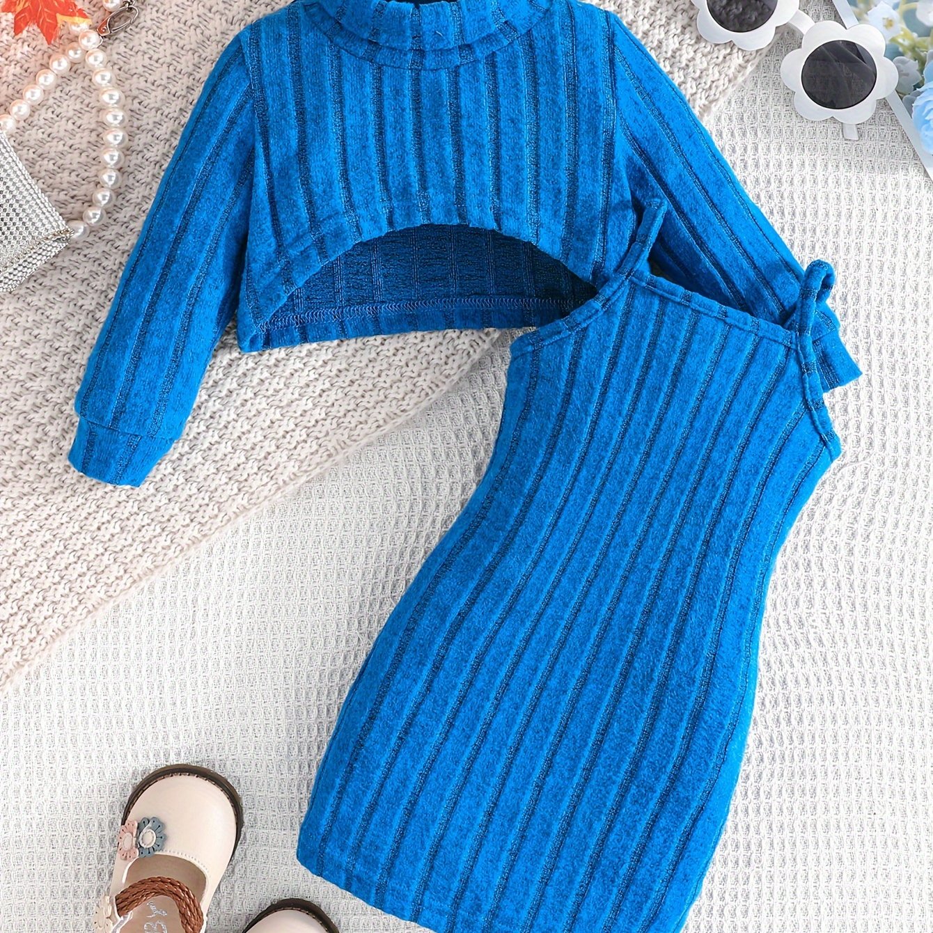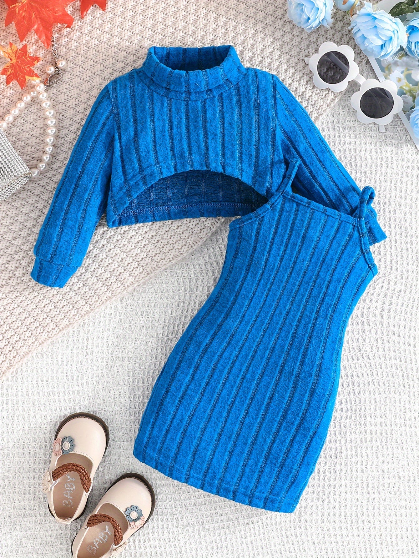 Երկկտորանոց հավաքածու Նորածին մանկական աղջիկ պատահական նորաձևություն Cute Lady Նոր նորաձև բարակ միաձույլ գույնի միջին պարանոցի երկարաթև կարճ վերև կախովի կիսաշրջազգեստի համակցված հավաքածու դրսում