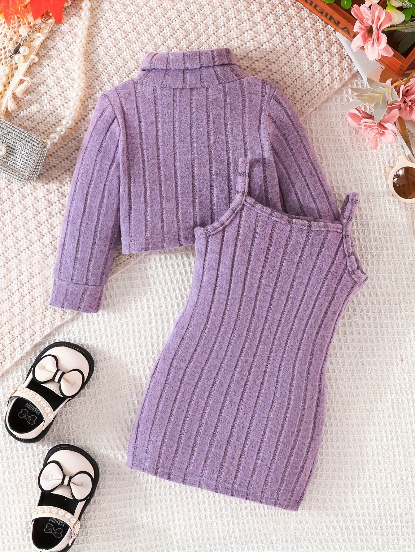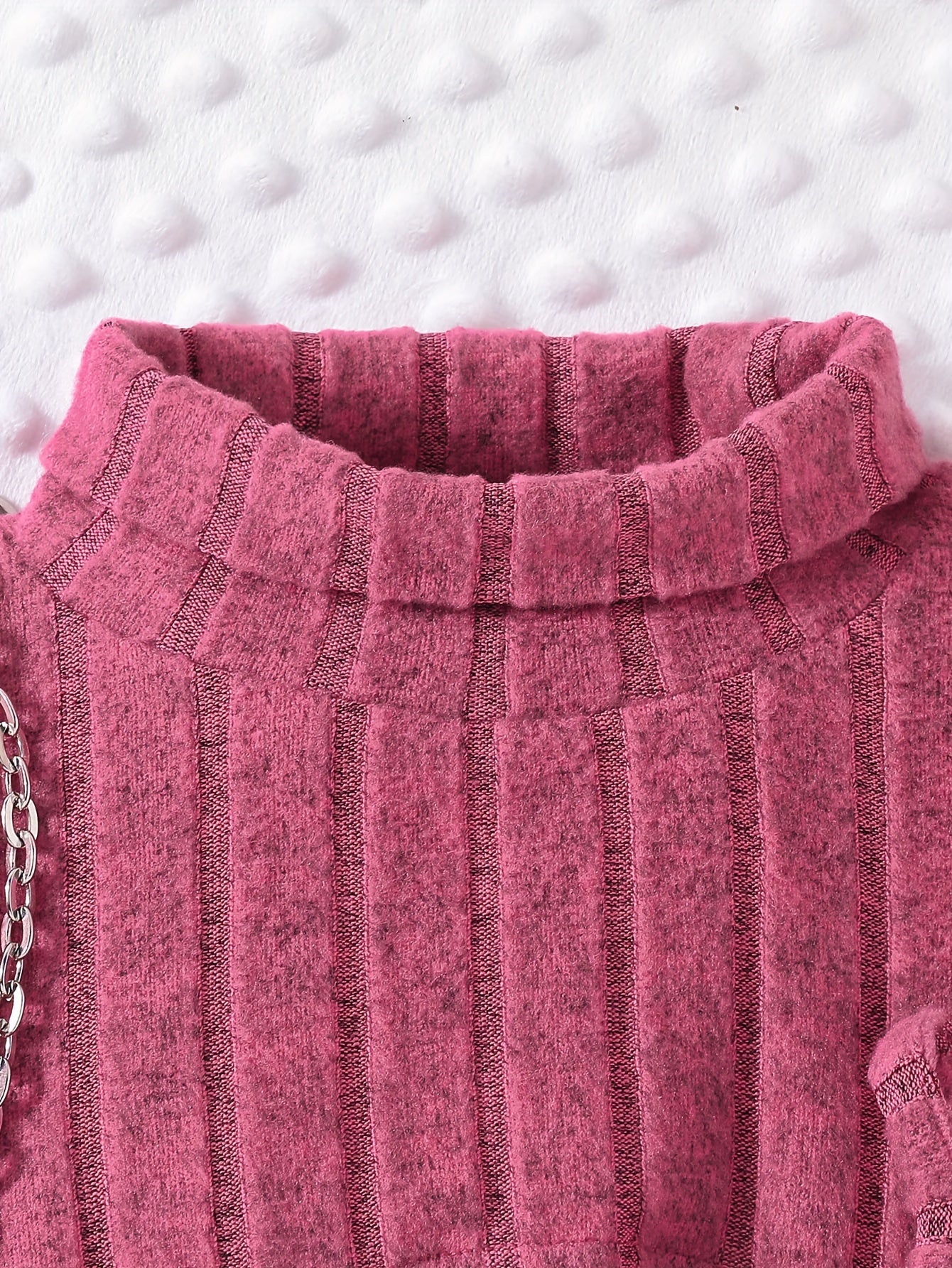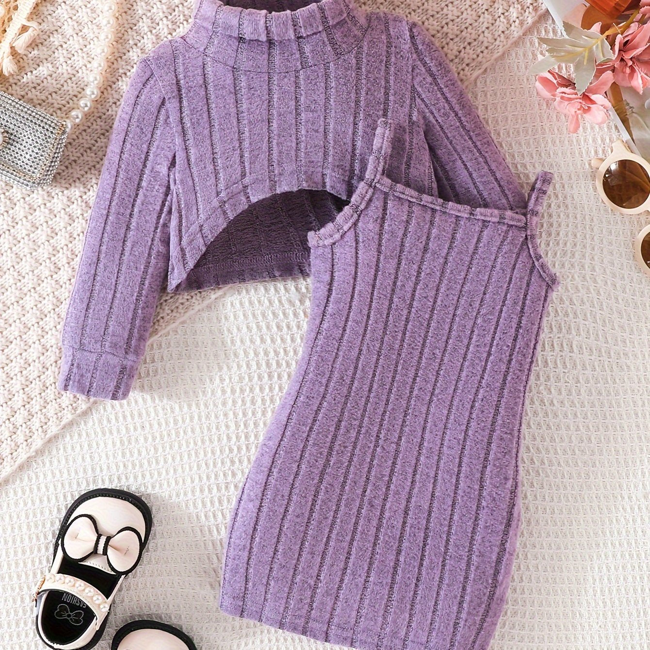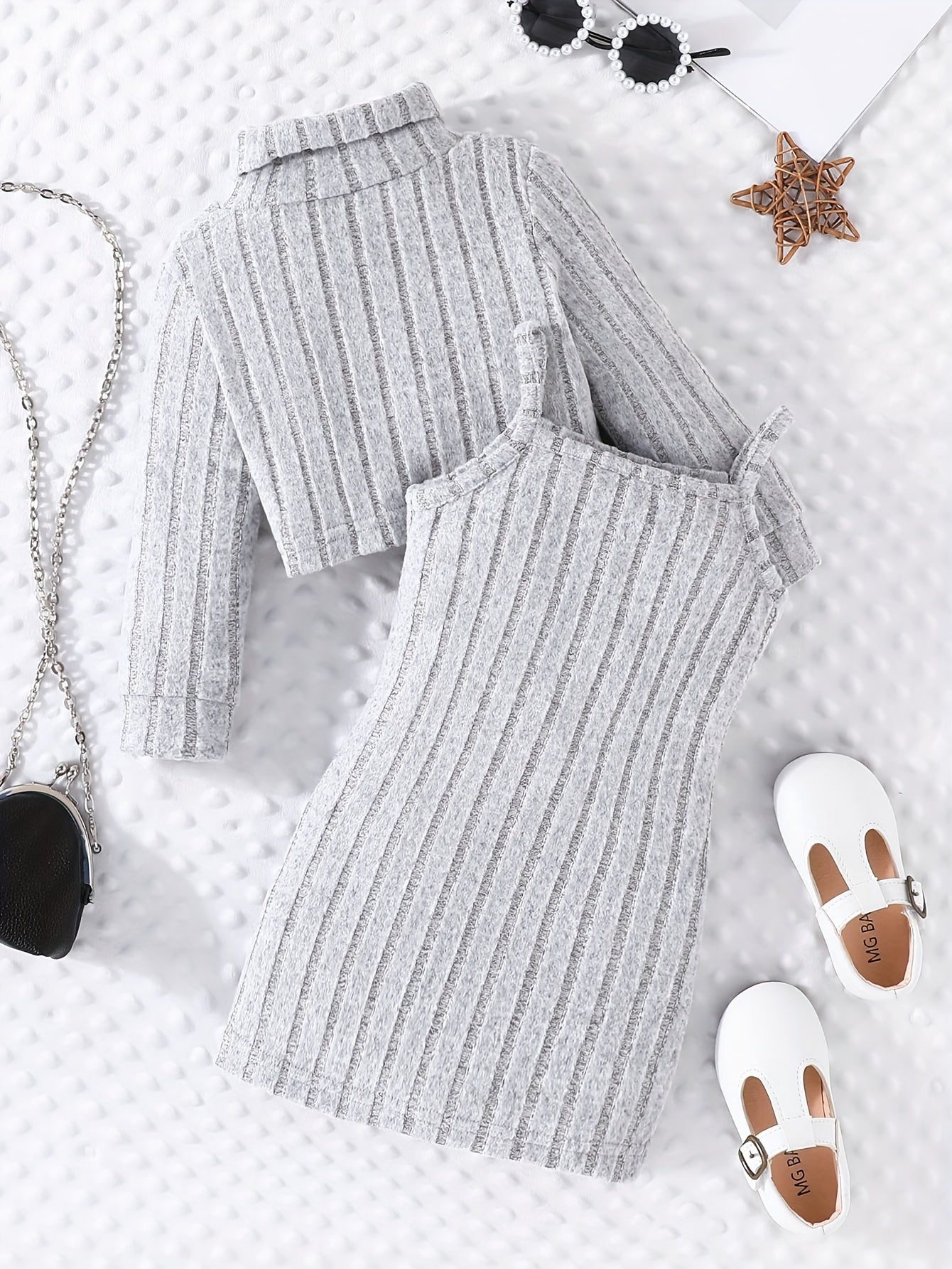Երկկտորանոց հավաքածու Նորածին մանկական աղջիկ պատահական նորաձևություն Cute Lady Նոր նորաձև բարակ միաձույլ գույնի միջին պարանոցի երկարաթև կարճ վերև կախովի կիսաշրջազգեստի համակցված հավաքածու դրսում