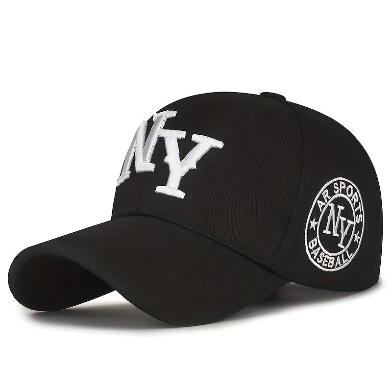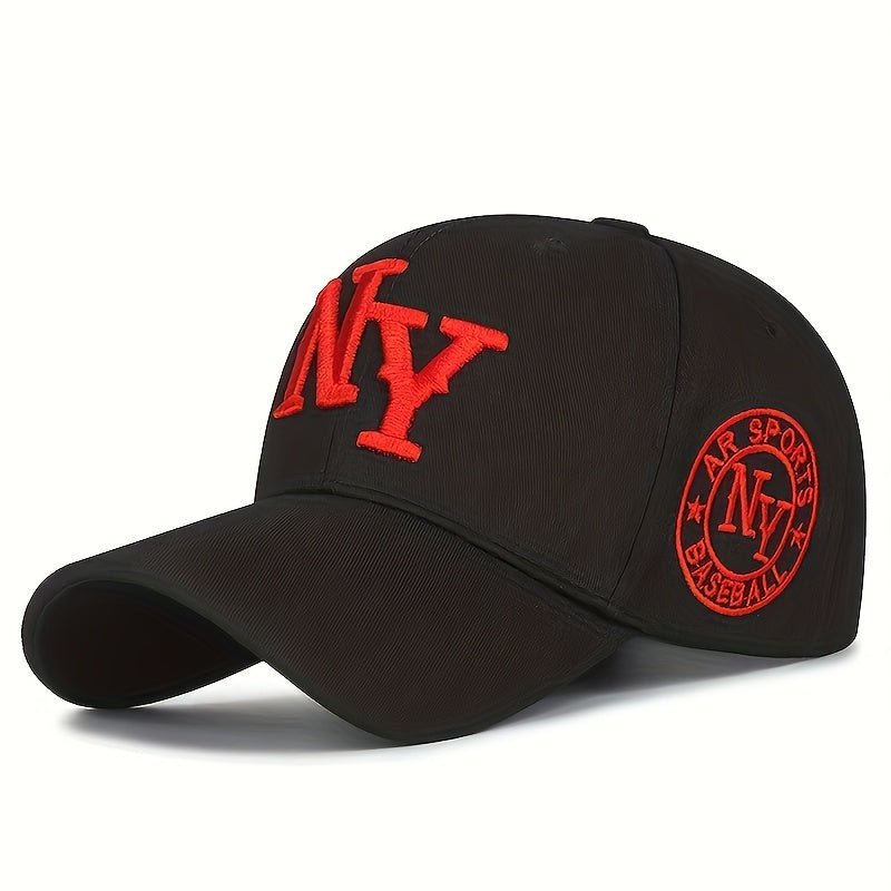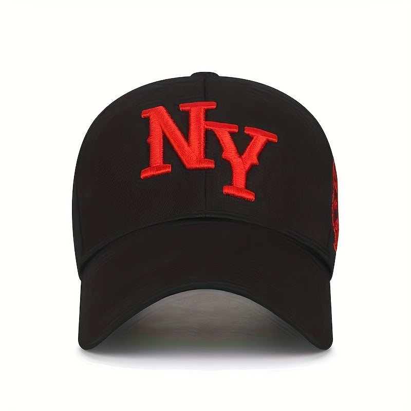 Ունիսեքս նորաձև, առօրյա, ասեղնագործված Նյու Յորքի լոգոտիպով բեյսբոլի գլխարկ - կարգավորվող, հիփ-հոփ ոճի, սև և սպիտակ, սև՝ կարմիր շեշտադրումներով, հասանելի է երկու գույներով, իդեալական է մարզումների, վազքի, երեկույթների, գոլֆի և լողափնյա զբոսանքների համար։