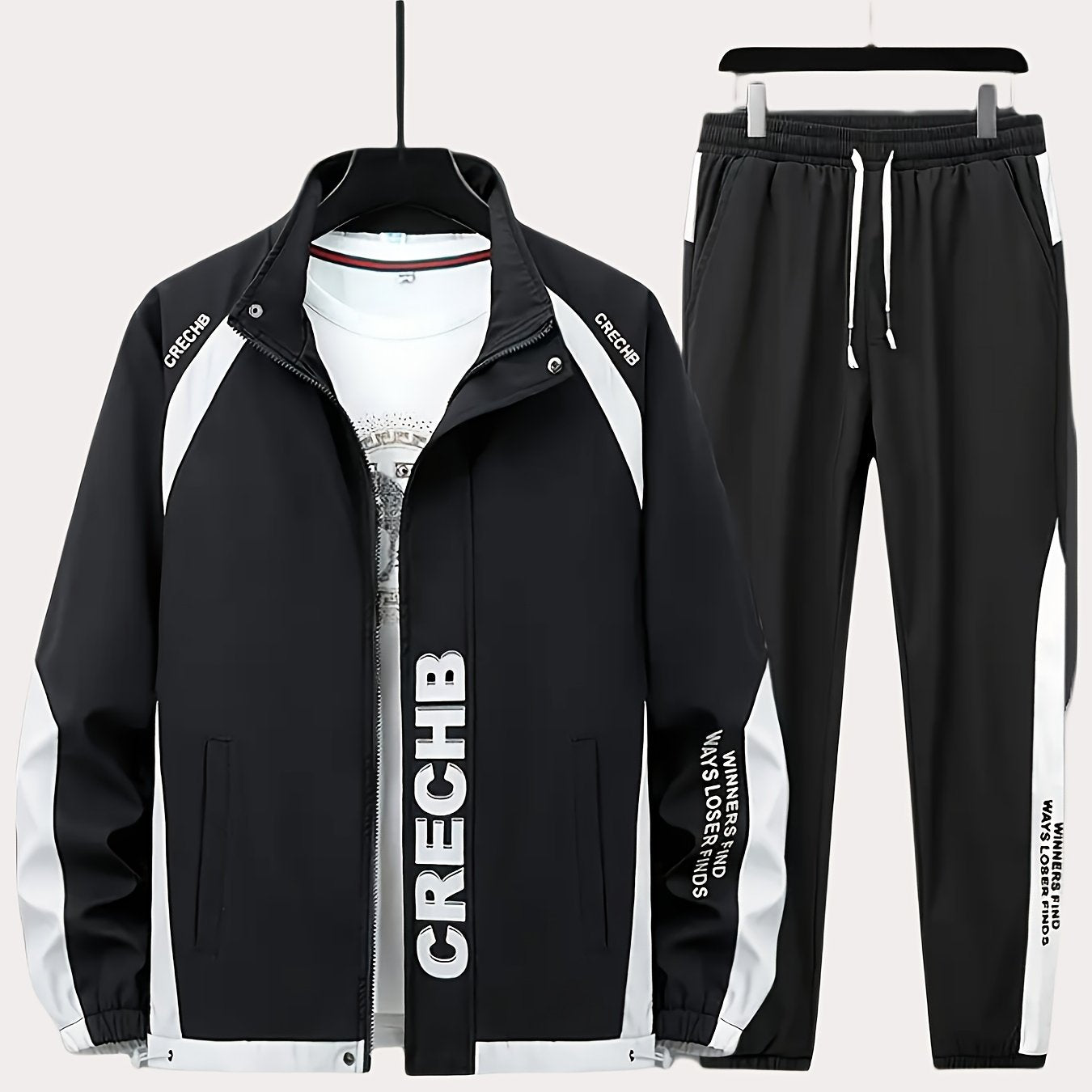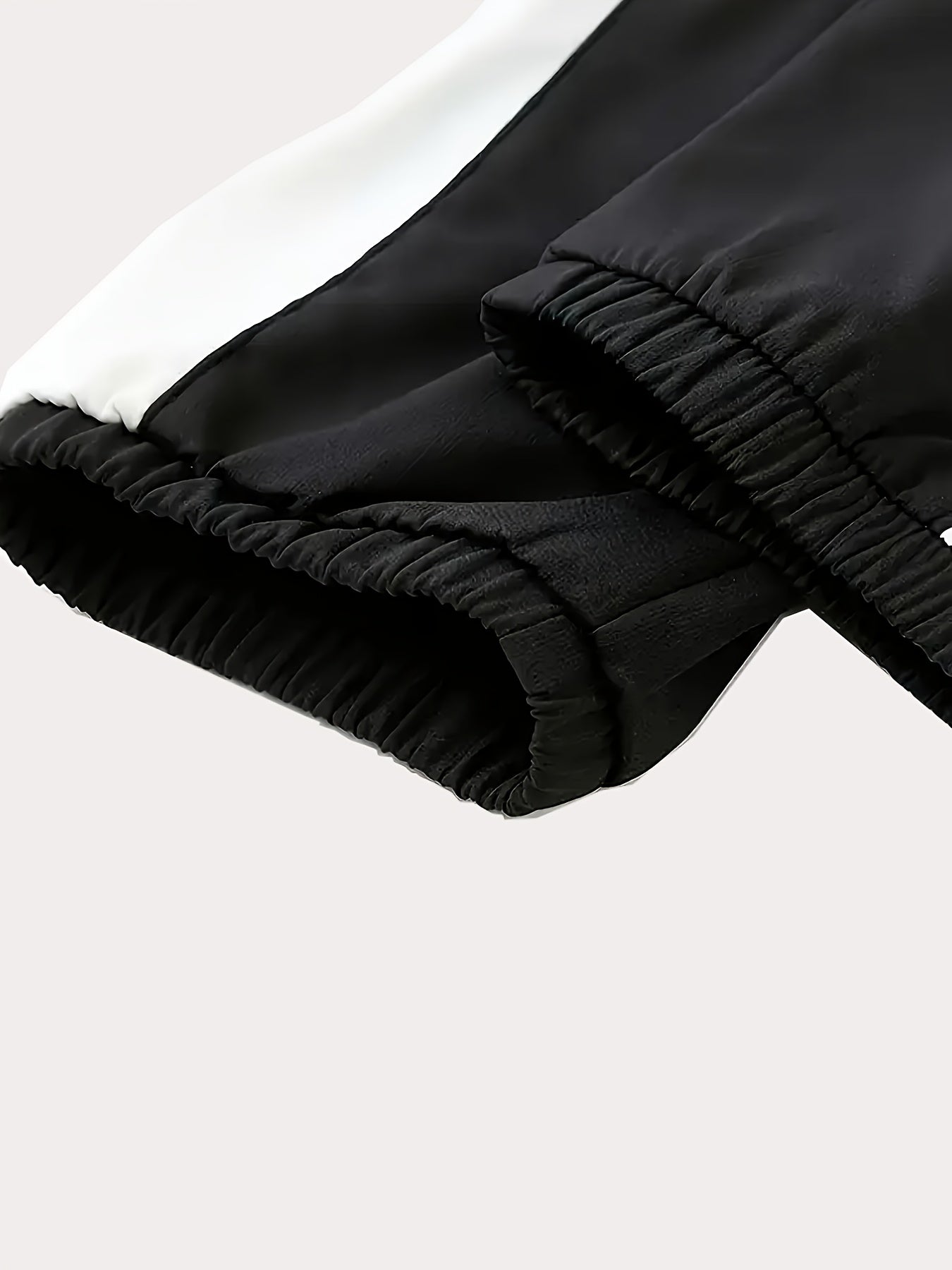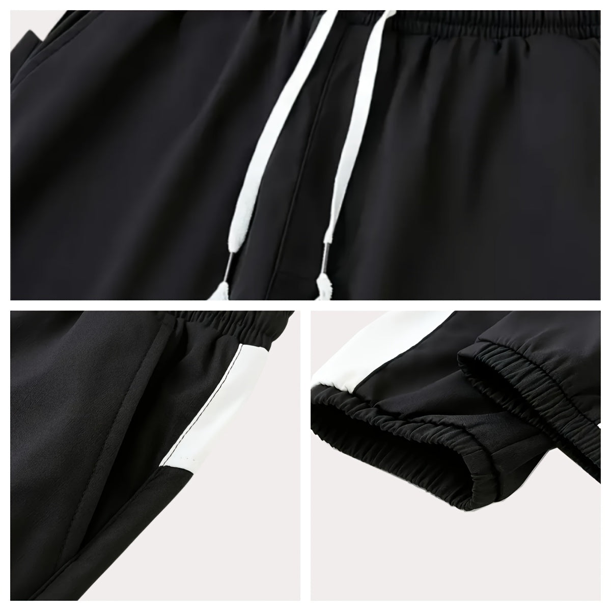 Unisex Sportswear Set for Spring And Autumn, Featuring a Zip-Up Jacket with a Stand Collar And Striped Long Pants in Black And White, a Stylish Outfit That Makes a Great Gift, Sweat-Resistant, Hand Wash Only, Workout Accessor