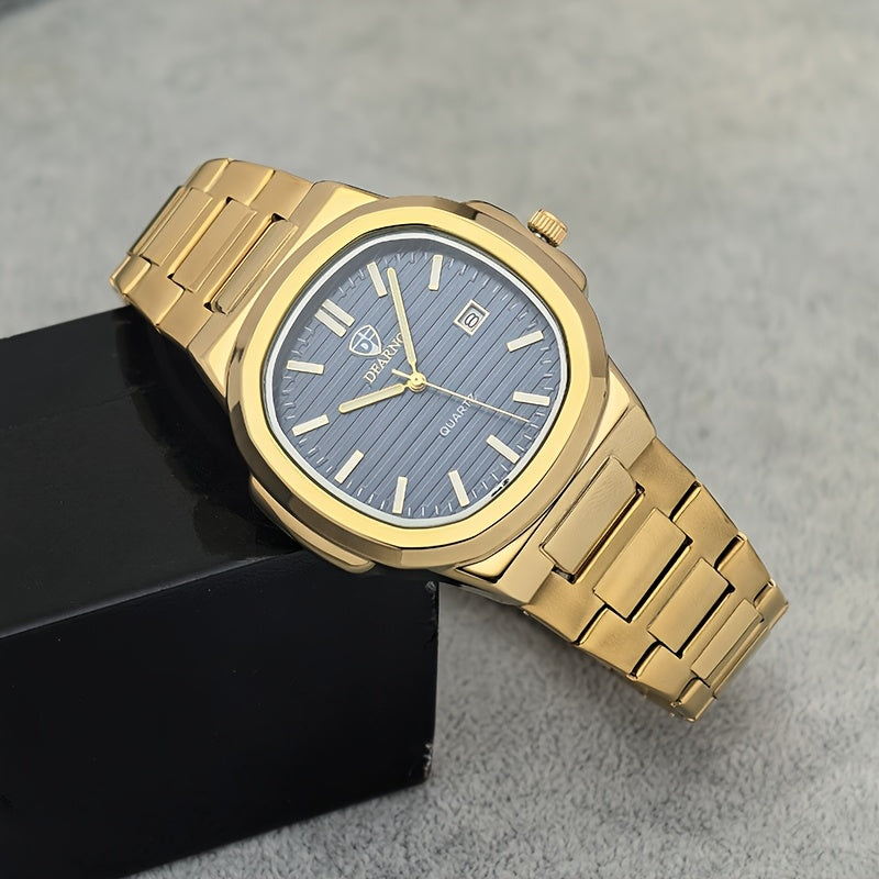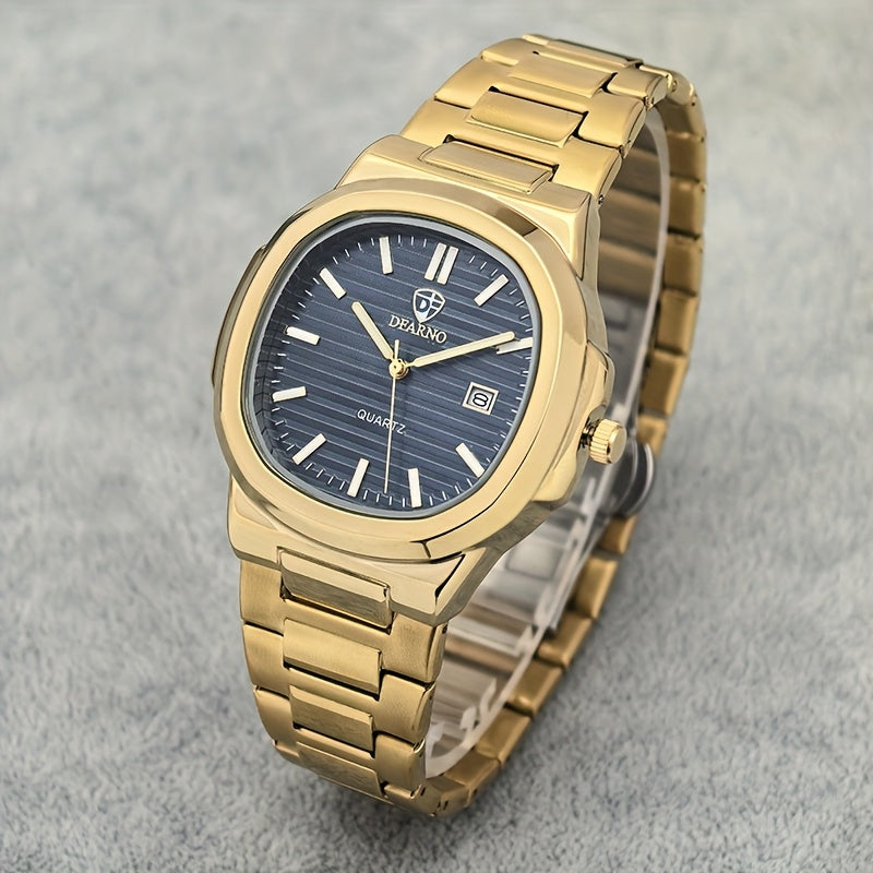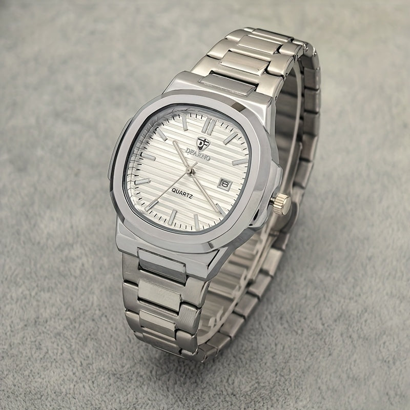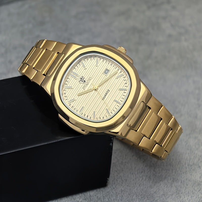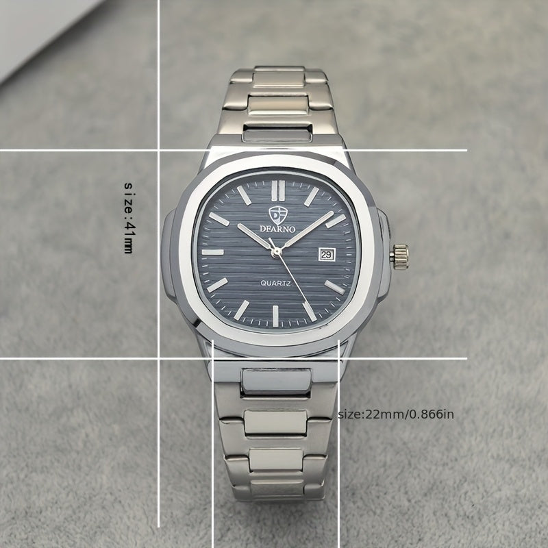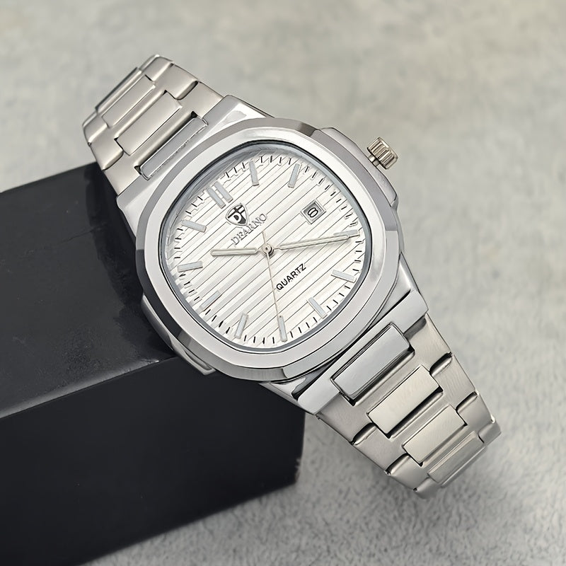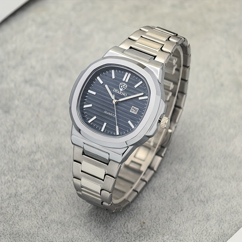 Վինտաժ տղամարդու քվարցային ժամացույց - դասական գործնական ոճի՝ լուսավոր սլաքներով, օրացույցի գործառույթով, չժանգոտվող պողպատե ժապավենով և համաձուլվածքային պատյանով, ամսաթվի ցուցադրմամբ - իդեալական է ինչպես պաշտոնական, այնպես էլ առօրյա հագուստի համար