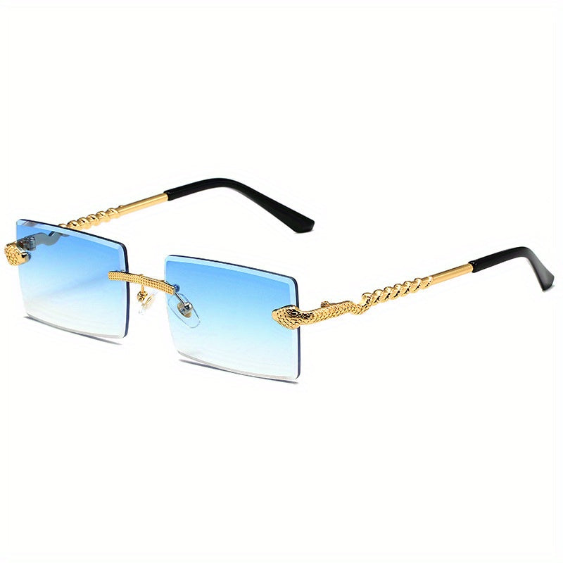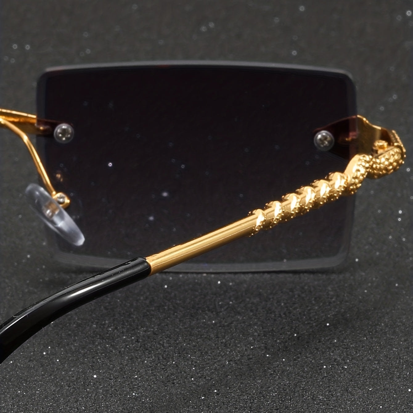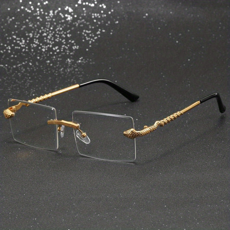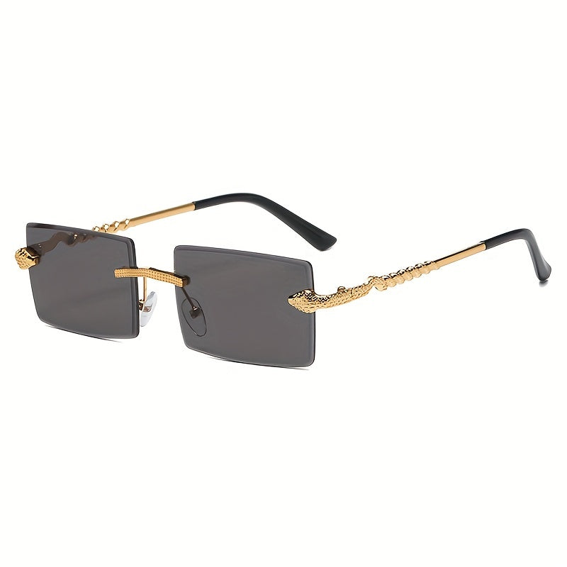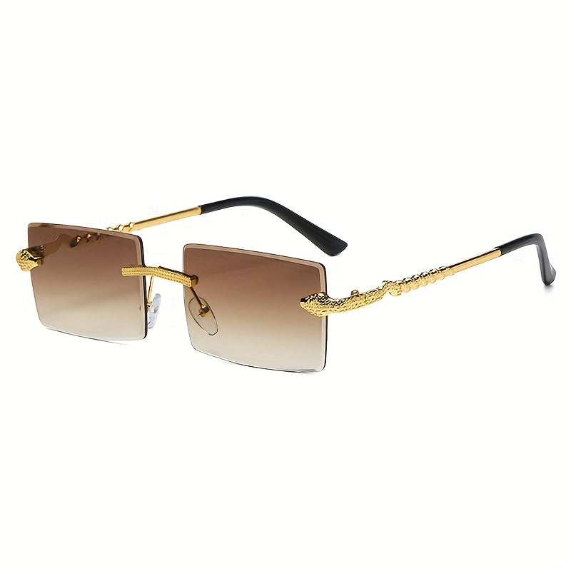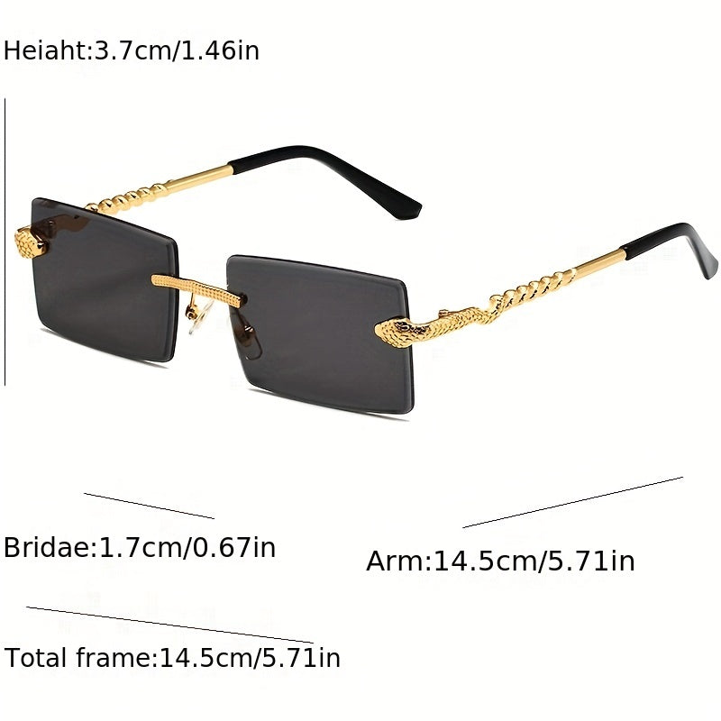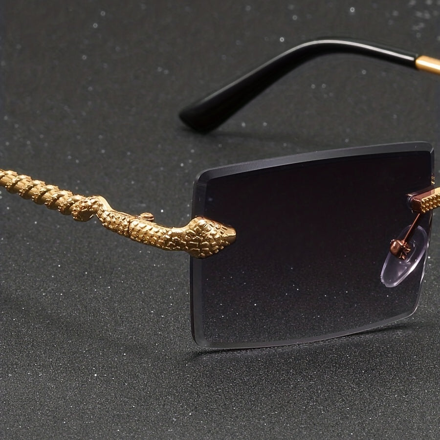 Վինտաժ ոճի քառակուսի շրջանակազուրկ ակնոցներ՝ օձի նախշով, ցինկի համաձուլվածքից պատրաստված շրջանակով, սև լինզաներով, ENSARJOE
