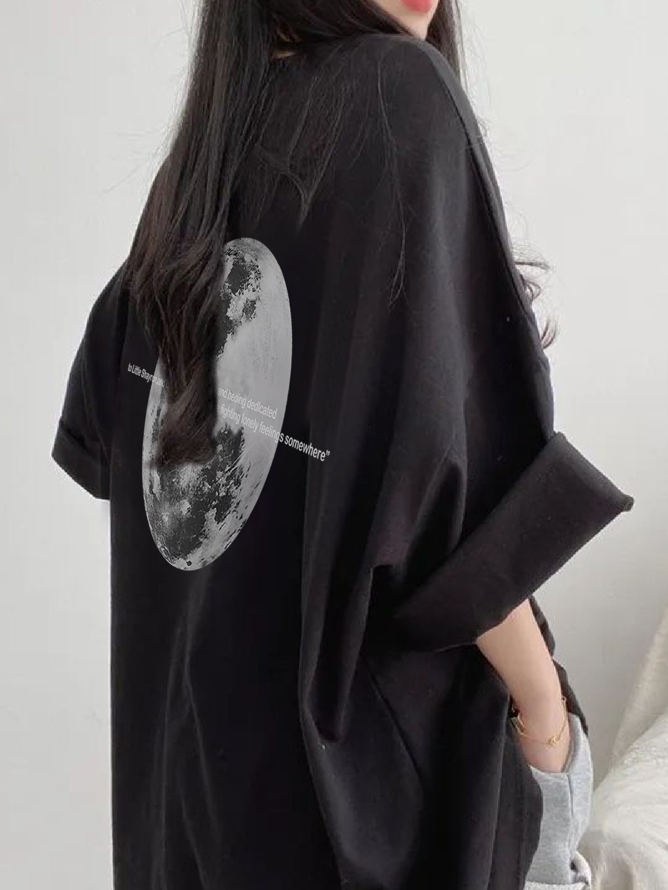 Վինտաժ ոճի կանացի վերնաշապիկ, 100% պոլիեսթեր տրիկոտաժե գործվածք, այբուբենային լուսնային տպագիր, գարուն/ամառ կարճ թևով կարճ թև