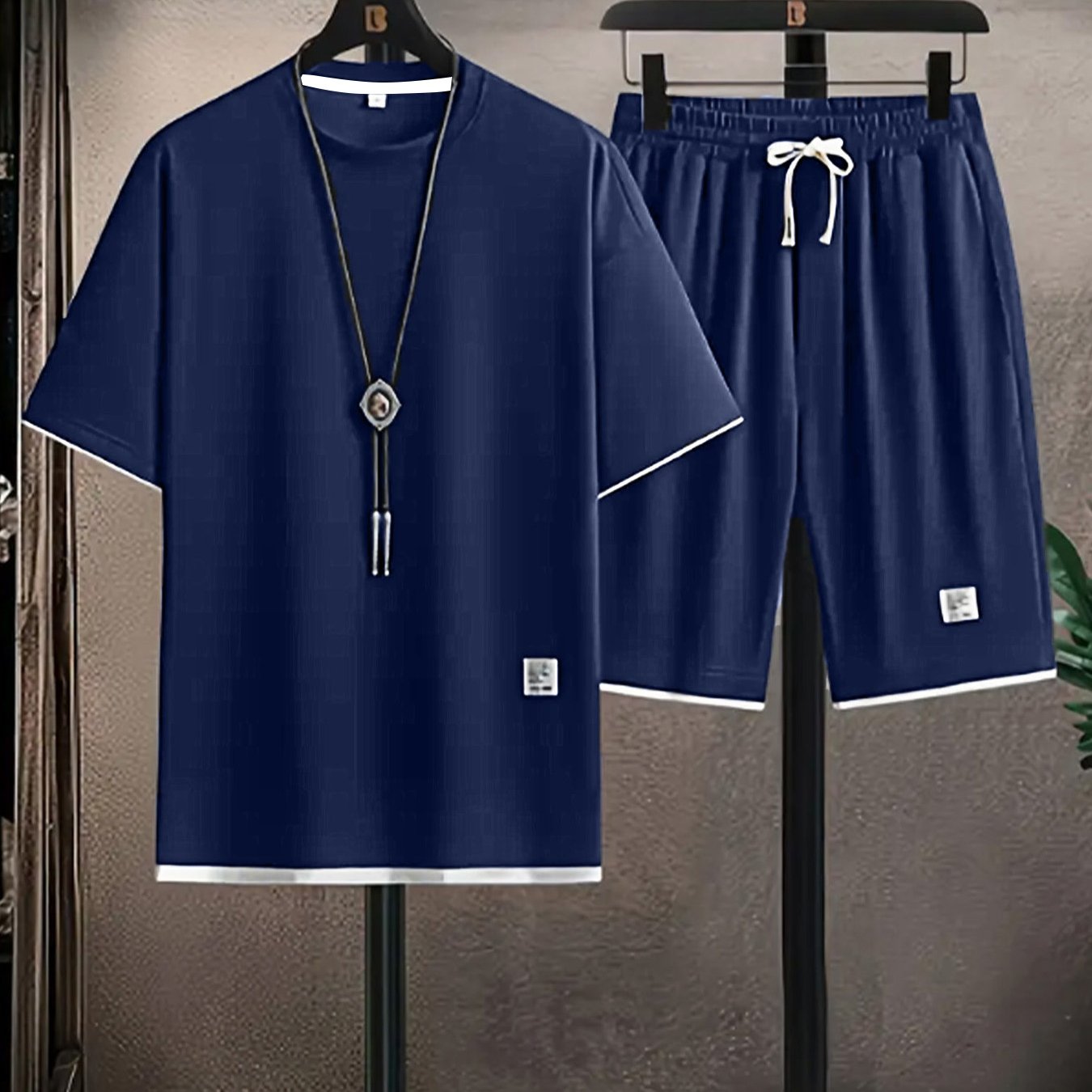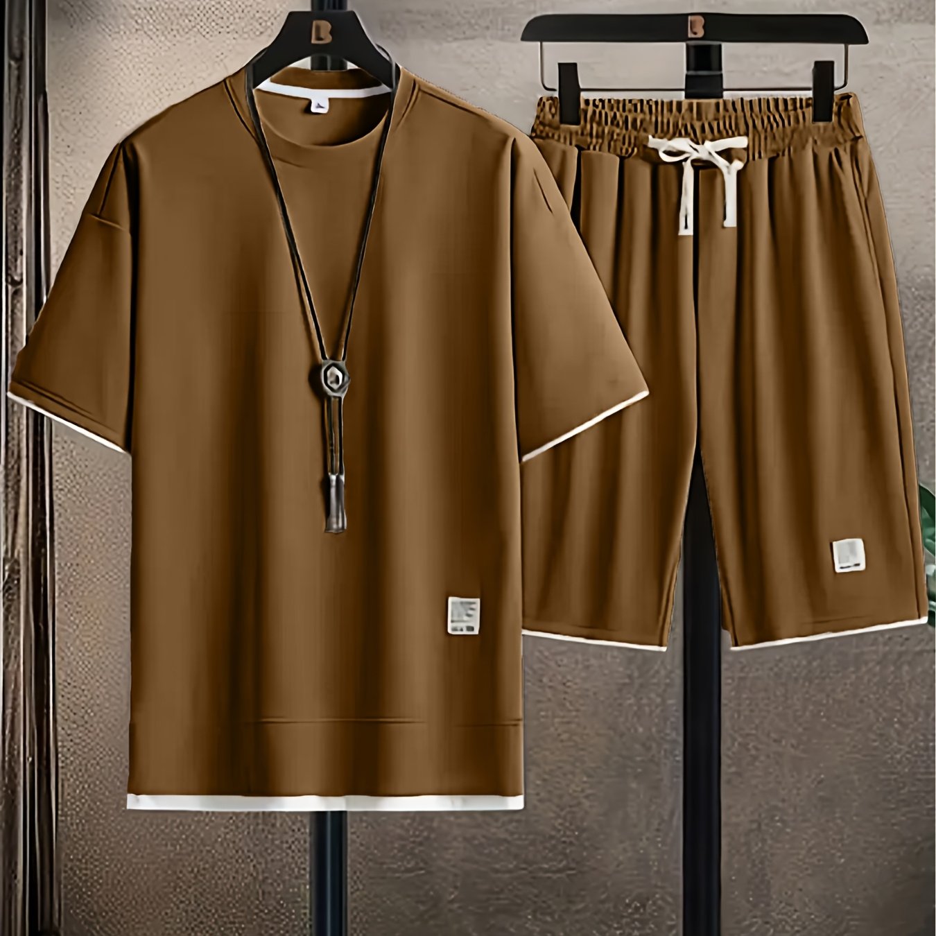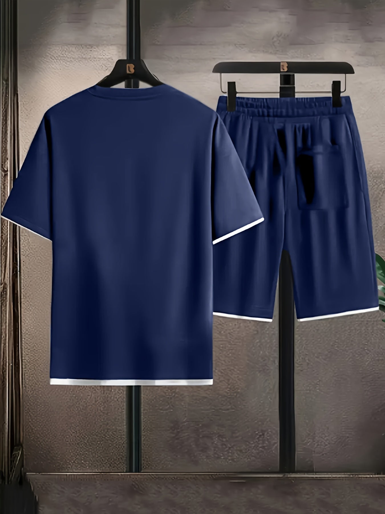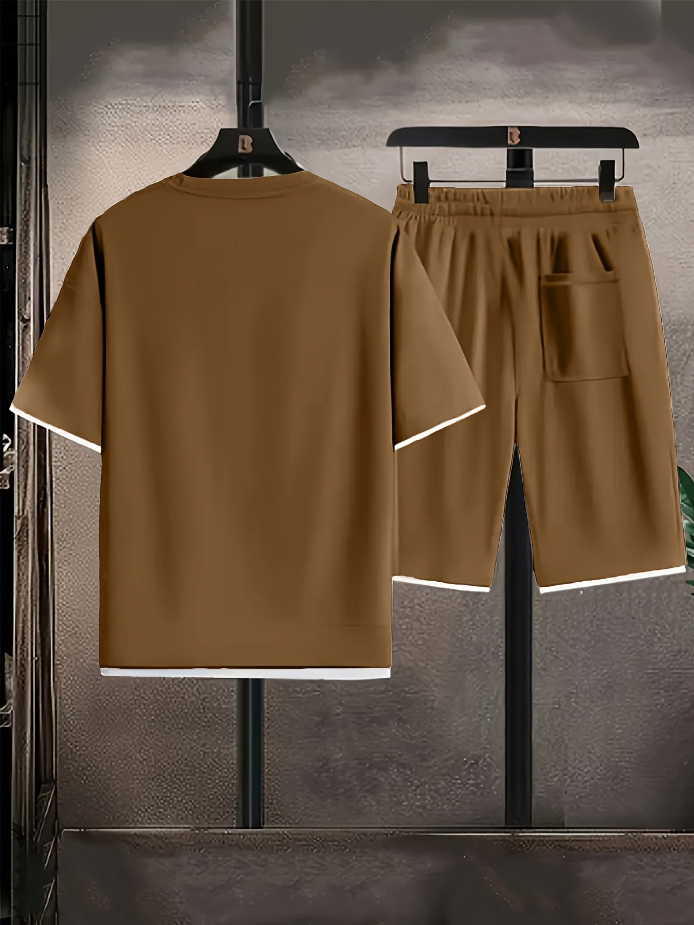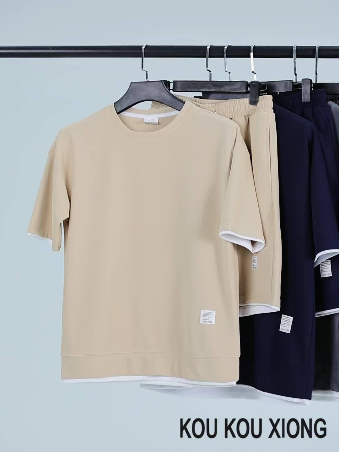 Waffle Grid տղամարդու նորաձև կլոր վզնոցով շապիկ, շնչող, առօրյա սպորտային կոստյում, երկմասանոց հավաքածու