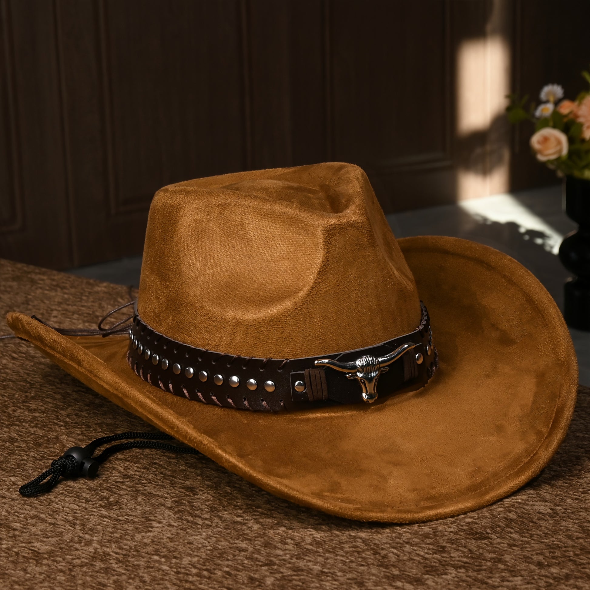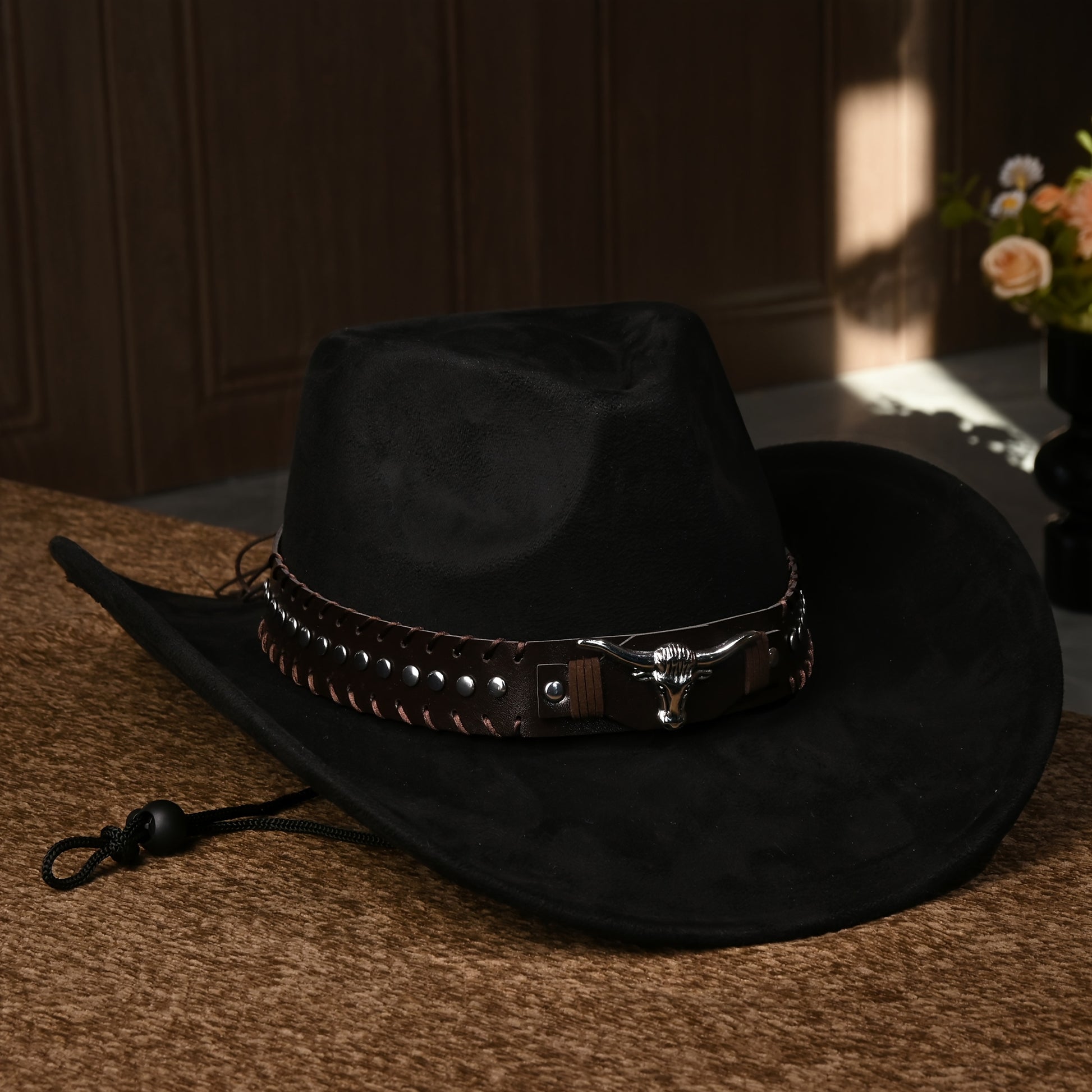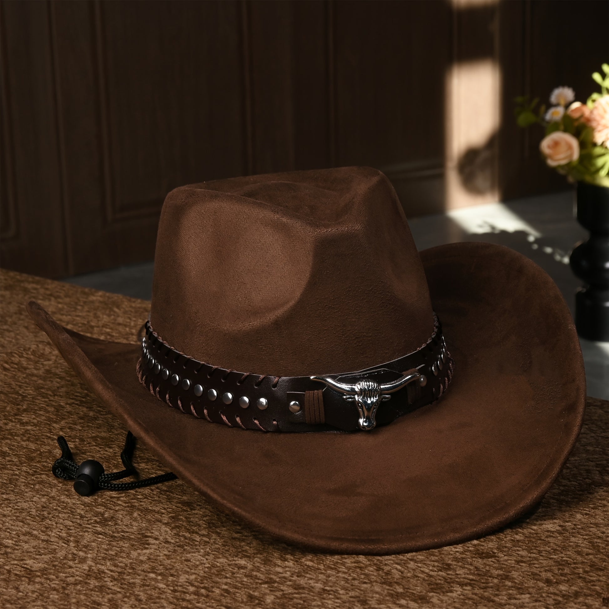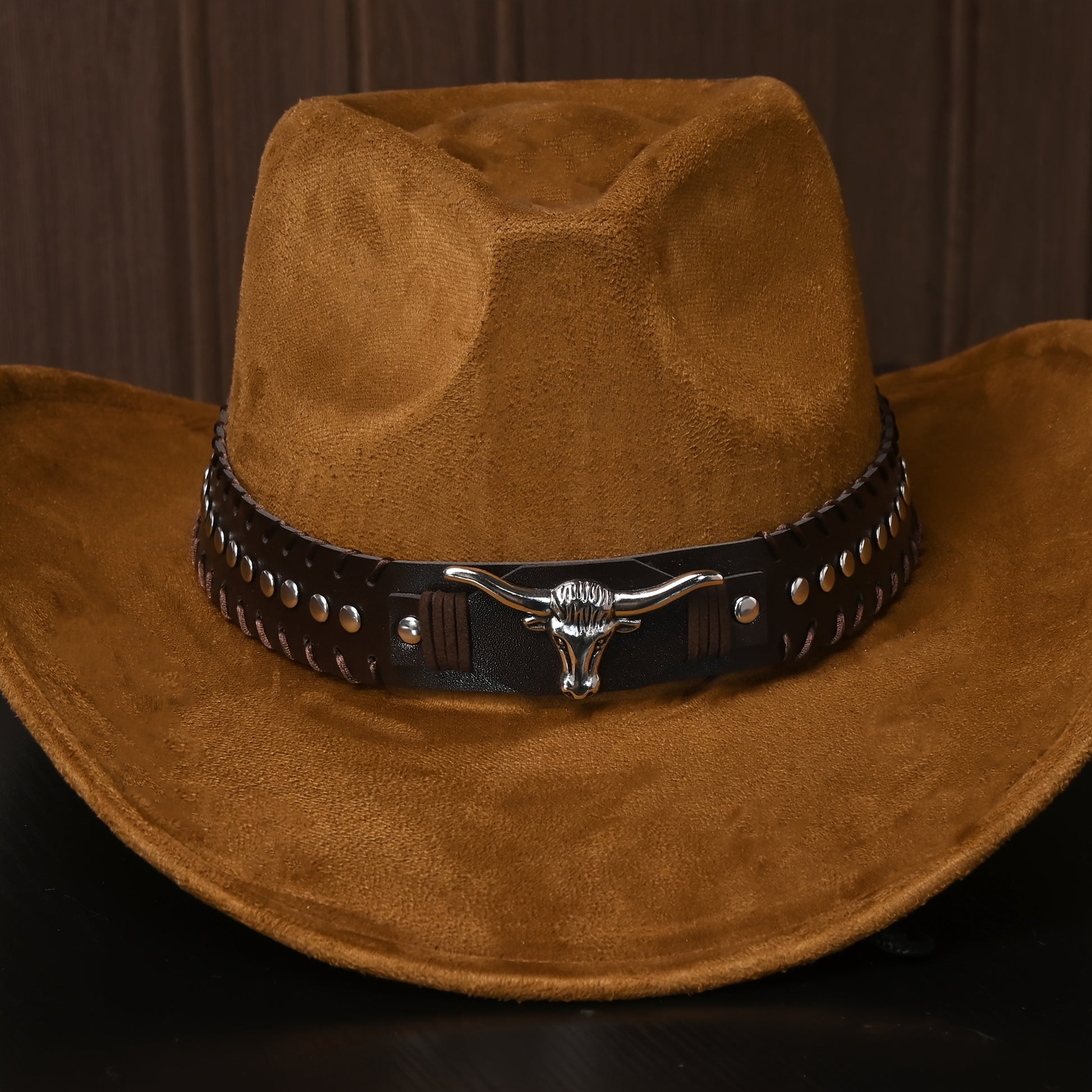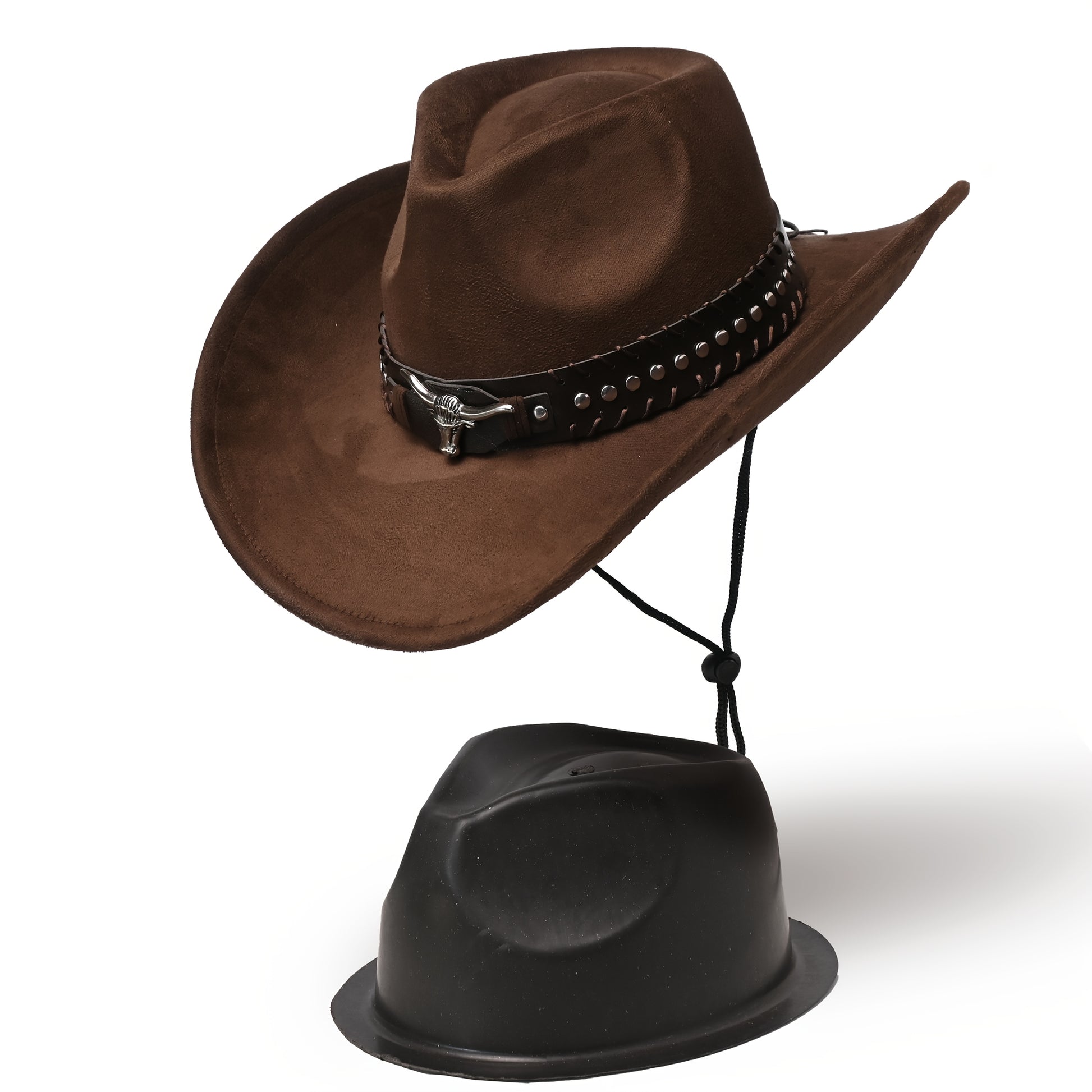 Արևմտյան կովբոյական գլխարկներ տղամարդկանց և կանանց համար, դասական արհեստական զամշից՝ մետաղական կեռիկներով և ցլի նախշերով, թեթև ունիսեքս տոնական առիթների գլխարկ, հյուսված ոչ առաձգական պոլիեսթեր՝ դեկորատիվ աքսեսուարներով, առանց փետուրների, չլվացվող