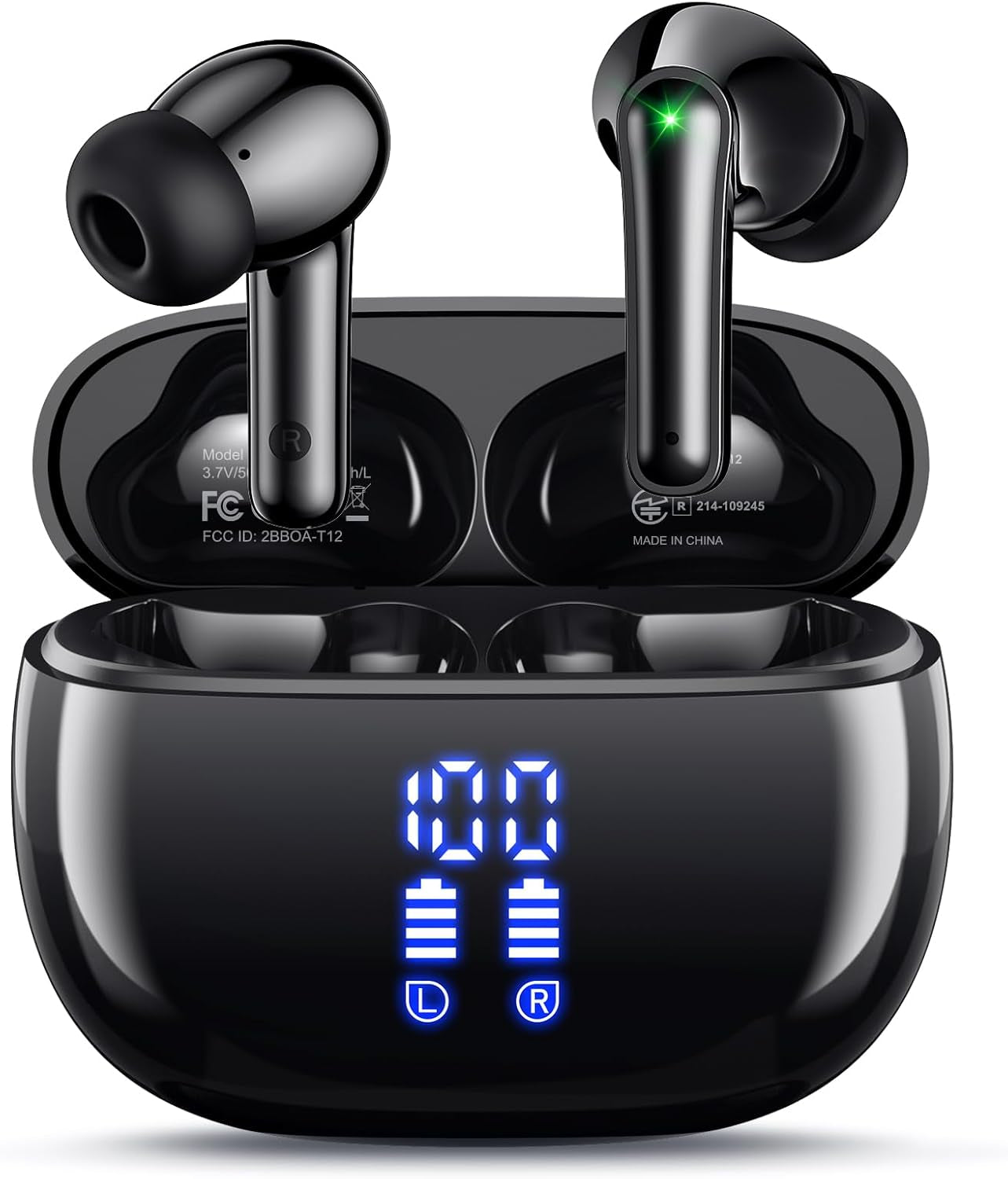 Անլար ականջակալներ Bluetooth ականջակալներ, ականջակալներ՝ խորը բասով, 40 ժամ երկար խաղալու ժամանակ, սնուցման էկրան, IPX7 անջրանցիկ ականջակալ՝ հեռախոսի պլանշետի սպորտային մարզման համար նախատեսված խոսափողով, սև