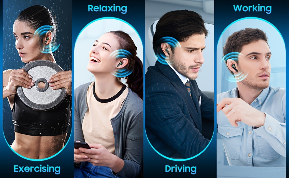 Wireless Earbuds with Touch Control, Built-in Noise Reduction Mic, Type-C Charging Case, 15Hr Playtime, 2Hr Quick Charge, USB Charging, 380mAh Battery, with LED Power Display, for Sports, Adult, Compatible with Cellphones