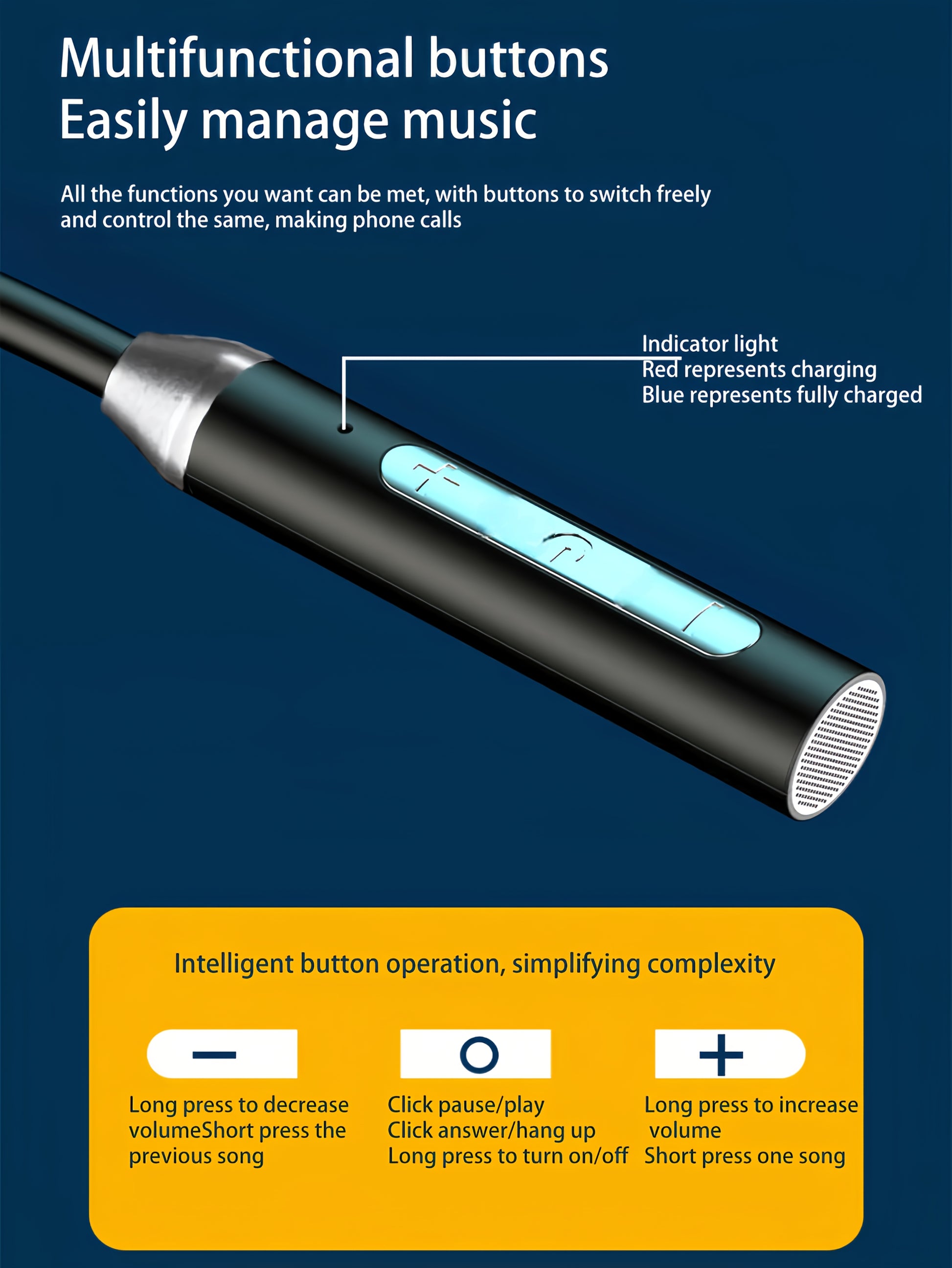 Wireless Neckband Headphones, Wireless 5.3, High-Capacity, Ultra-Long Battery Life, with Microphone for Noise Cancelling Clear Calls, In-Ear Earbuds Earphones, Booming Sound, for Sports Running Music Workout Gym, for Samsung