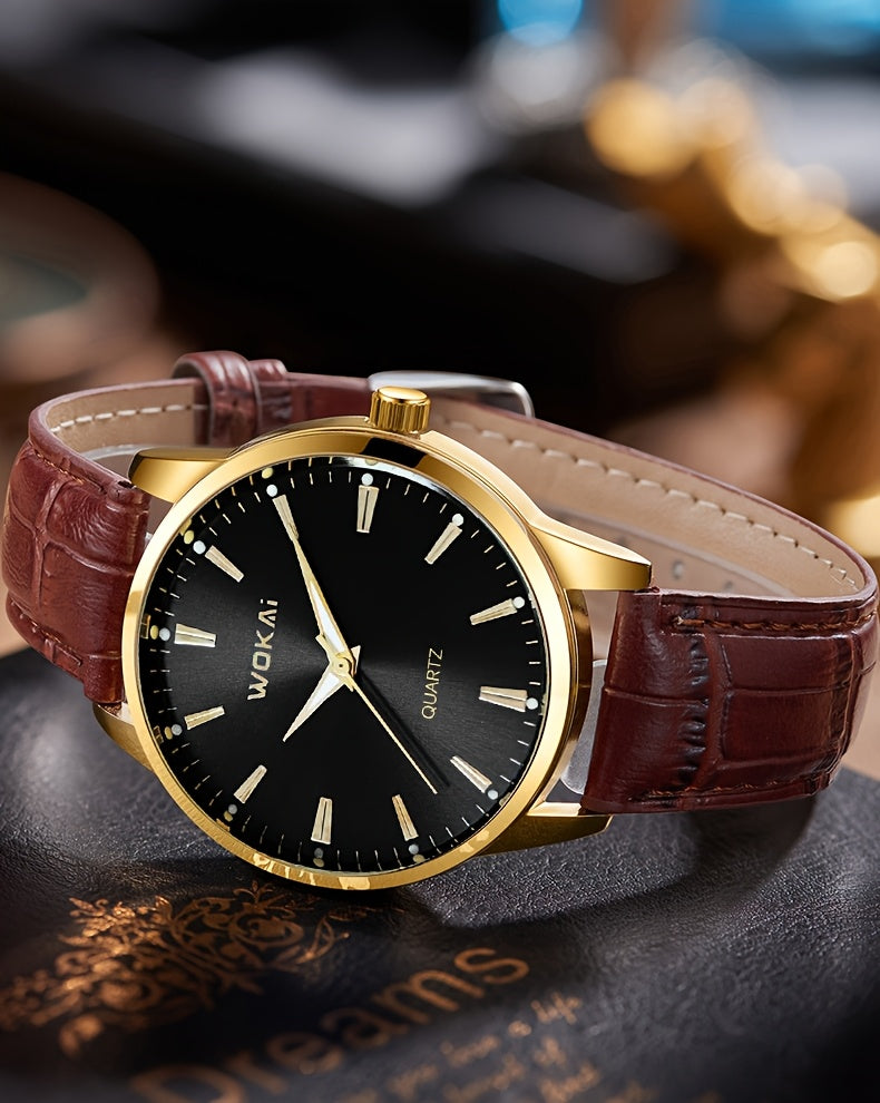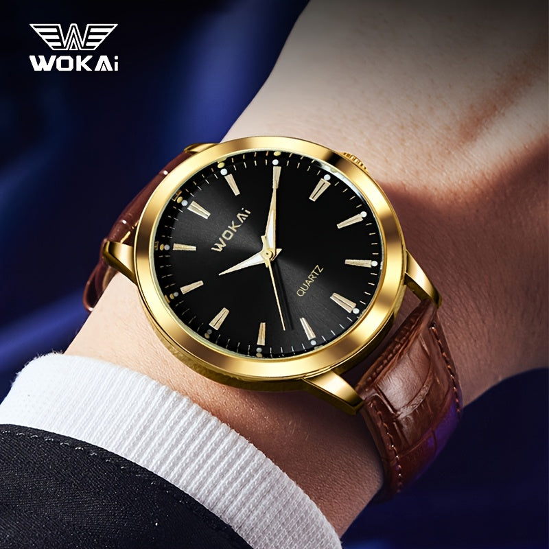 WOKAI տղամարդու շքեղ սպորտային ժամացույց - Ջրակայուն, քվարցային մեխանիզմ, կլոր ցուցատախտակ հռոմեական թվերով և LED էկրան, արհեստական կաշվե ժապավեն, իդեալական է առօրյա կամ ակտիվ կենսակերպի համար, սպորտային ժամացույց | Նորաձև ժամացույց | Երկարակյաց ժամացույց