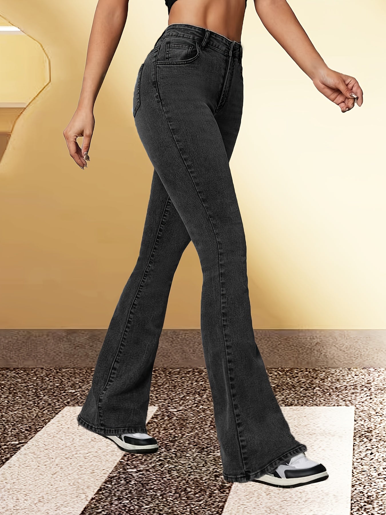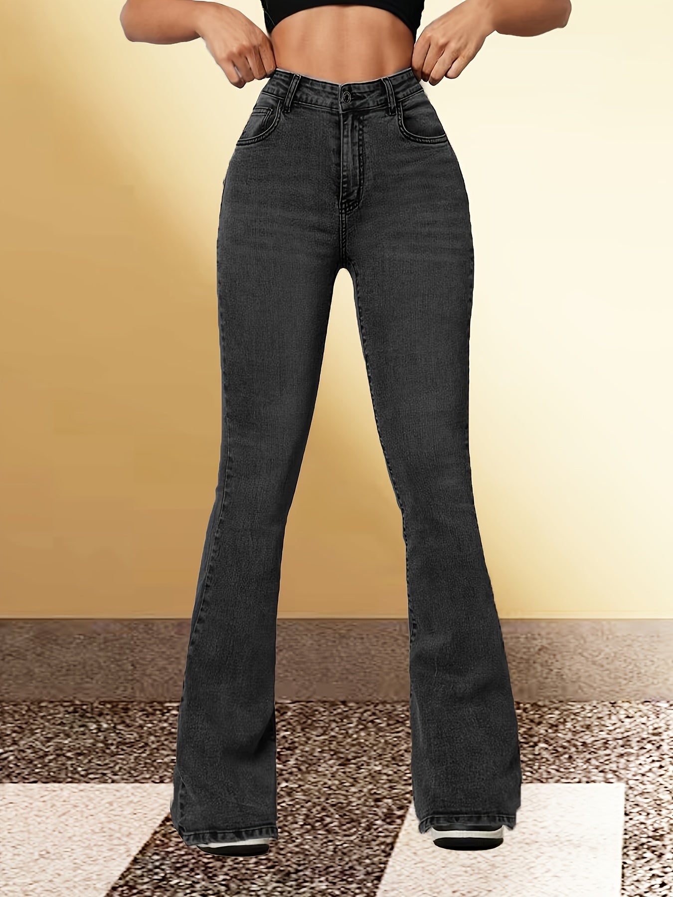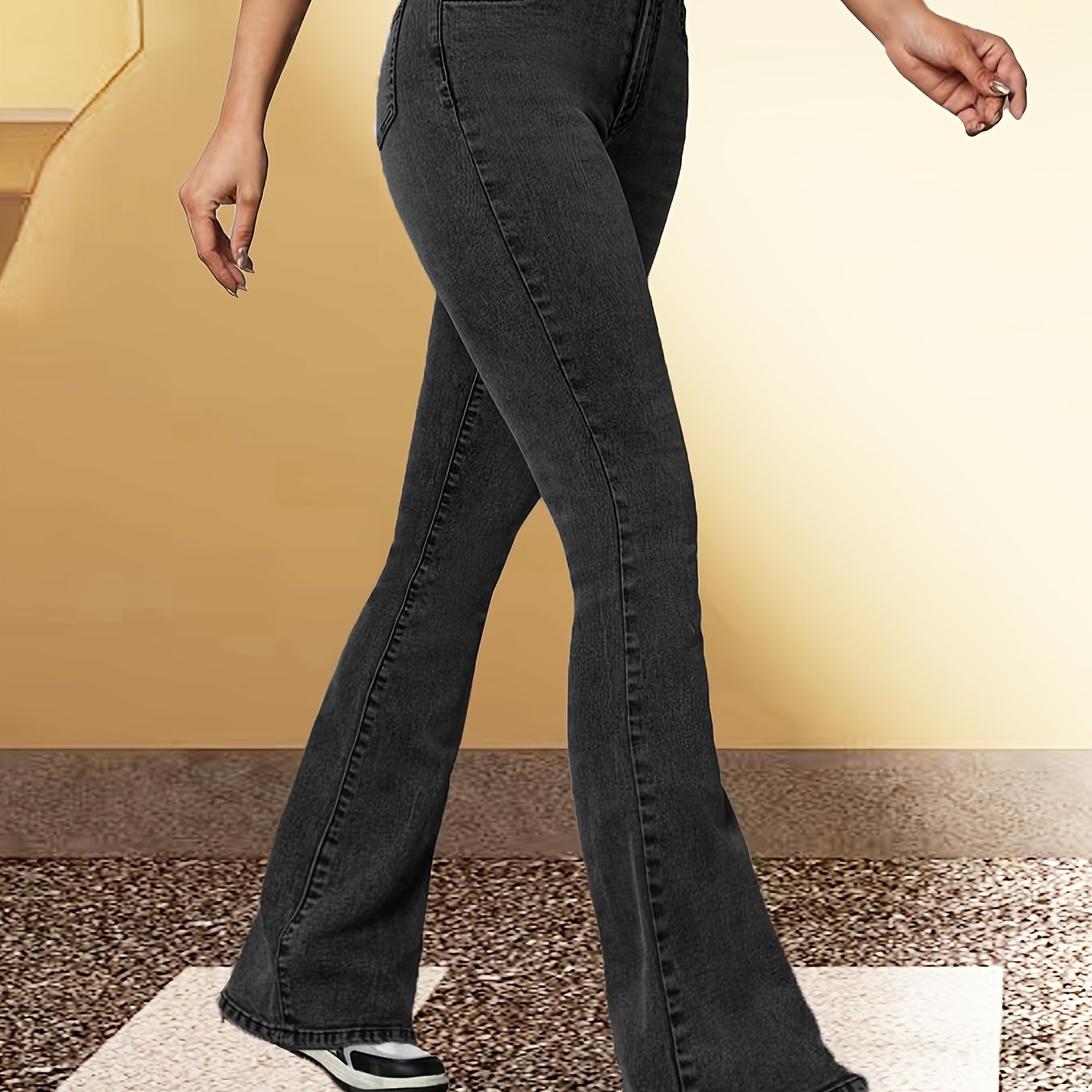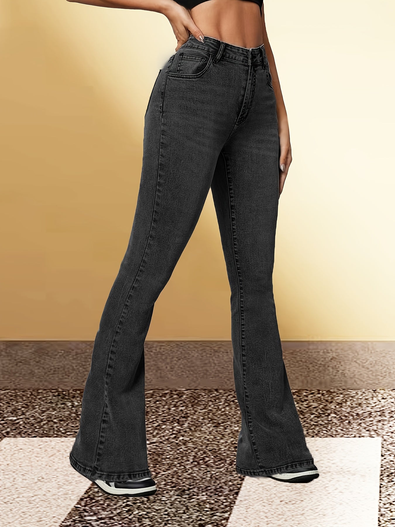 Կանացի սև կատվի բեղի մոդայիկ ձգվող ջինսեր, էլեգանտ ջինսե, բարձր առաձգականություն, միաձույլ գույն, երկարություն, ամբողջ սեզոնային, կոճակի դետալ, հյուսված գործվածք