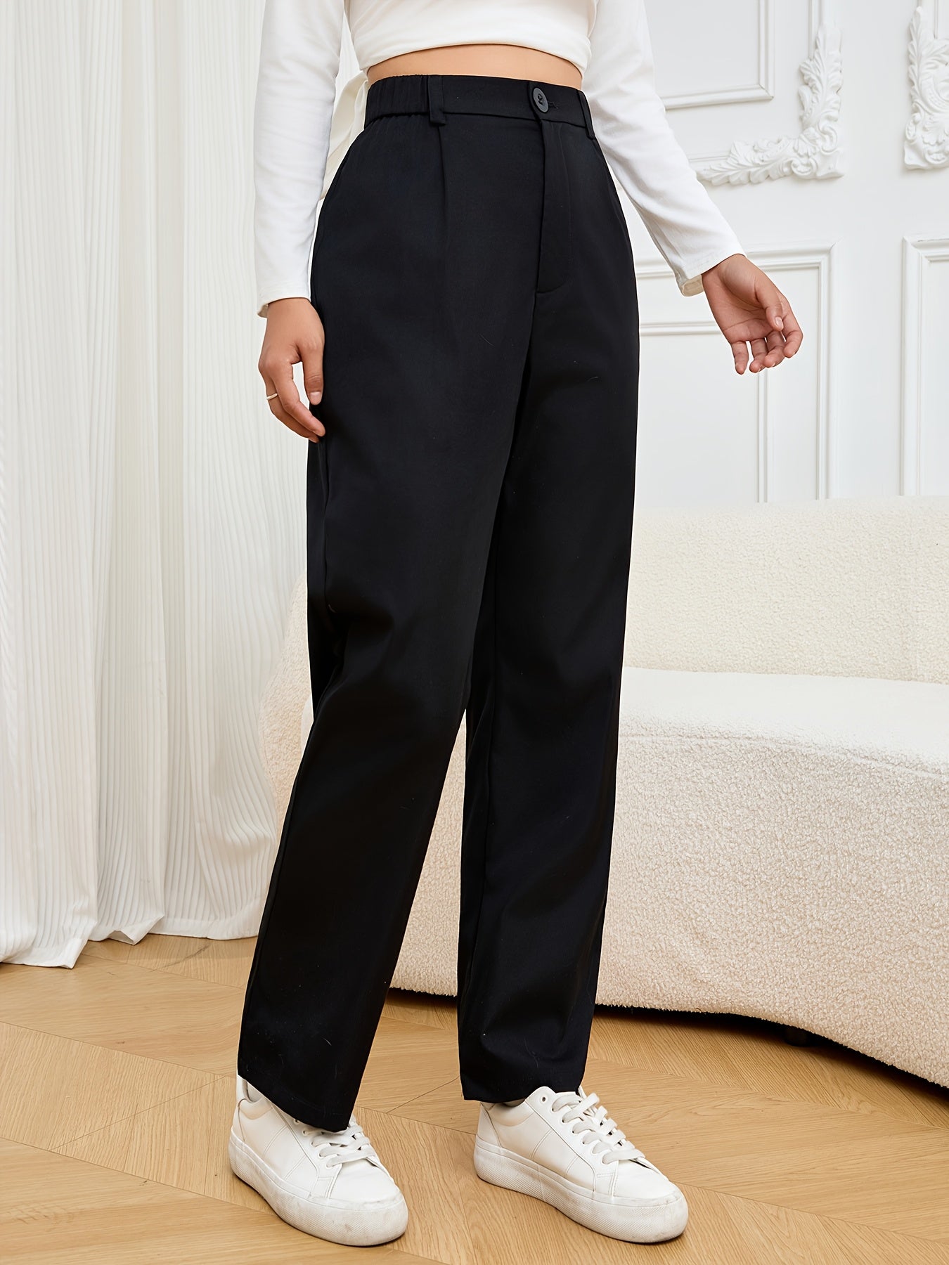 Կանացի Սև ուղիղ ոտքով պատահական տաբատ