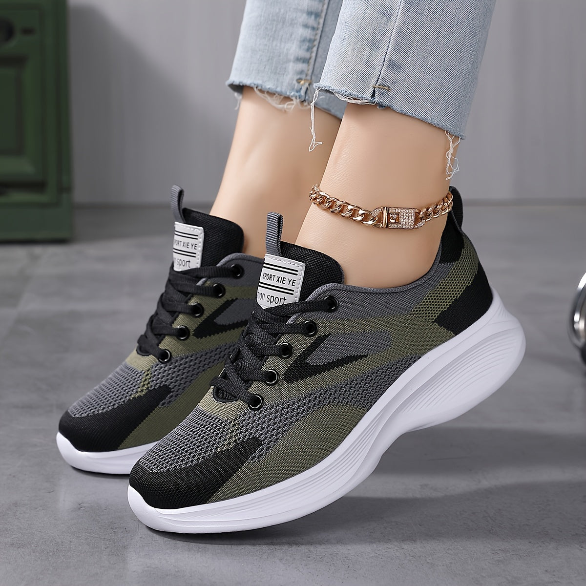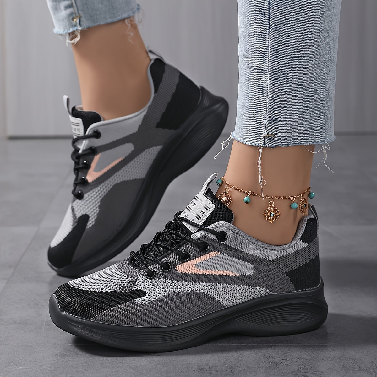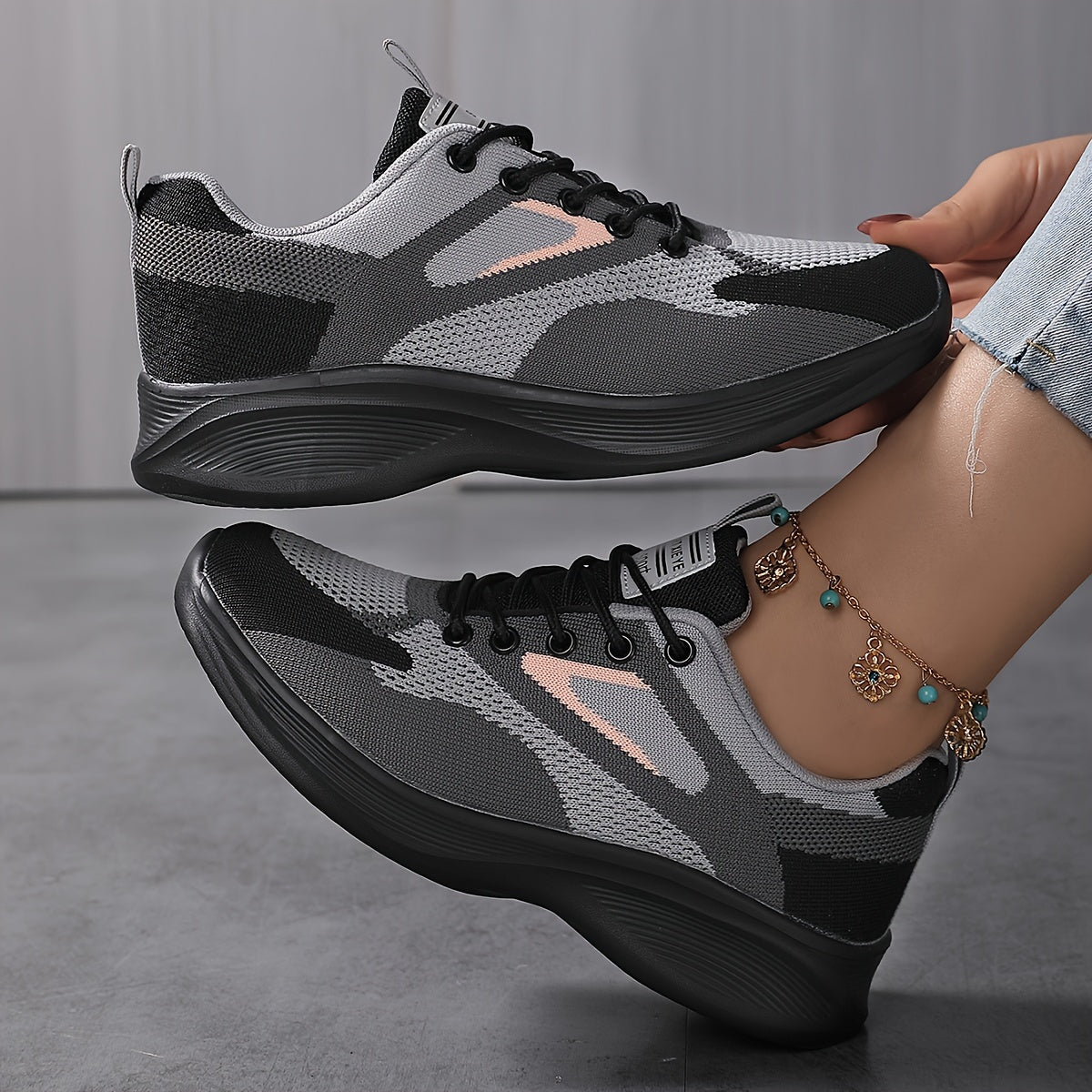 Կանացի շնչող թռչող հյուսված պլատֆորմի սպորտային կոշիկներ, սովորական ժանյակավոր բացօթյա կոշիկներ, հարմարավետ ցածր վերևից վազող կոշիկներ գումարած չափսի