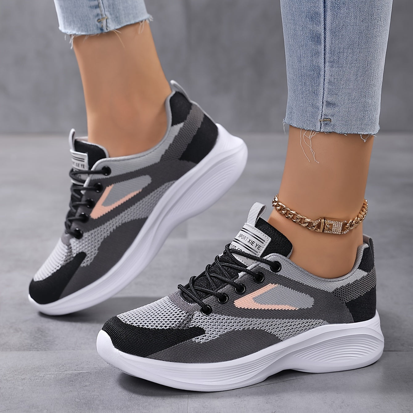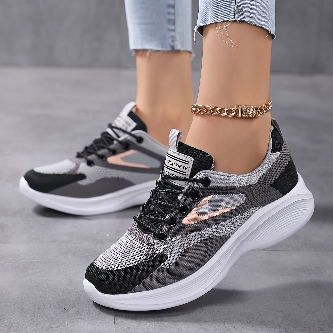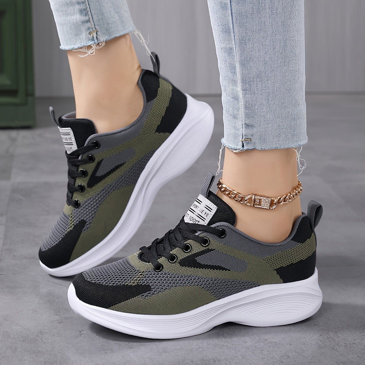 Կանացի շնչող թռչող հյուսված պլատֆորմի սպորտային կոշիկներ, սովորական ժանյակավոր բացօթյա կոշիկներ, հարմարավետ ցածր վերևից վազող կոշիկներ գումարած չափսի