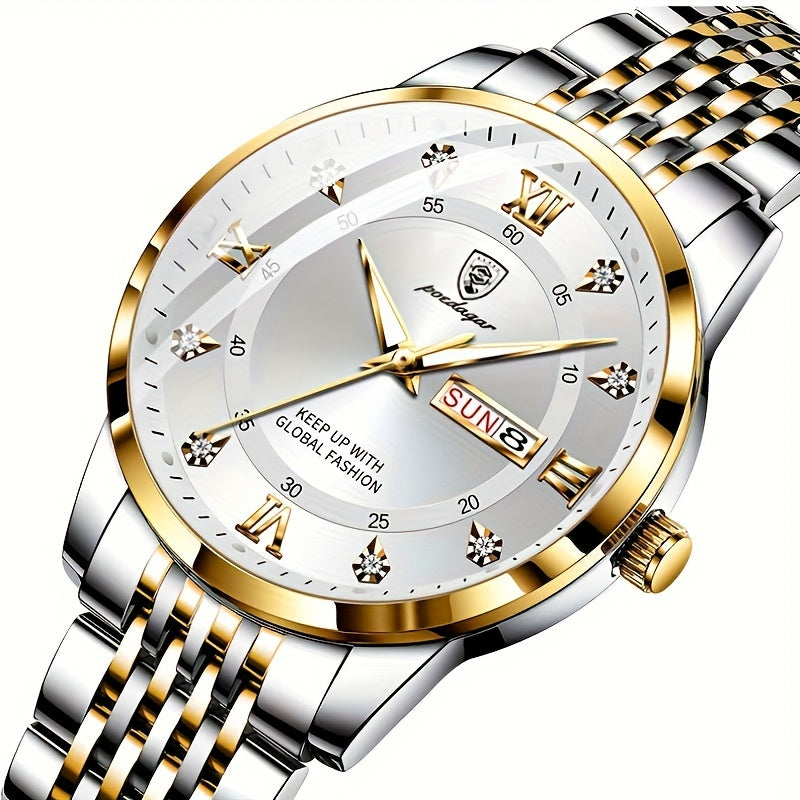 Կանացի գործնական հանգստի քվարցային ժամացույց՝ լուսարձակող նորաձև ամսաթվի թվատախտակով, անալոգային պողպատե ժապավենով դաստակի ժամացույց