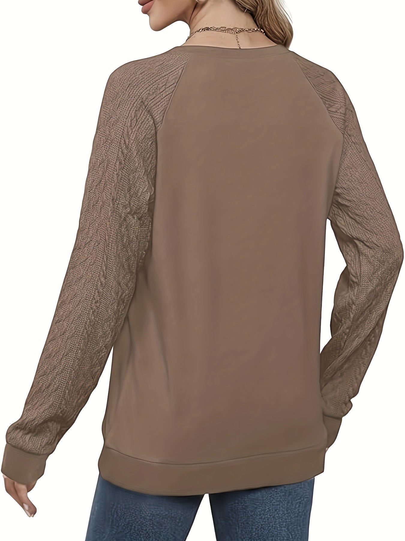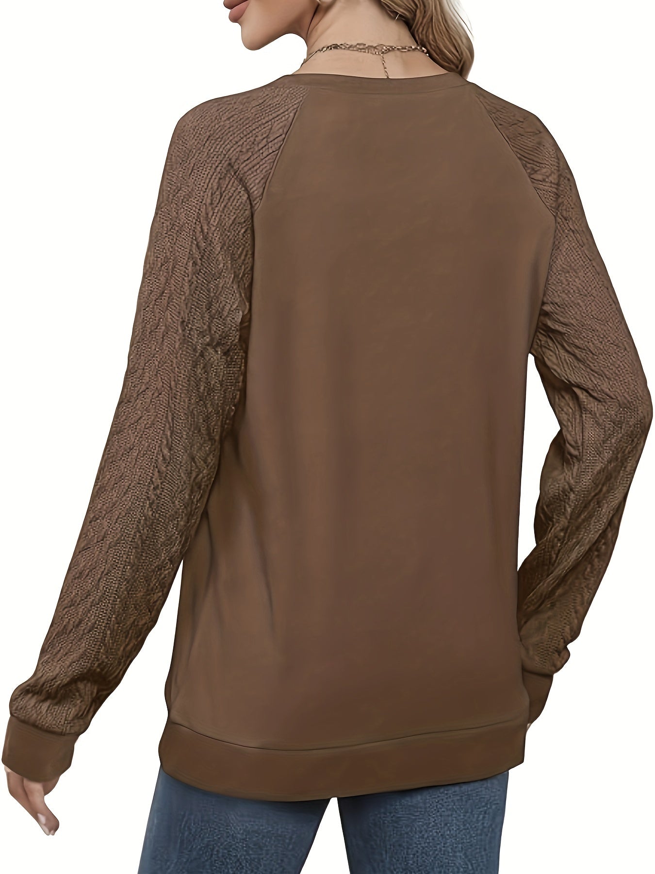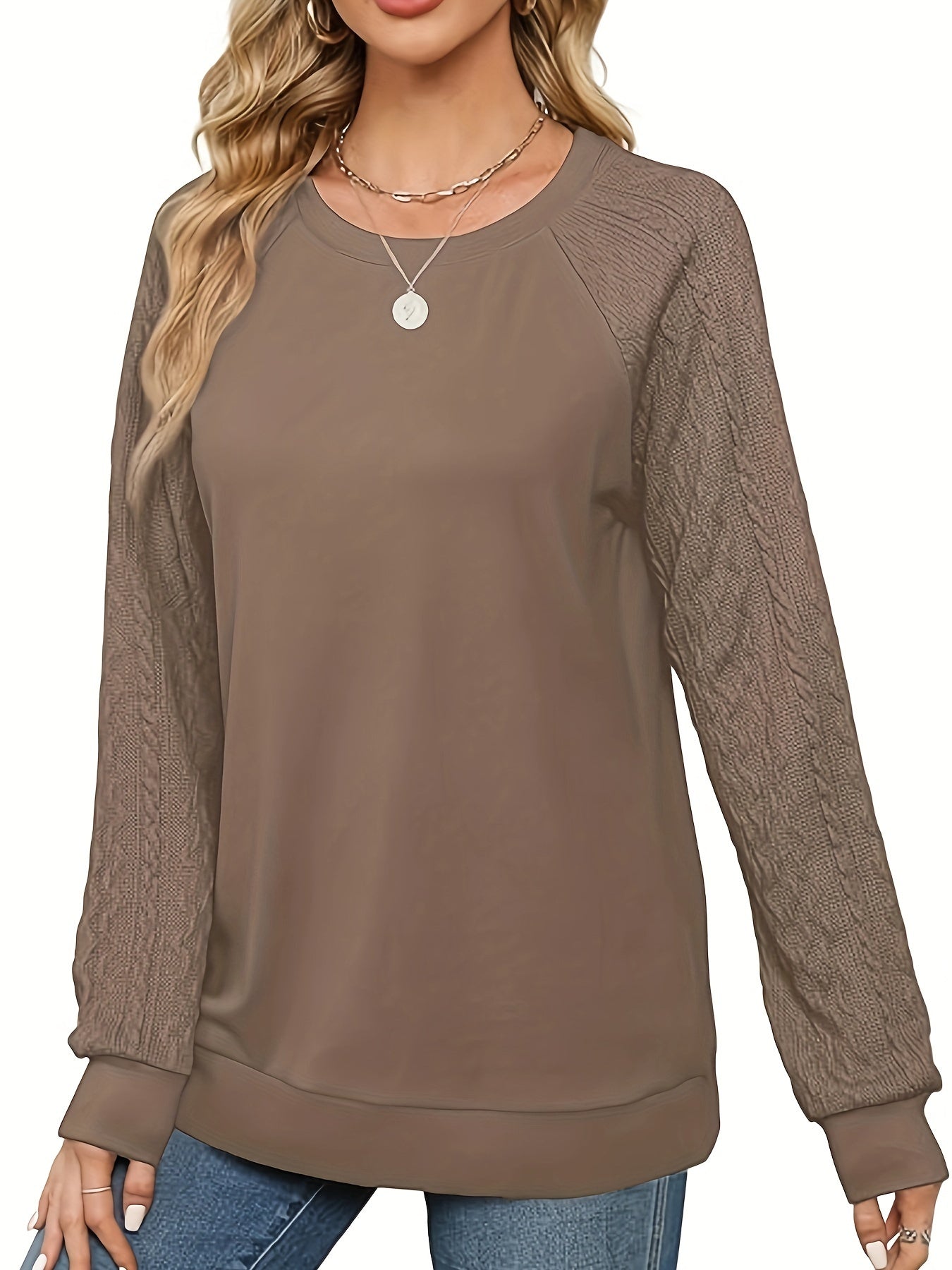 Կանացի պատահական շագանակագույն կաբելային տրիկոտաժե սվիտեր - երկարաթև, կլոր պարանոց, ձգվող պոլիեսթեր խառնուրդ, լվացվող մեքենայում, հարմարավետ հագուստ|կլոր պարանոցի վերնաշապիկ|հարմարավետ հյուսվածք