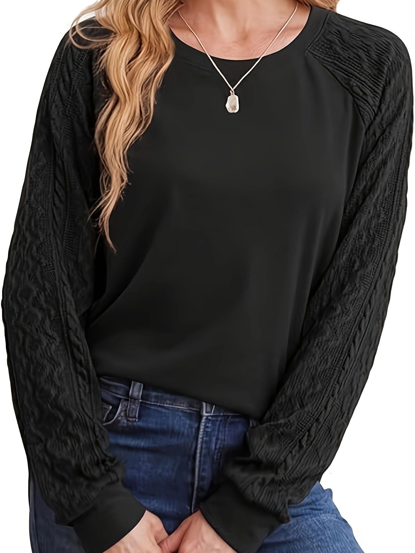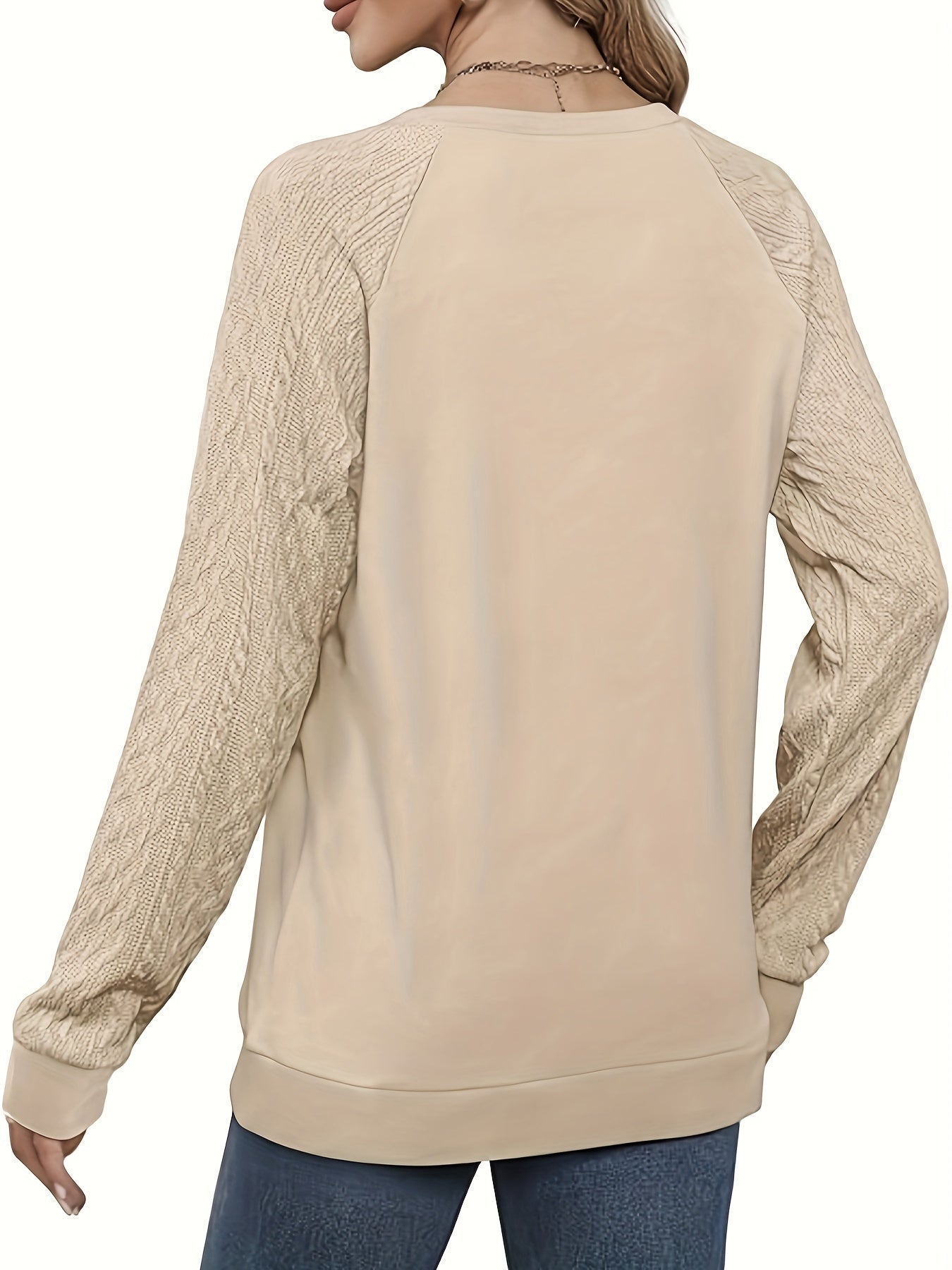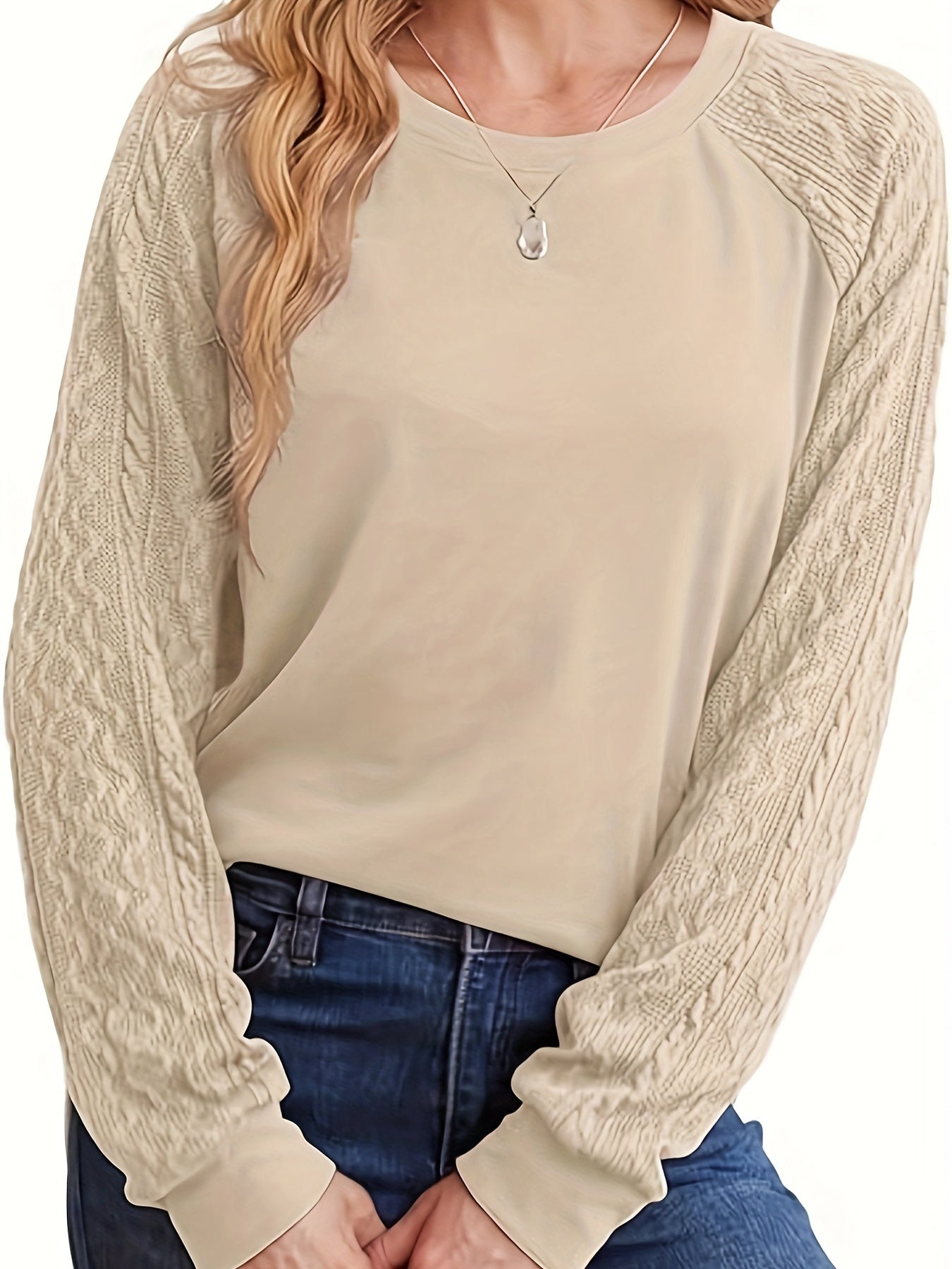 Կանացի պատահական շագանակագույն կաբելային տրիկոտաժե սվիտեր - երկարաթև, կլոր պարանոց, ձգվող պոլիեսթեր խառնուրդ, լվացվող մեքենայում, հարմարավետ հագուստ|կլոր պարանոցի վերնաշապիկ|հարմարավետ հյուսվածք