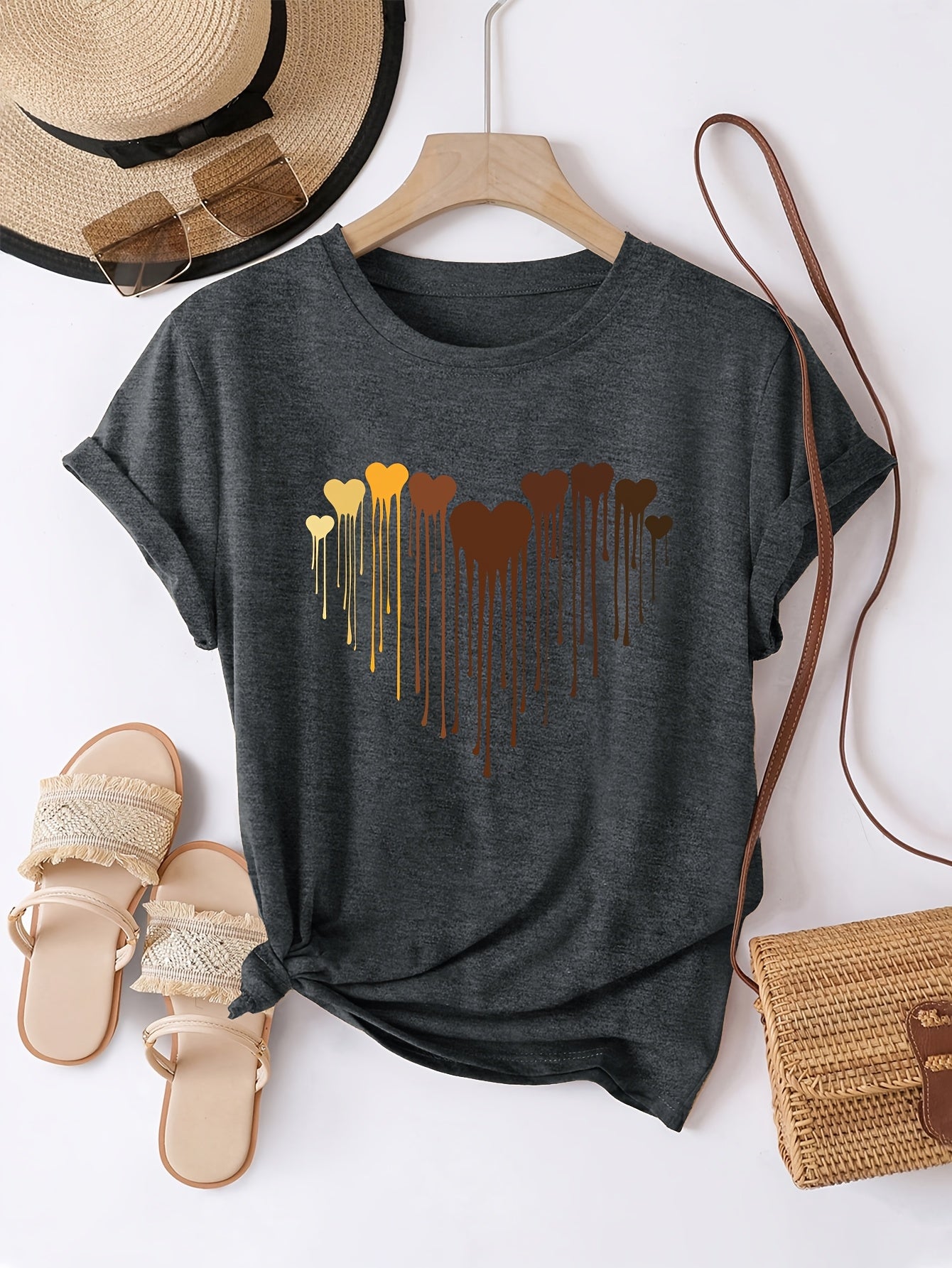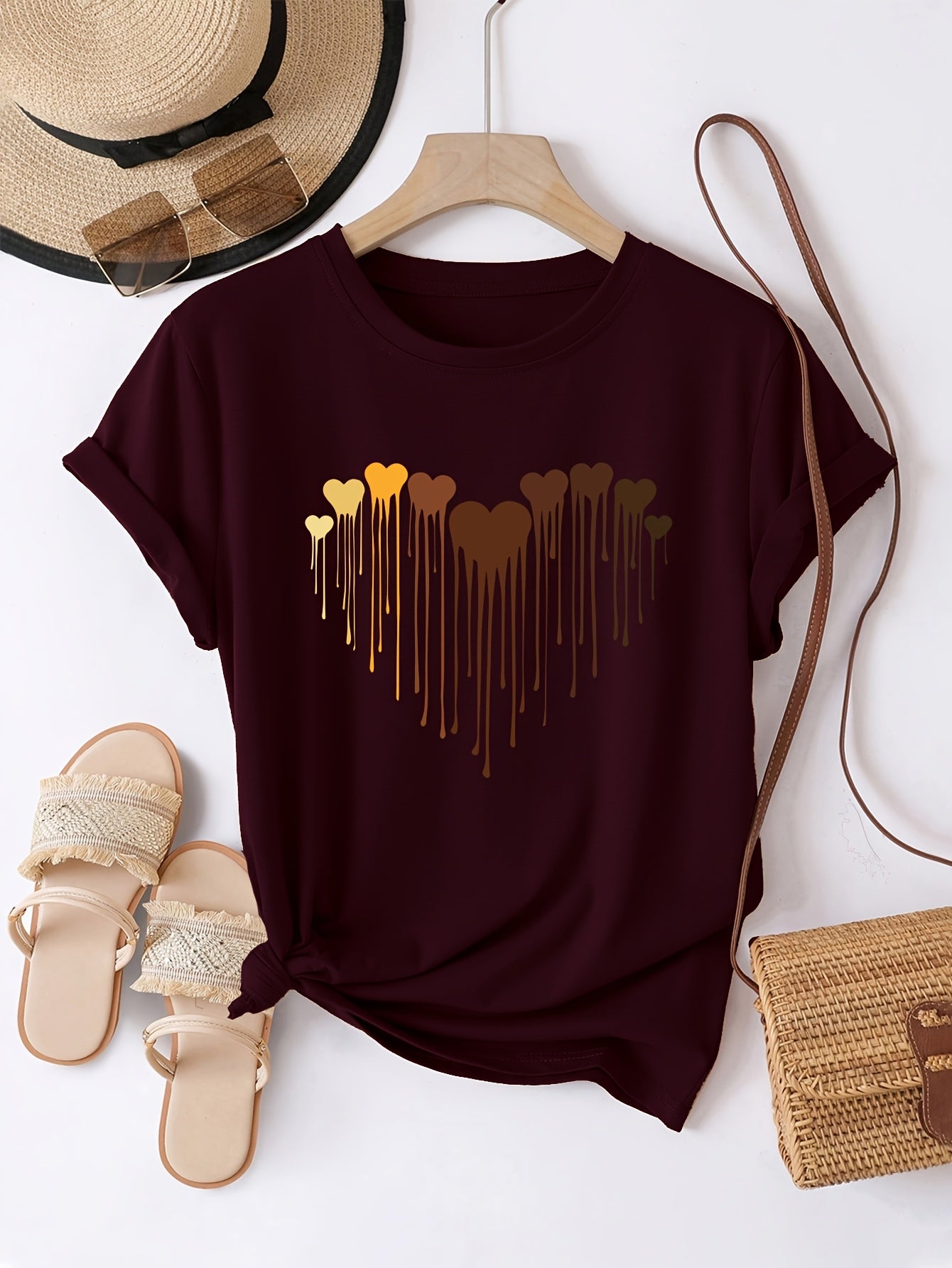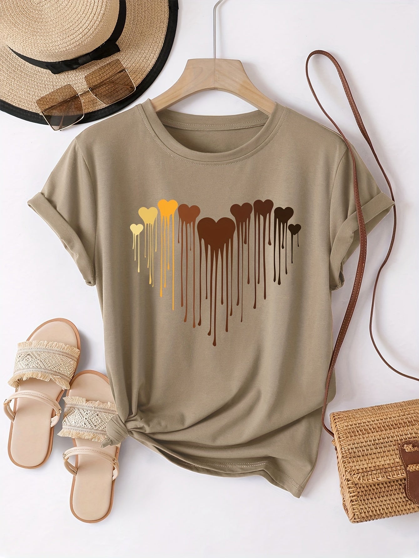 Կանացի պատահական պարանոցով վերնաշապիկ՝ սրտային տպագրությամբ, պոլիեսթեր խառնուրդ (65% պոլիեսթեր, 30% ռայոն, 5% էլաստան), տրիկոտաժե գործվածք, սովորական երկարություն, գարուն/ամառ/աշուն
