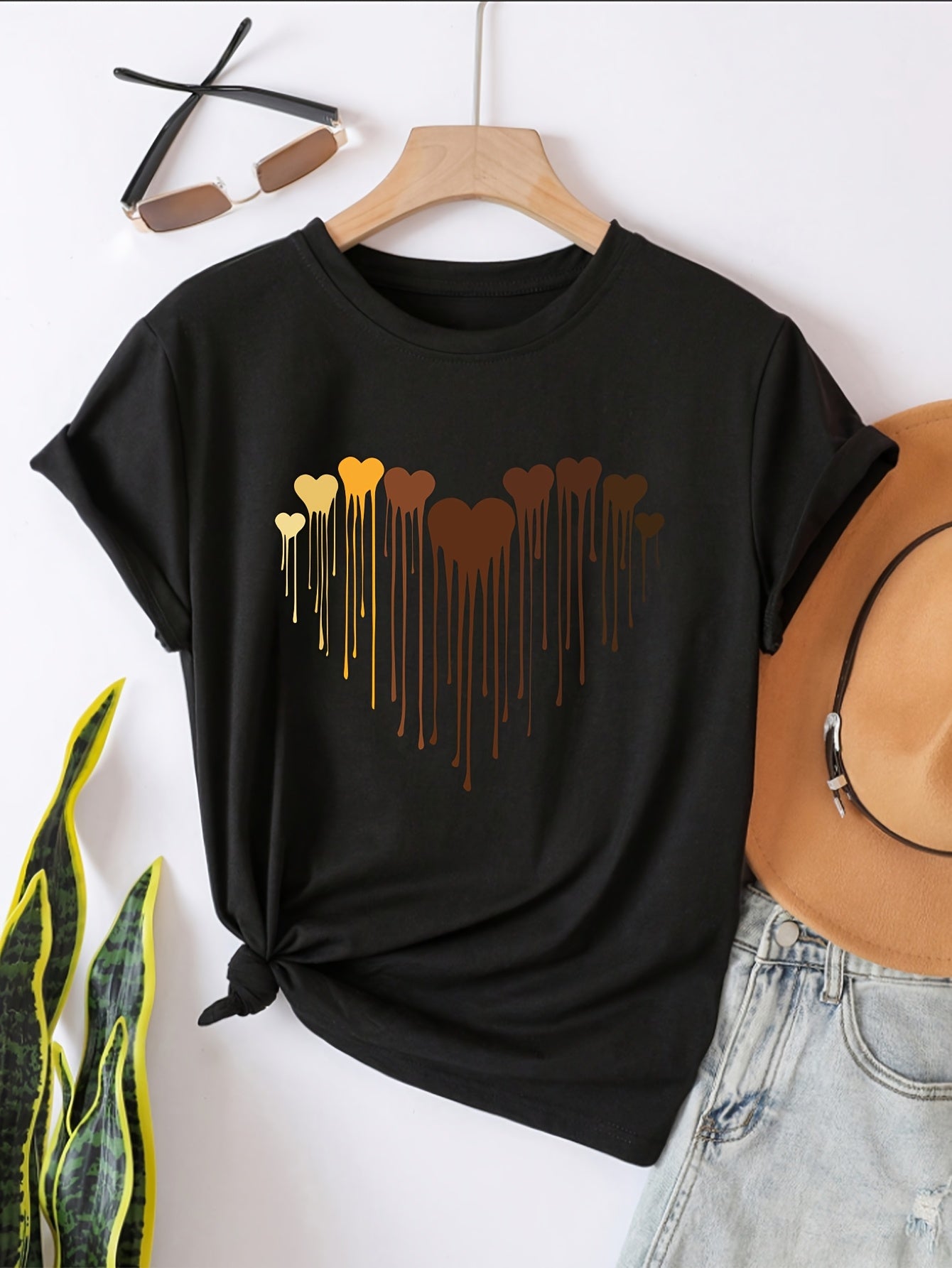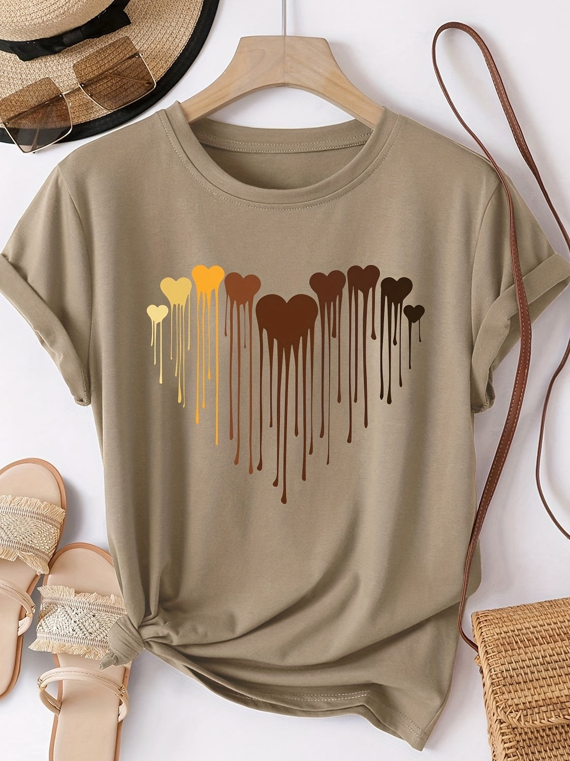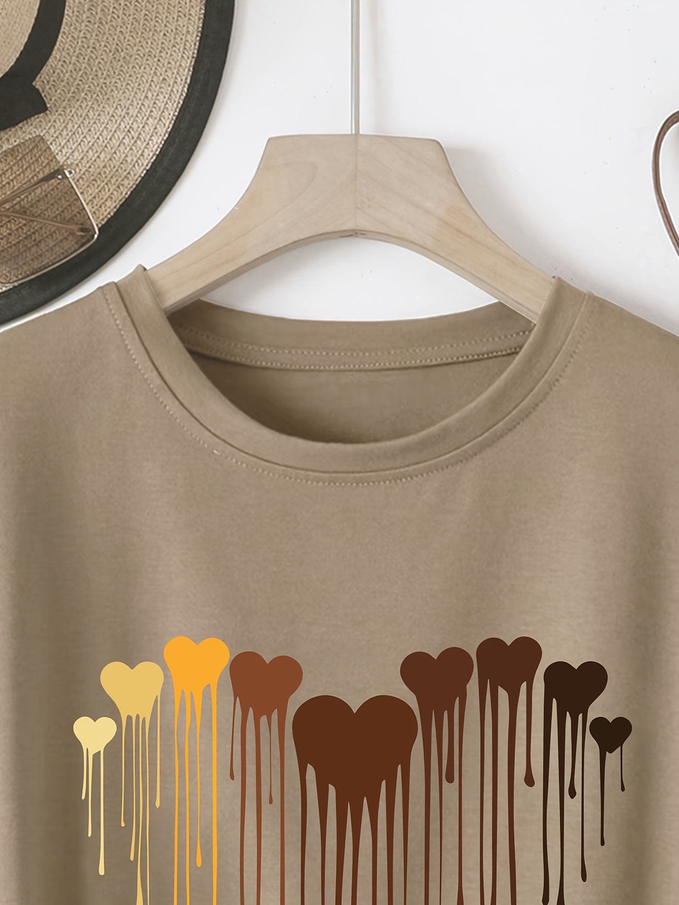 Կանացի պատահական պարանոցով վերնաշապիկ՝ սրտային տպագրությամբ, պոլիեսթեր խառնուրդ (65% պոլիեսթեր, 30% ռայոն, 5% էլաստան), տրիկոտաժե գործվածք, սովորական երկարություն, գարուն/ամառ/աշուն